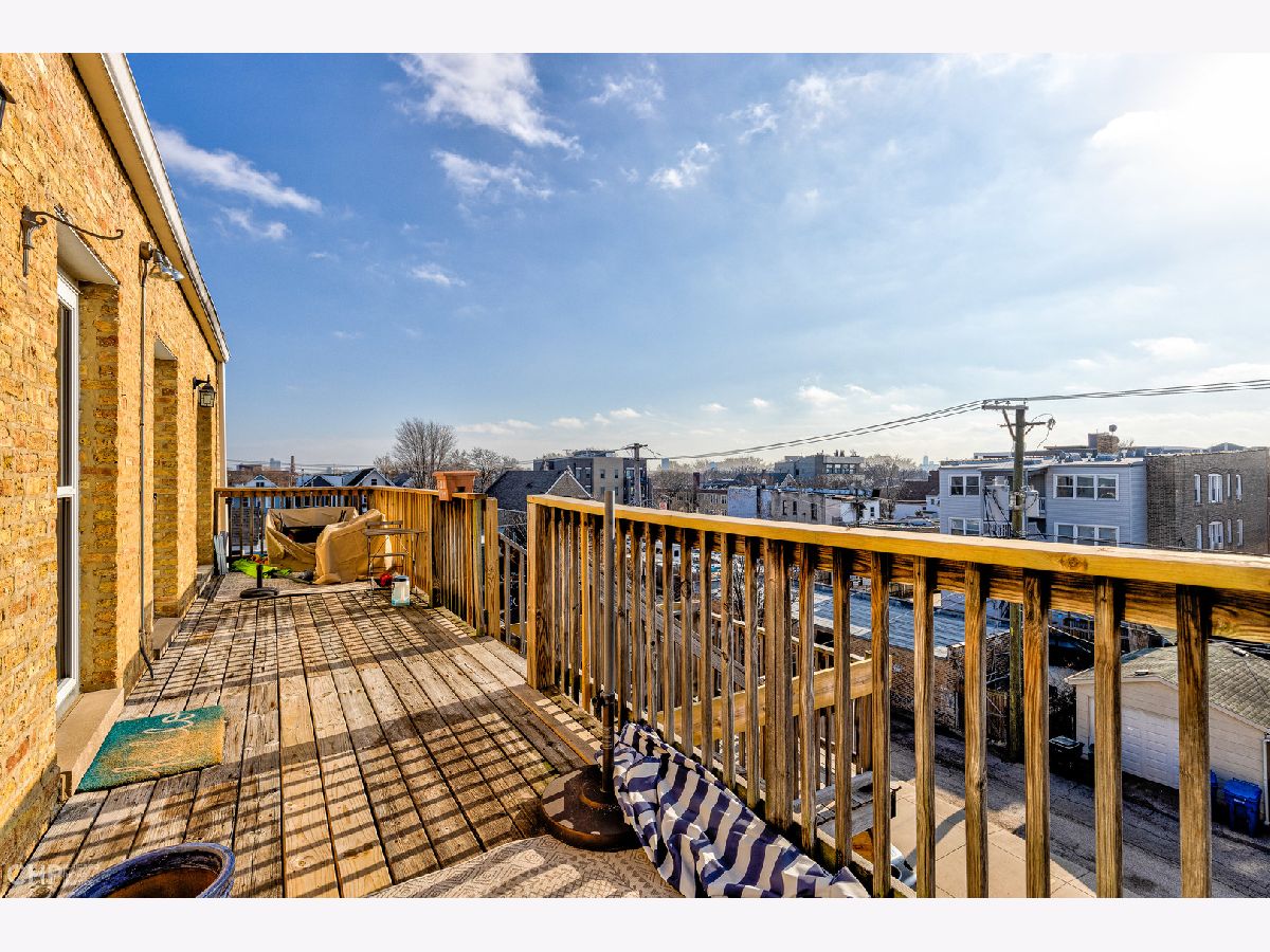 Beautiful & bright top floor, 2 bedroom, 2 bath with 2-car tandem parking in Lincoln Square! This spacious home enjoys tons of space and closets galore (all organized), plus hardwood floors throughout, central air/heat, crown molding and in-unit laundry! The entertainer's kitchen (granite/stainless plus an island) connects to the living room, with cozy fireplace & built-ins, plus front sunroom that is a perfect space for dining table (or a reading nook, peloton, yoga space - whatever you can imagine!). There's also a large, organized entry closet here that could easily be used as pantry too! The primary bedroom suite easily fits a king-sized bed, and enjoys attached bath with double sinks, separate shower & tub. Well-sized guest bedroom (perfect guest room/office combination) & adjacent bath. The second hall closet is massive, organized and is perfect for linens, supplies and more. Private rear deck for outdoor fun with views of downtown, plus even a rear entry nook that fits a console table/home office set-up. Private storage room too! Experience the best of Lincoln Square/Lincoln Avenue, with convenient transportation access, grocery stores, nightlife/dining - while also being close to Andersonville's Clark Street, Chicago River, Galter Life Center, North Park/Northeastern Universities. Taxes do not include homeowner's exemption. Come home!