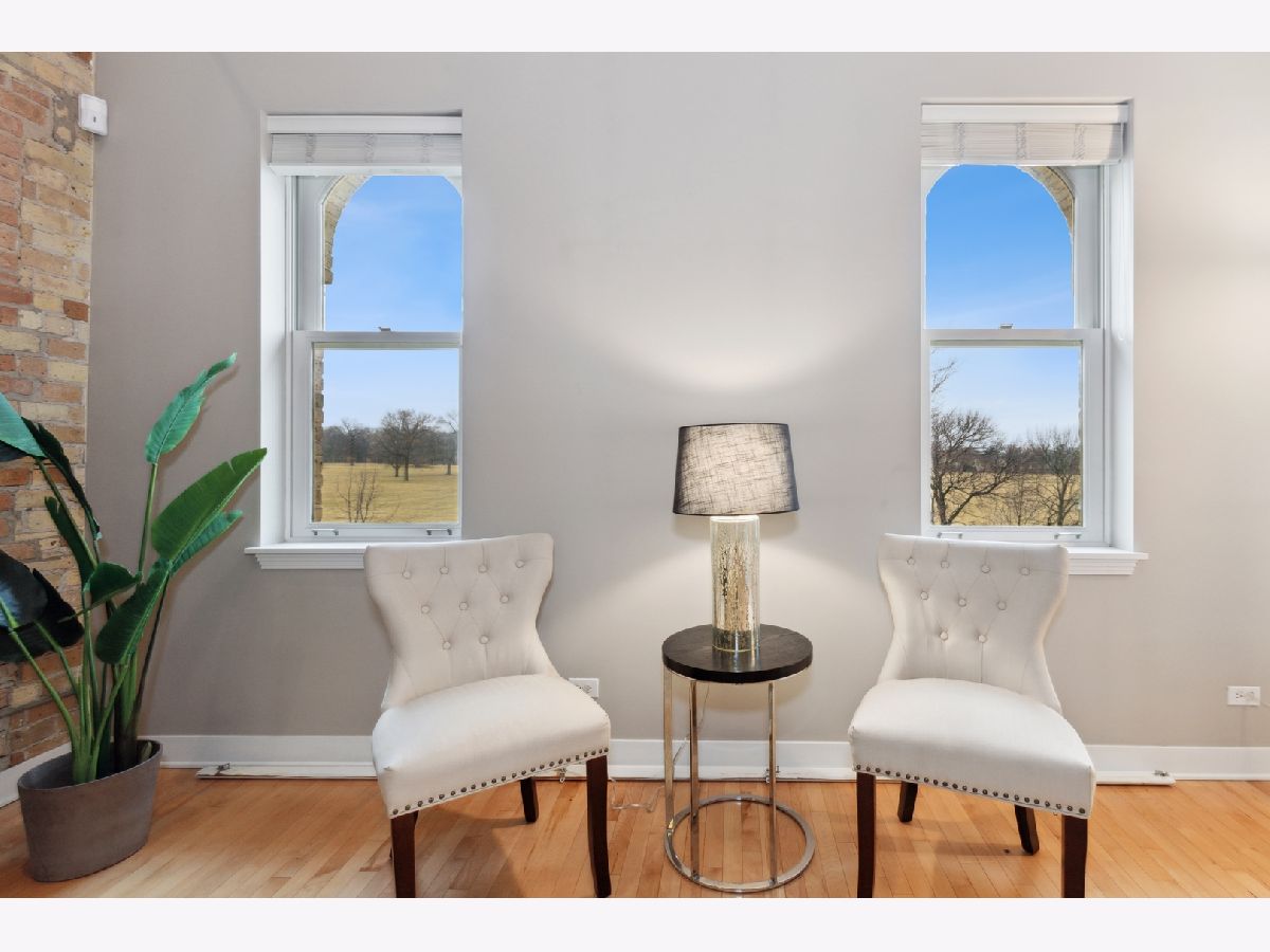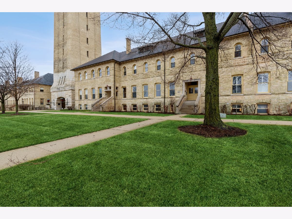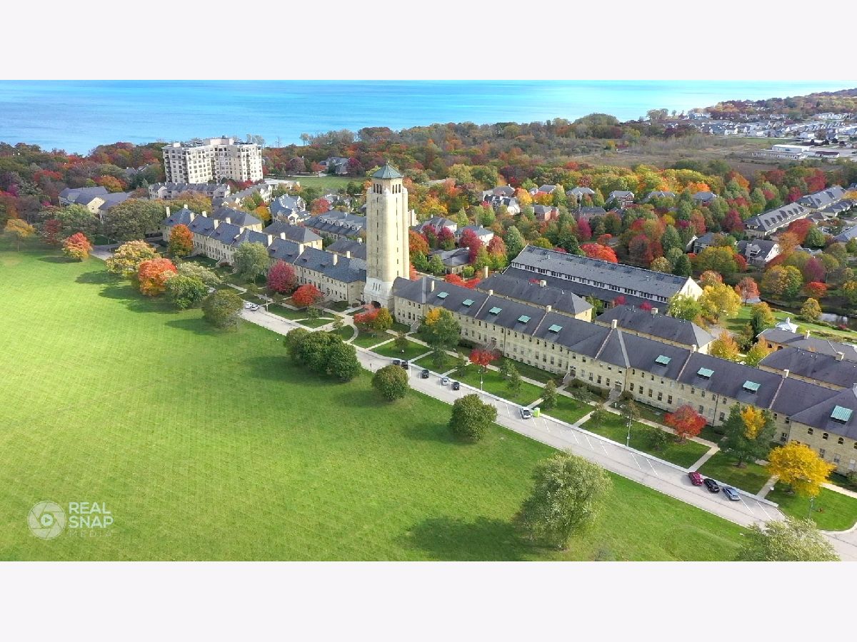 Architecturally appealing, highly sought after 2 bedroom condo PLUS a loft in stunning Fort Sheridan Tower Barracks! Walk to Lake Michigan beaches, Open Lands, hiking, biking and birding trails. Enjoy vintage architecture accentuated with wooden trusses, beams, exposed brick interior walls with sweeping views enhanced by fresh urban interior design. 1,600 sq. ft. of historical splendor! The 25 foot tall peaked ceilings set the stage for this contemporary and organic residence. Gas log fireplace in Living room with marble surround. Hardwood floors and neutral decor. Spacious loft can be used as additional bedroom/workout room or office. 11' ceilings in bedrooms. Master has 3 spacious closets. In unit Laundry. Brand new large south facing balcony overlooking charming terrace brings light all day. Large walk in storage area at garage level. Heated garage. Maintenance free living at its best!. Walk to Ft. Sheridan Metra Station, Starbucks and countless Highwood restaurants, bakeries and shops! Quick close possible! OPEN SUNDAY (3/27) from 1-4 pm.