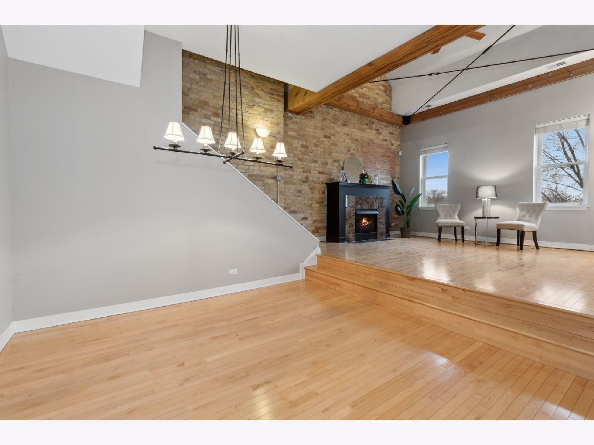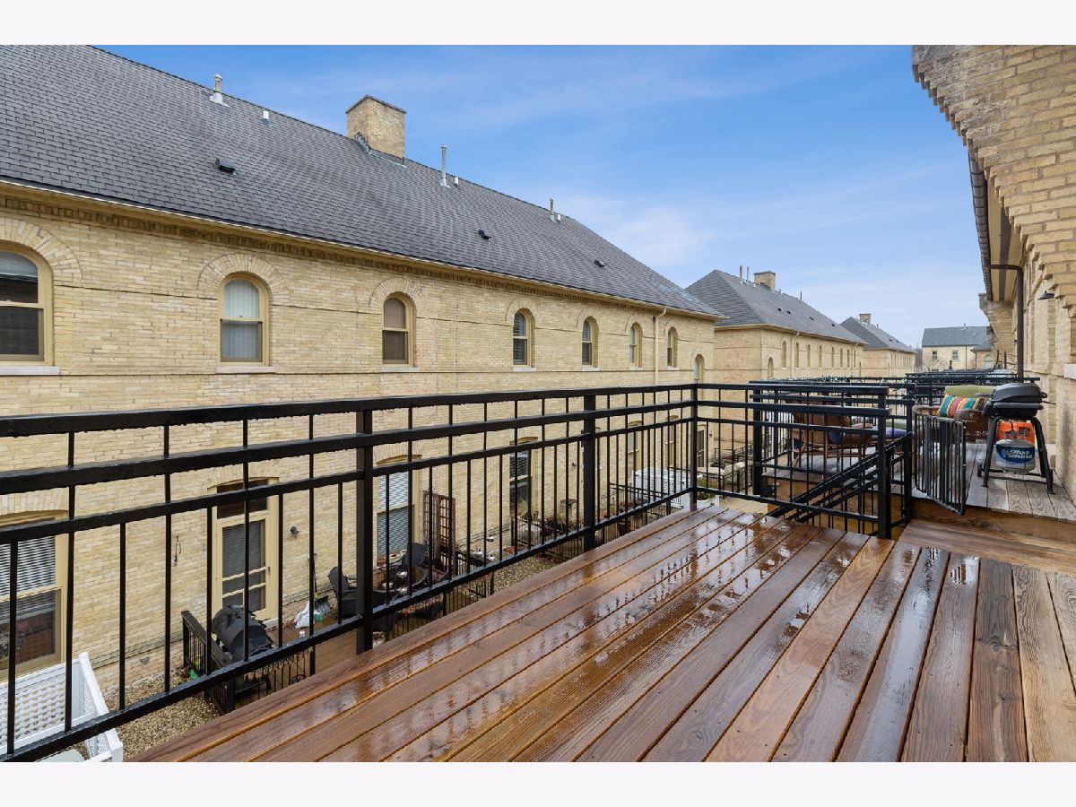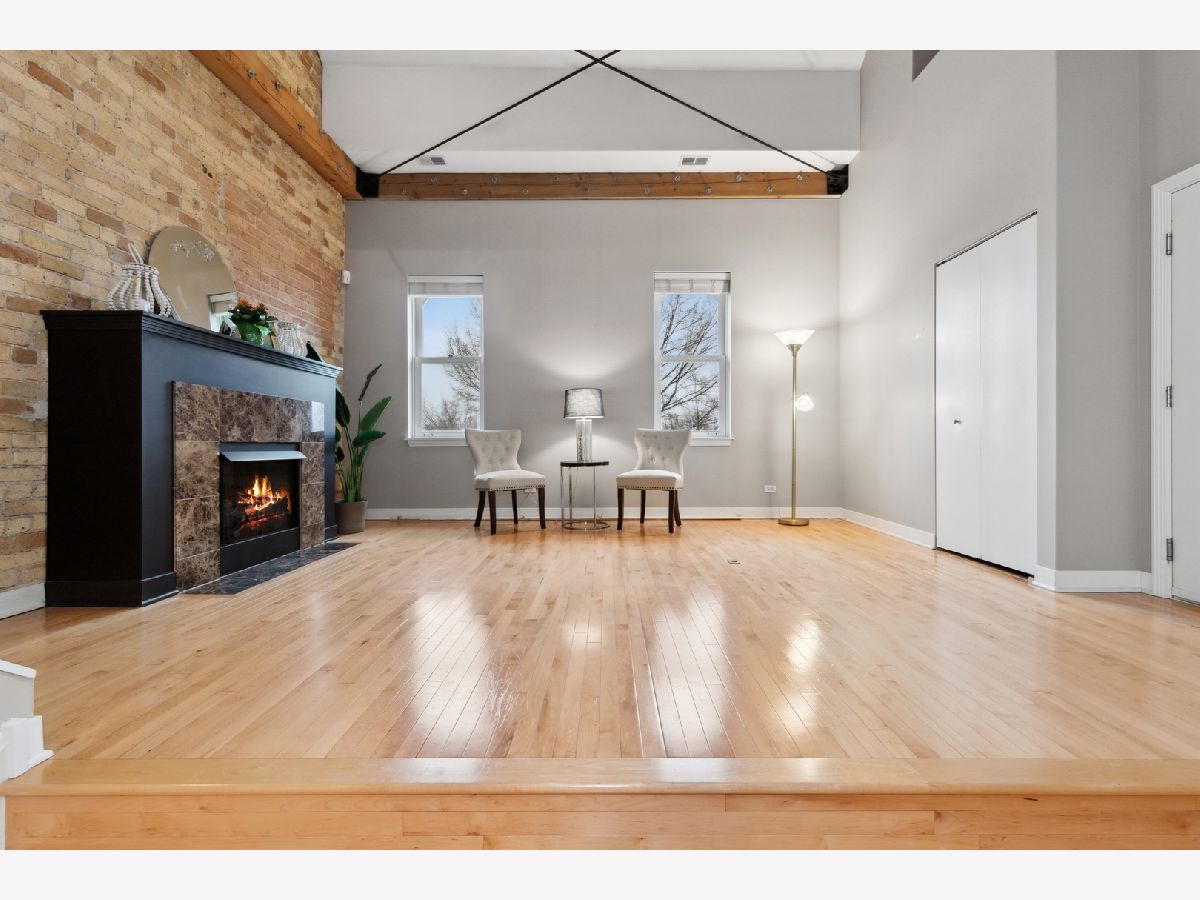 Architecturally appealing, highly sought after 2 bedroom condo PLUS a loft in stunning Fort Sheridan Tower Barracks! Walk to Lake Michigan beaches, Open Lands, hiking, biking and birding trails. Enjoy vintage architecture accentuated with wooden trusses, beams, exposed brick interior walls with sweeping views enhanced by fresh urban interior design. 1,600 sq. ft. of historical splendor! The 25 foot tall peaked ceilings set the stage for this contemporary and organic residence. Gas log fireplace in Living room with marble surround. Hardwood floors and neutral decor. Spacious loft can be used as additional bedroom/workout room or office. 11' ceilings in bedrooms. Master has 3 spacious closets. In unit Laundry. Brand new large south facing balcony overlooking charming terrace brings light all day. Large walk in storage area at garage level. Heated garage. Maintenance free living at its best!. Walk to Ft. Sheridan Metra Station, Starbucks and countless Highwood restaurants, bakeries and shops! Quick close possible! OPEN SUNDAY (3/27) from 1-4 pm.
