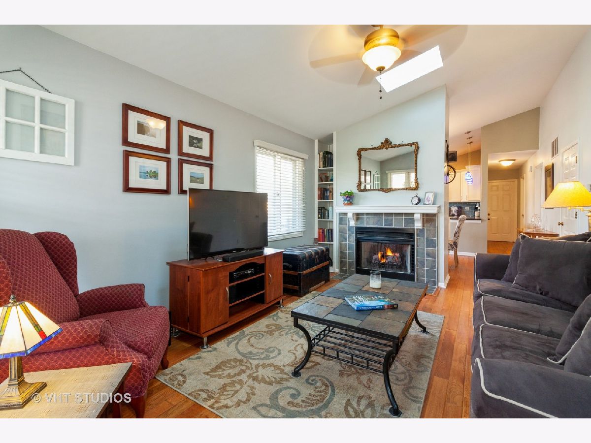 Welcome home to Naperville Waterfront Estates! This spacious one-story, end unit duplex is meticulously maintained with an open living room, vaulted ceilings, bright skylights and a fireplace you'll turn on all fall and winter! Walk into the updated kitchen with white cabinets, newer appliances and the perfect eat-in area. Hardwood floors are throughout the home including the two bedrooms. The attached 1-car garage brings you into the laundry room/mudroom and the sliding glass doors take you outside to the paver patio - perfect for outdoor entertaining! No need to bring your lawn mower - low HOA fees cover landscaping. Plus, this home is located in the highly rated School District 203, close to downtown Naperville and just steps away from the DuPage River and Trail where you can go kayaking, tubing or biking. Don't miss this fantastic find!