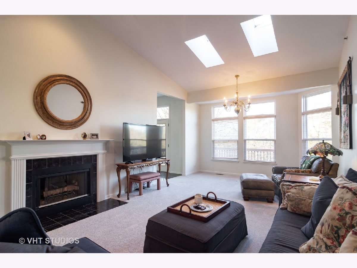 Fabulous townhome in Equestrian Grove available immediately. LOW low HOA! Not in flood zone, never seen water, amendment attached. Cathedral ceilings and added skylights fill the room with plenty of natural light. Fireplace with custom mantle adds to a cozy family room. Freshly painted walls and trim, new light gray carpet on the main level extends to all bedrooms. Large walk in closets everywhere. Kitchen has beautiful black granite and ceramic tile floors. Oversized lower level family room has beautiful dark wood durable floors with walk out to paver patio. Deck backs to acres of forest preserve with panoramic nature views of sunrise and sunsets. 2+ car garage and TONS of storage space. Roof replaced 2006. First and only owner. Home warranty included. Super convenient to major highways and great restaurants.