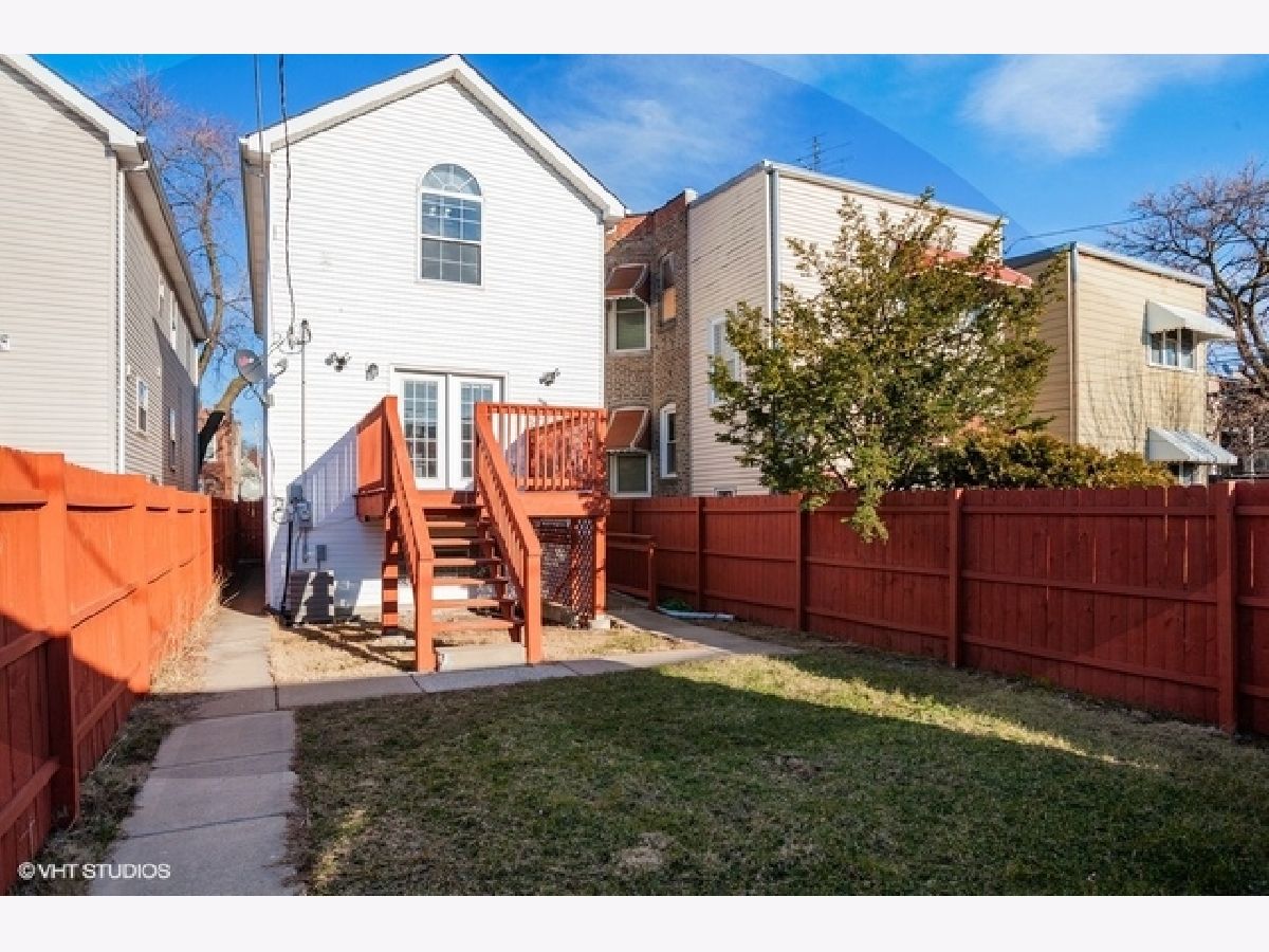 Stunning contemporary house in a superb location in hot Hermosa! This house is only 16 years old. Recent renovations include bathrooms with large vanities and kitchen with stainless steel appliances, granite countertops, & 42" shaker cabinets. Open layout living room and dining room with gorgeous gas fireplace. 3 bedrooms upstairs, 2 of which have beautiful high vaulted ceilings. Enjoy a cup of coffee or glass of wine on the balcony off the front bedroom! Deck off the kitchen overlooks nice fenced backyard between house and 2-car garage. Basement has great ceiling height and drain tile with sump pump and features a spacious in-law suite with bedroom, family room, & full bathroom. Ample storage space including large storage/mechanical room in basement, attic space upstairs, & generous closets with updated rods/shelving throughout. Half mile to Healy Metra, half block to 74 CTA bus. Lots of restaurant & grocery options within a few blocks. Kelvyn Park with many amenities 4 blocks away. Great opportunity to own a high quality home in a quickly appreciating area.