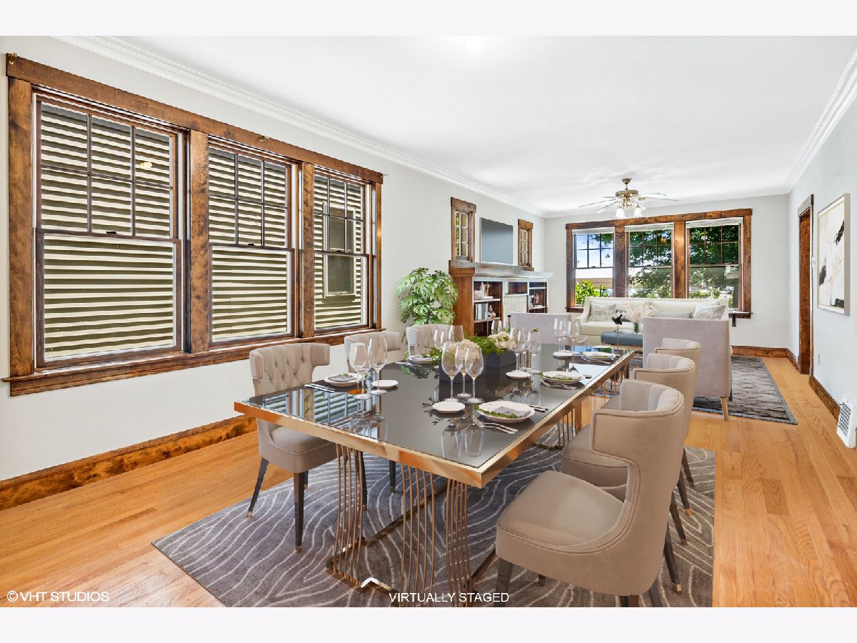 Amazing 3-level brick single family home in Bell Elementary boundary on extra wide 33ft lot. Pride of ownership is everywhere in this move-in ready home. Beautiful stained moldings, newly painted, updated lighting, windows replaced, updated baths. Updated kitchen with maple cabinets and a walk-in pantry. Kitchen opens to a three-season patio, beautifully landscaped yard and garage. Brick construction home features 5 bed / 2 full bath + office. Full, unfinished walkout basement. 2nd floor features 3 bed / 1 bath + rec room and main level features 2 bed + office, kitchen/dining/living. Zoned HVAC, hardwood flooring. Interior photos show painting in progress. Estimated sqft is 3000, including full, unfinished basement (with good ceiling height). Walk to Bell School and North Center/Roscoe transportation, restaurants and retail.