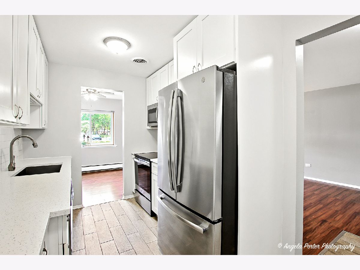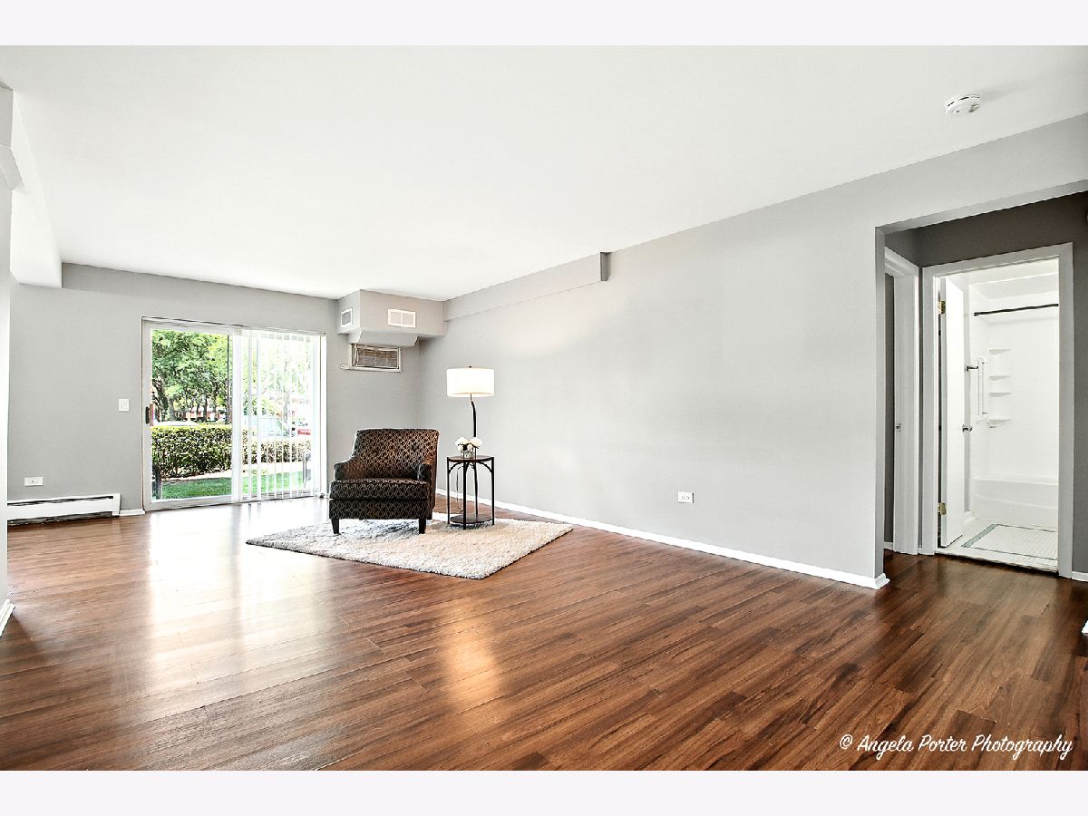 THE BEST VALUE IN ARLINGTON HEIGHTS AND BEAUTIFUL, MOVE-IN READY! Centrally located, gorgeous 1st floor condo with galley kitchen featuring quartz counters, newer stainless appliances, 46" cabinets and huge pantry. Freshly painted in neutral grey. Open concept, L-shaped combo living and dining rooms. Sliding doors lead to private patio and grass and garden area. Large Bedroom w/wall of closet space. Bathroom also renovated with new fixtures, cabinetry and lighting. Additional storage locker in basement. Laundry in common area. Minutes to Mariano's, Jewel, restaurants, entertainment, parks & dining. HERSEY HIGH SCHOOL! Brandenberry Park offers a Pool, Tennis Courts, Basketball Court, & Playground. Home sold As-Is, however, it is in Excellent Condition. Cats only, and owners must occupy the unit for 2 years prior to leasing. Building requires an 80% owner occupancy at all times.