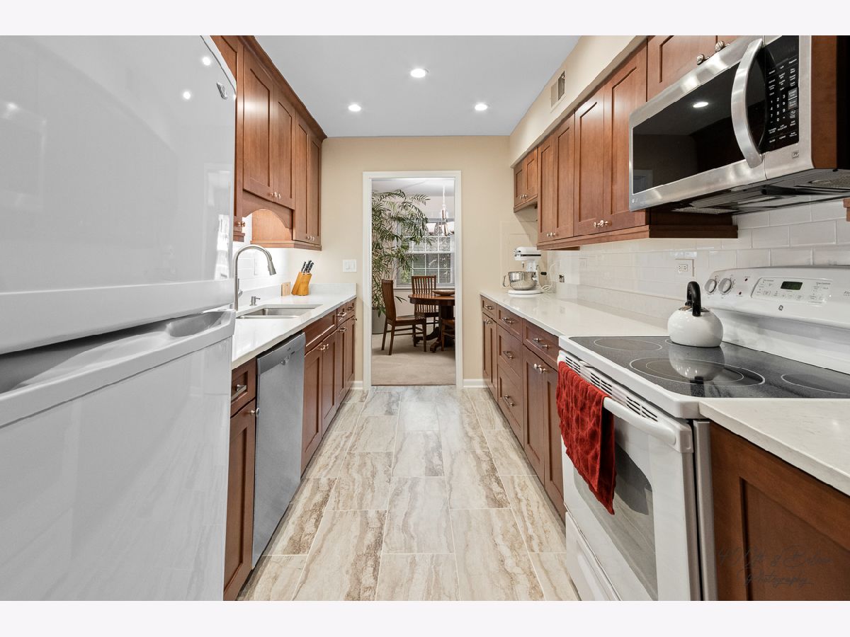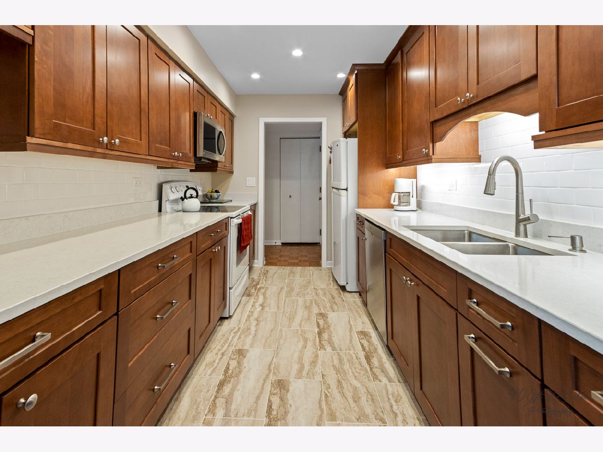 Awesome location!! Ready to move into beautiful home! Remodeled Kitchen in 2019 with 42" Cabinets, Cortz tops, Bosch Dishwasher, Tile Floor and Stainless Steel Appliances. Sliders lead to a private balcony! Wood Laminate Flooring in both bedrooms! The Master suite includes huge bedroom plus full bath, walk-in closet and second closet! The good size 2nd bedroom has french doors. Indoor heated parking garage with extra storage locker! Across the street from park!