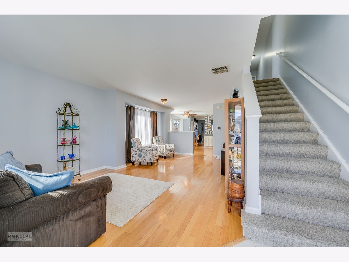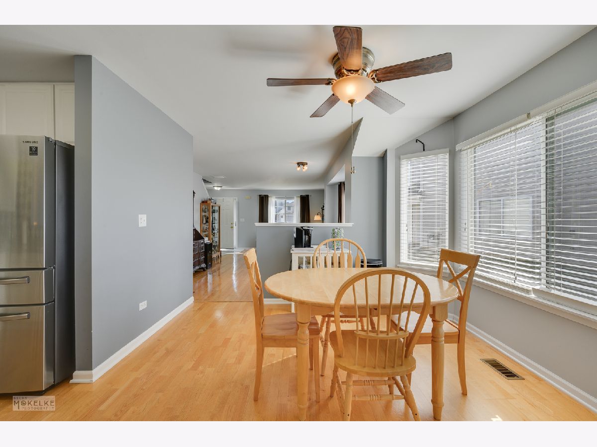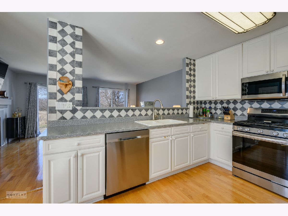 Gorgeous 2 story Duplex with tranquil backyard pond views! Your guest will be greeted in the front formal living room that opens to the dining area, both are perfectly suited for those special occasions. The gourmet kitchen will delight any cook with its white cabinetry, Corian counter tops, custom tile backsplash and stainless steel appliances. The eating area includes a bump-out for extra room. Relax in the family room with gas fireplace, media niche and sliding glass doors opening to the patio. The 1st and 2nd floor are easy maintenance with hardwood & laminate flooring. Upstairs you will find 3 spacious bedrooms, 2 full baths and conveniently located laundry! The primary suite features a vaulted ceiling, full wall of closets and a private bath. There is tons of storage in the 2 car tandem garage. Enjoy the serene backyard setting with grasslands and pond views while hosting BBQs on your patio. Buyer will have peace of minding knowing newer roof, water heater and appliances, as well as HVAC replaced approx 7yrs ago. Great community with walking trails and ponds. NO HOA FEES!! Popular Oswego 308 School District. Welcome Home!