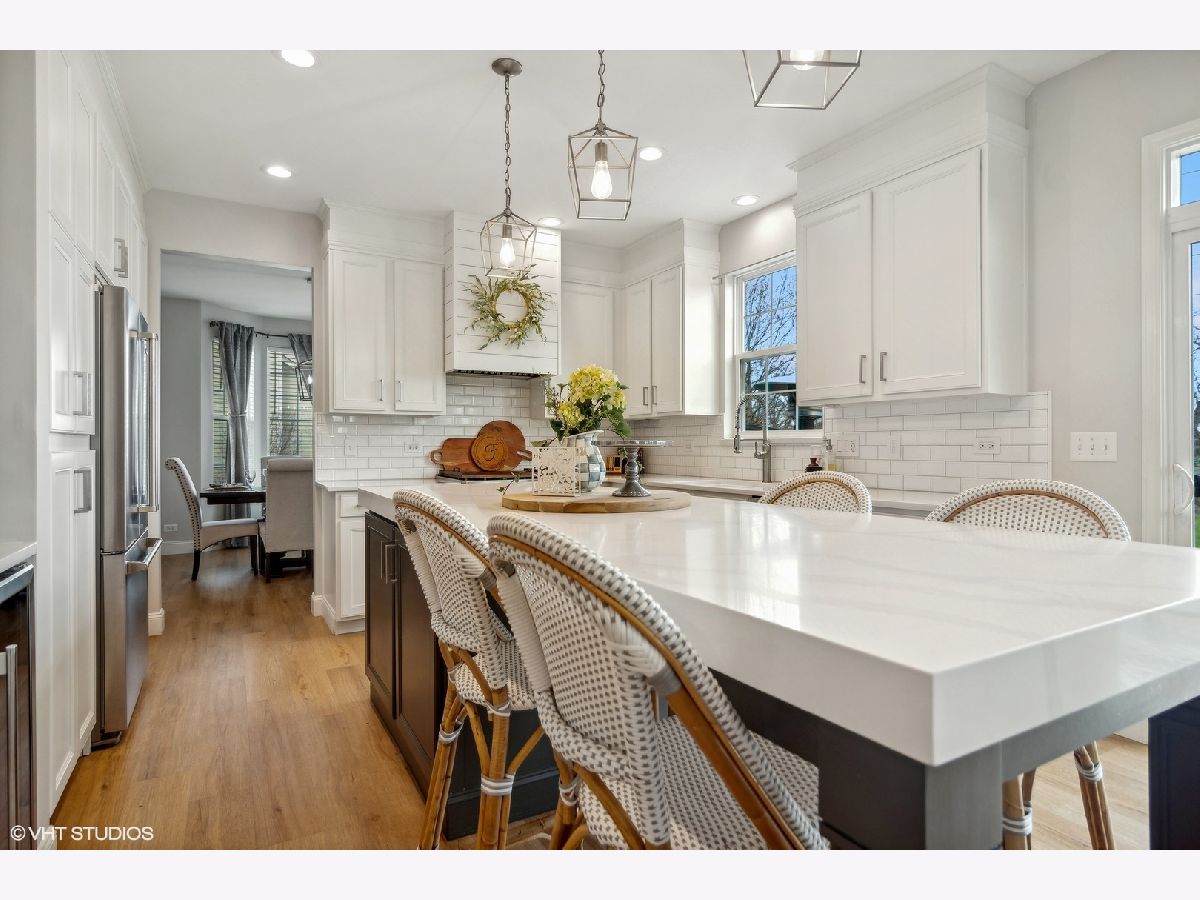 Welcome to this remarkable move-in home that will surely wow you! Stepping into the inviting foyer, you will notice the beautiful new rod iron and wood staircase ('22) setting the tone for the rest of this updated home. The luxury new kitchen ('22) is a highlight, featuring stunning white custom cabinets, quartz countertops and a 3 inch quartz on island with additional seating. Pull out drawers, BlueStar appliances ('22), separate coffee bar and all new lighting make this space one not to miss. The open concept design flows seamlessly into the spacious family room complete with a custom built entertainment center ('22), ship lap accents, and a gas fireplace with tile surround ('22). Abundant windows throughout the home bring in ample natural light, creating a warm and welcoming atmosphere. The main level boasts new vinyl flooring ('22) for a fresh and modern touch. Convenience meets style with the mudroom ('24) off the garage, offering additional storage and organizational solutions. The main level offers a separate office with a built-in desk, a separate living room and dining room for a more formal setting and an updated half bath ('22). Stepping out of the kitchen you can enjoy your private backyard oasis backing up to a preserve. With a concrete stamped large patio, playset, invisible fence for pets and shed, this backyard is perfect for entertaining! Moving to the second level, you'll find a versatile loft space that can be used as a home office, school area, playroom, or whatever suits your needs. The primary suite has an organized walk-in closet and private spa like updated bath ('22) offering a double vanity, separate shower and soaking tub. Three additional nice sized bedrooms, plus an additional updated full bath ('22) complete this 2nd level. Don't forget the full finished basement ('23) offering even more living space with a separate movie/bedroom/entertainment/gym space, wet bar, recreation room, plus plenty of storage! An additional bonus is the heated 3 car garage ('20) you won't want to miss. Additional updates include: whole house painted ('23), carpeting 2nd level ('23), water heater ('20), ejector pump ('22), recessed lighting added in family room/living room/kitchen ('22), 2nd floor vinyl floors ('22) and garage door transmitter ('21). Located near walking trails leading around the ponds and preserves, this home offers both luxury and functionality for your enjoyment.