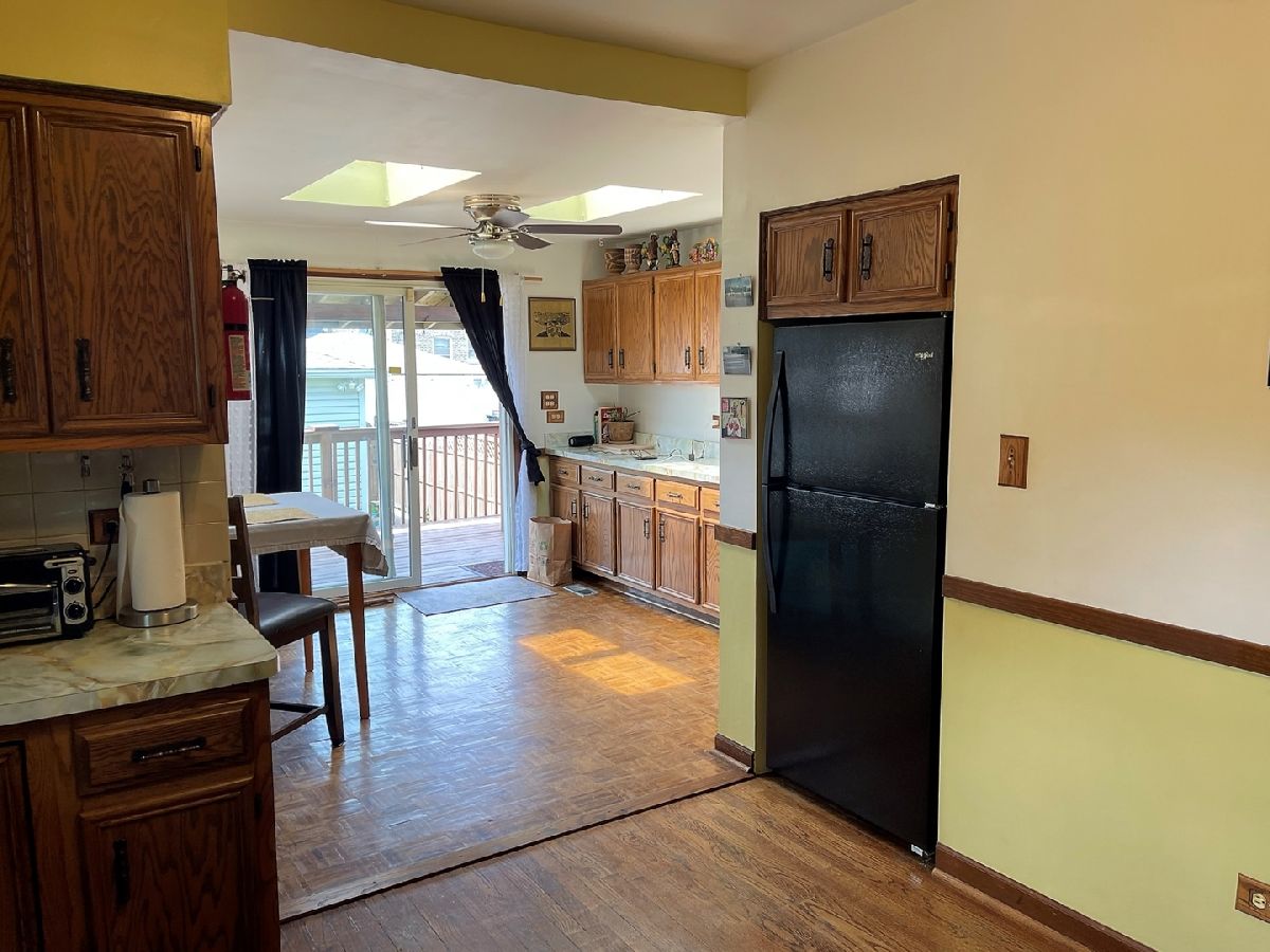 This Well Maintained Bungalow in the Beautiful Montclare Neighborhood of Chicago is much larger than it may appear. This Home has 2 bedrooms on the 1st Floor and a Master Suite in the Basement. Boasting a Spacious Living Room & a Separate Dining Room. There is mostly Hardwood Oak Flooring Throughout the 1st Floor. The Spacious Kitchen is a Cook's Dream, with Lots of Cabinets & Countertops, a New Fridge, Dishwasher & Stainless Steel Stove too! The Family Room off the Kitchen has sliding glass doors leading to a large deck and two Skylights flooding the Back of the House in Brilliant Natural Sunlight. The Finished Basement has a closed-off Private Area with a 2nd Full Bath that can be used as either a Master Suite, an in-law apartment arrangement (2 stainless steel appliances included too), OR as a Family Room. The Backyard features the Huge Deck, Tall fencing (offering sweet Privacy,) a nice 2 Car Garage, and a close walk to the Metra Station. Maintained over the years, the owner reports that the more recent improvements include... ALL new 1st-floor kitchen appliances (Jan 2022), new roof(2020), seepage septic system(2020), sump pump (2020), new siding (2017), Furnace (2019), Hot Water Heater (2017), and wall insulation (2013).