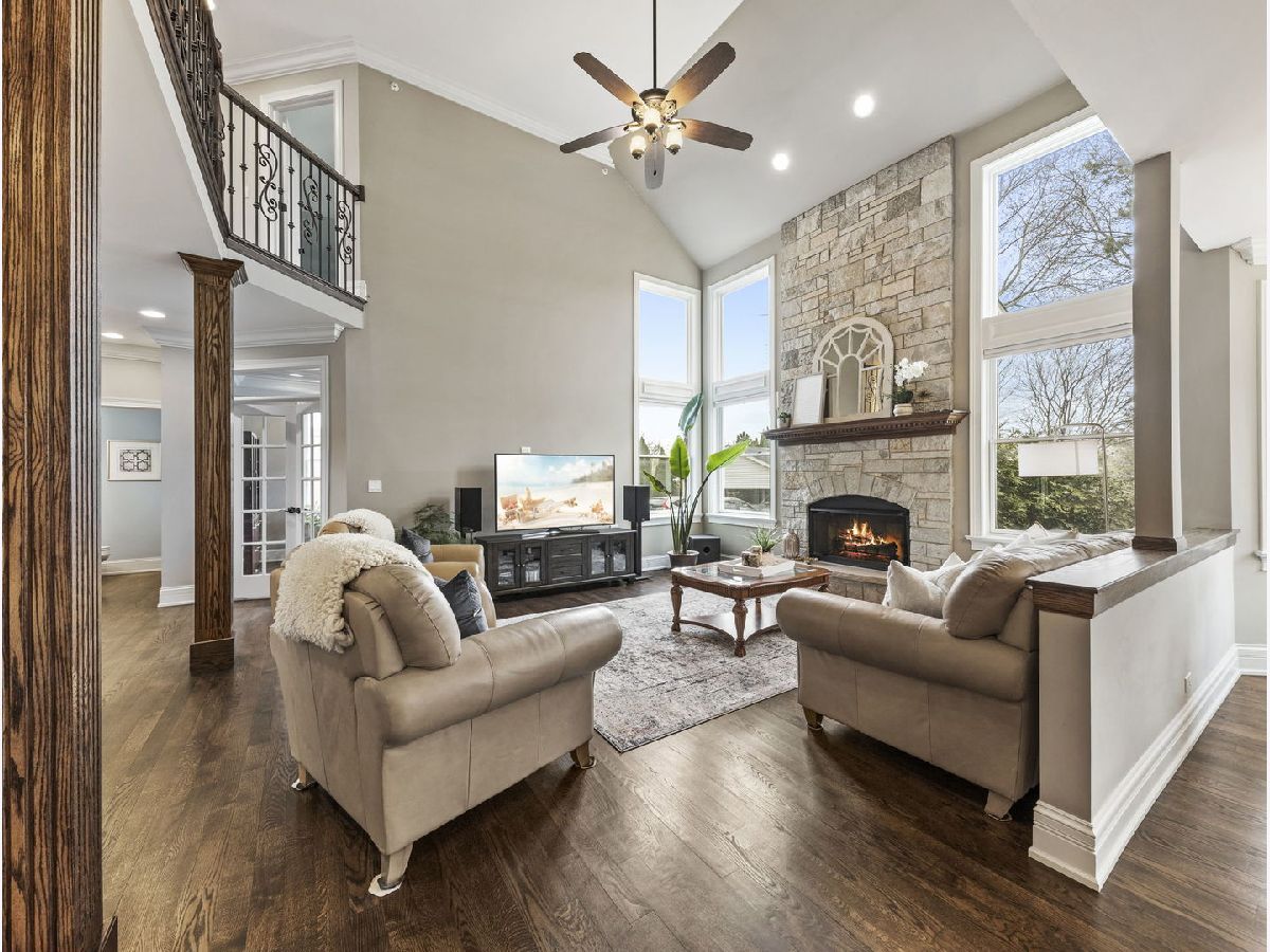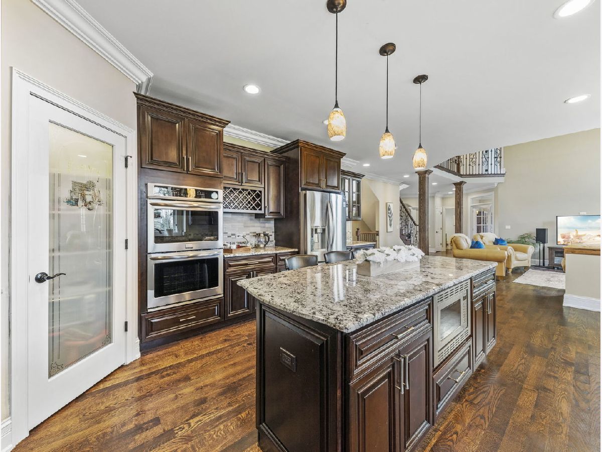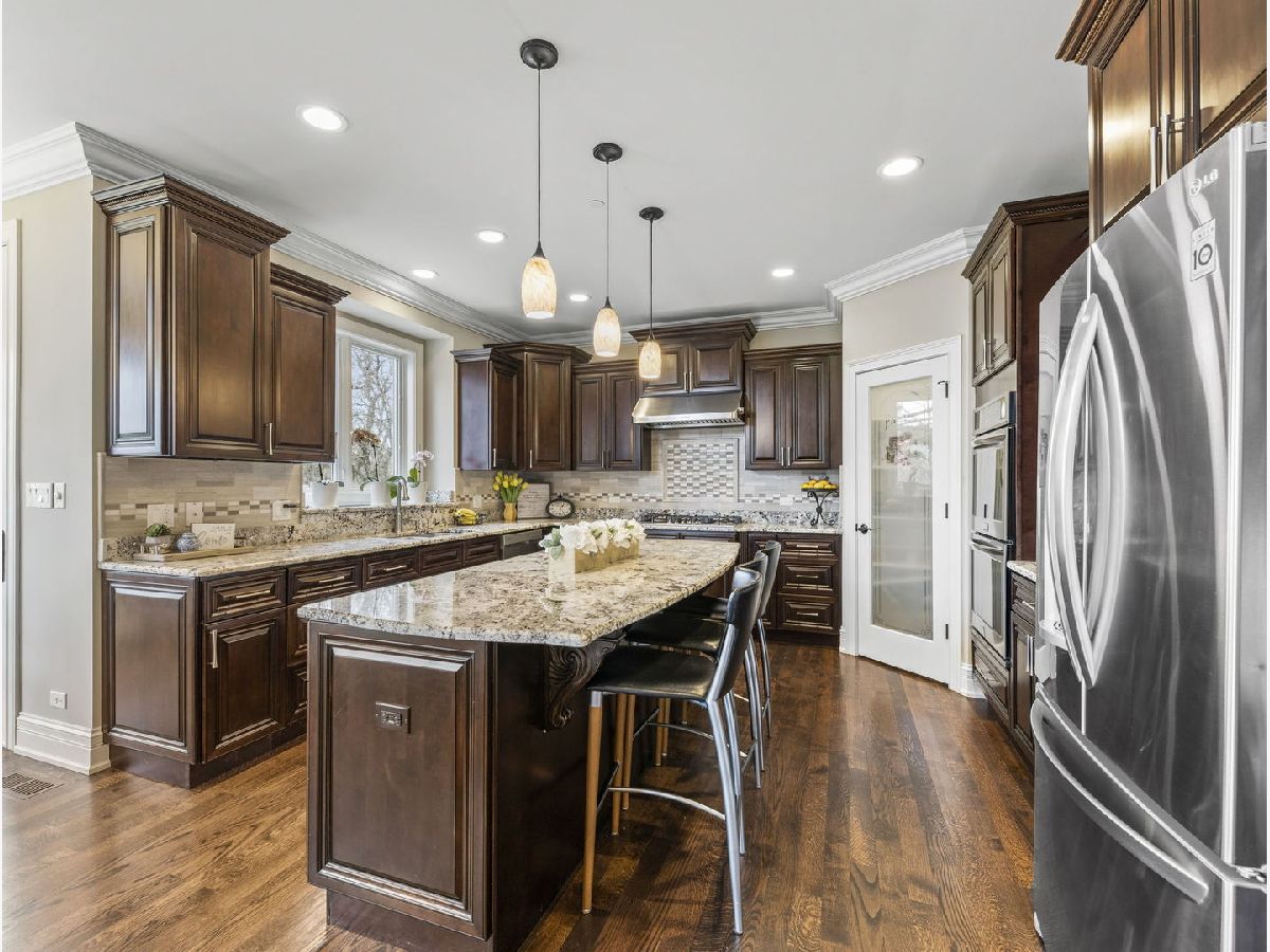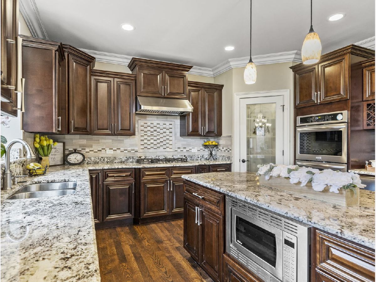 Classic, modern yet elegant describes this custom one of a kind home! Rarely available oversized lot with 'green space' on side and back! Breathtaking curb appeal with welcoming front porch, and oversized solid cherry front door all over-looking beautiful flowering shrubs and perennials! Dramatic center entrance 2-story open foyer has an abundance of natural sunlight streaming in. Hardwood floors throughout, substantial custom millwork, 1st floor office with french doors and coffered ceiling, Spectacular limestone gas log fireplace is the focal point of the family room which is open to the kitchen. This home is an entertainers dream with a combination mudroom/laundry/kitchenette off the 3-car heated garage. This 'flex' room is so unique with 2nd cooktop, sink, ample cabinetry, marble floor, stone backsplash & bench. This room lends itself for food prepping for catered events & hosting Holidays! The kitchen is a chef's dream equipped with an oversized island with room for 4 stools, stainless appliances, double oven, granite countertops, marble backsplash, coffee bar, wine rack, walk-in butler's pantry and ample lighting! Breakfast room overlooking private backyard with plenty of wildlife and birds! Elegant dining room has a tiered tray ceiling with a built-in speaker system. Luxury master bedroom with full ensuite, marble, stone, oversized shower, body spray, extra large whirlpool tub, and 2 large walk-in closets! Guest bedroom has its own ensuite with seated marble shower and flooring! 2nd floor bathrooms have valves for instant hot water! Main bath has dual sinks & granite countertop, marble bath, wall, and floor. All bedrooms have volume ceilings, & lighted ceiling fans. Basement is a deep pour--perfect for a golf simulator and it's already rough plumbed for a bathroom! Dual zoned high efficiency HVAC for energy savings & comfort! Breakfast room has egress to a herringbone paver patio, gas line hook up, and sound system! Enjoy the lush green space with the privacy of having no backyard neighbors! Pella windows & doors, professional landscaped. Nothing to do but move in! Back of house faces South and has plenty of room for a pool. Award winning schools, parks, library! Mins to train and a short walk to downtown Glen Ellyn, Lake Ellyn, restaurants, shops, bike & walking trails and so much more!