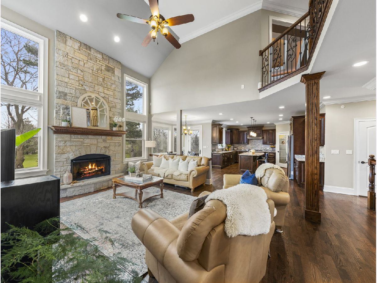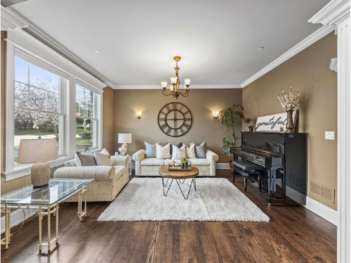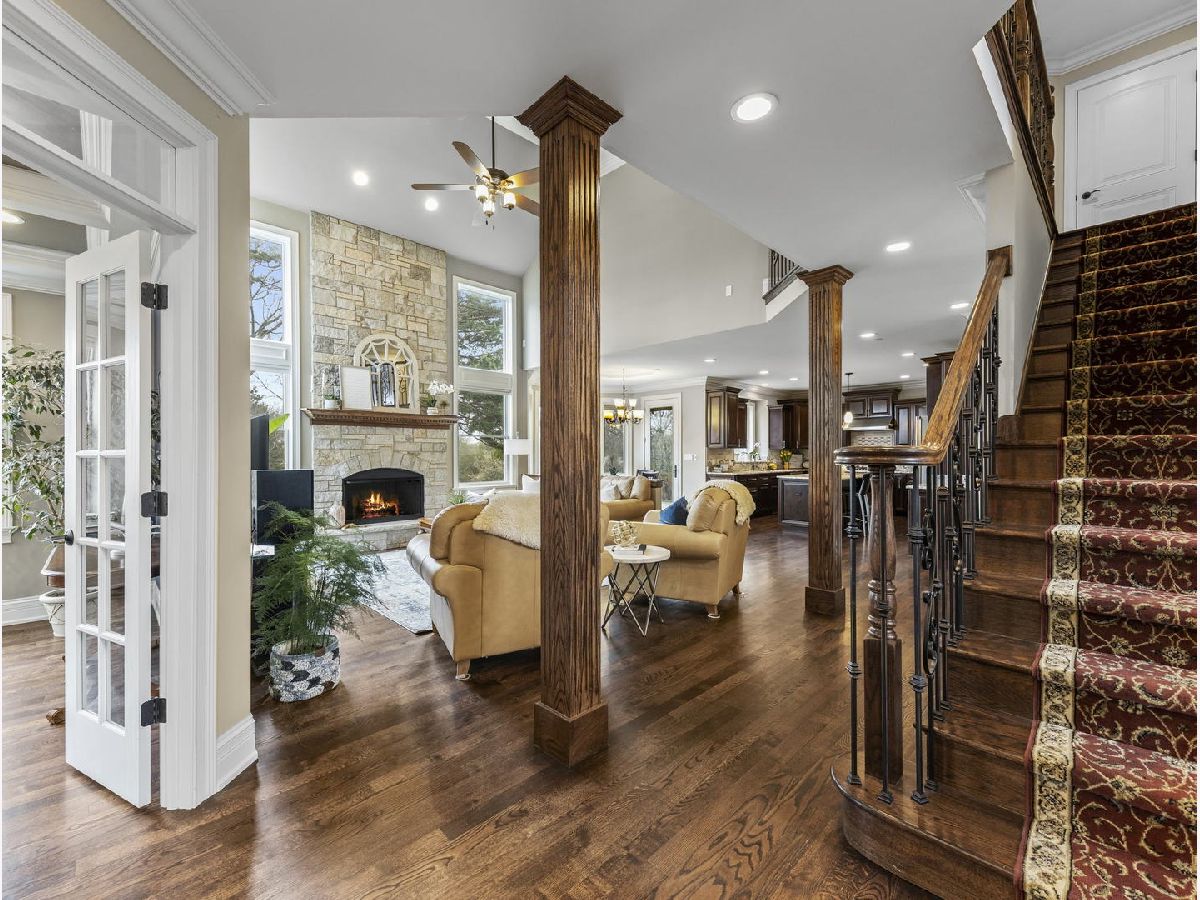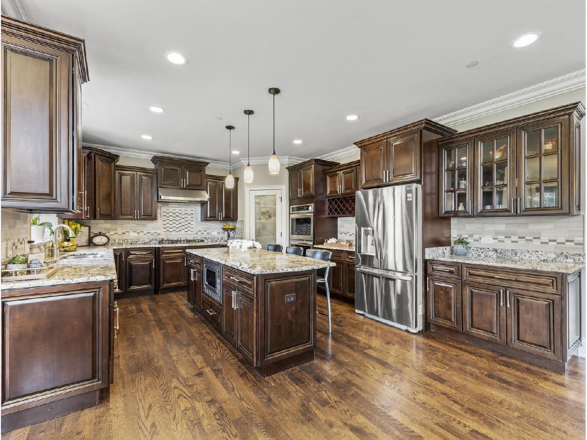 Classic, modern yet elegant describes this custom one of a kind home! Rarely available oversized lot with 'green space' on side and back! Breathtaking curb appeal with welcoming front porch, and oversized solid cherry front door all over-looking beautiful flowering shrubs and perennials! Dramatic center entrance 2-story open foyer has an abundance of natural sunlight streaming in. Hardwood floors throughout, substantial custom millwork, 1st floor office with french doors and coffered ceiling, Spectacular limestone gas log fireplace is the focal point of the family room which is open to the kitchen. This home is an entertainers dream with a combination mudroom/laundry/kitchenette off the 3-car heated garage. This 'flex' room is so unique with 2nd cooktop, sink, ample cabinetry, marble floor, stone backsplash & bench. This room lends itself for food prepping for catered events & hosting Holidays! The kitchen is a chef's dream equipped with an oversized island with room for 4 stools, stainless appliances, double oven, granite countertops, marble backsplash, coffee bar, wine rack, walk-in butler's pantry and ample lighting! Breakfast room overlooking private backyard with plenty of wildlife and birds! Elegant dining room has a tiered tray ceiling with a built-in speaker system. Luxury master bedroom with full ensuite, marble, stone, oversized shower, body spray, extra large whirlpool tub, and 2 large walk-in closets! Guest bedroom has its own ensuite with seated marble shower and flooring! 2nd floor bathrooms have valves for instant hot water! Main bath has dual sinks & granite countertop, marble bath, wall, and floor. All bedrooms have volume ceilings, & lighted ceiling fans. Basement is a deep pour--perfect for a golf simulator and it's already rough plumbed for a bathroom! Dual zoned high efficiency HVAC for energy savings & comfort! Breakfast room has egress to a herringbone paver patio, gas line hook up, and sound system! Enjoy the lush green space with the privacy of having no backyard neighbors! Pella windows & doors, professional landscaped. Nothing to do but move in! Back of house faces South and has plenty of room for a pool. Award winning schools, parks, library! Mins to train and a short walk to downtown Glen Ellyn, Lake Ellyn, restaurants, shops, bike & walking trails and so much more!
