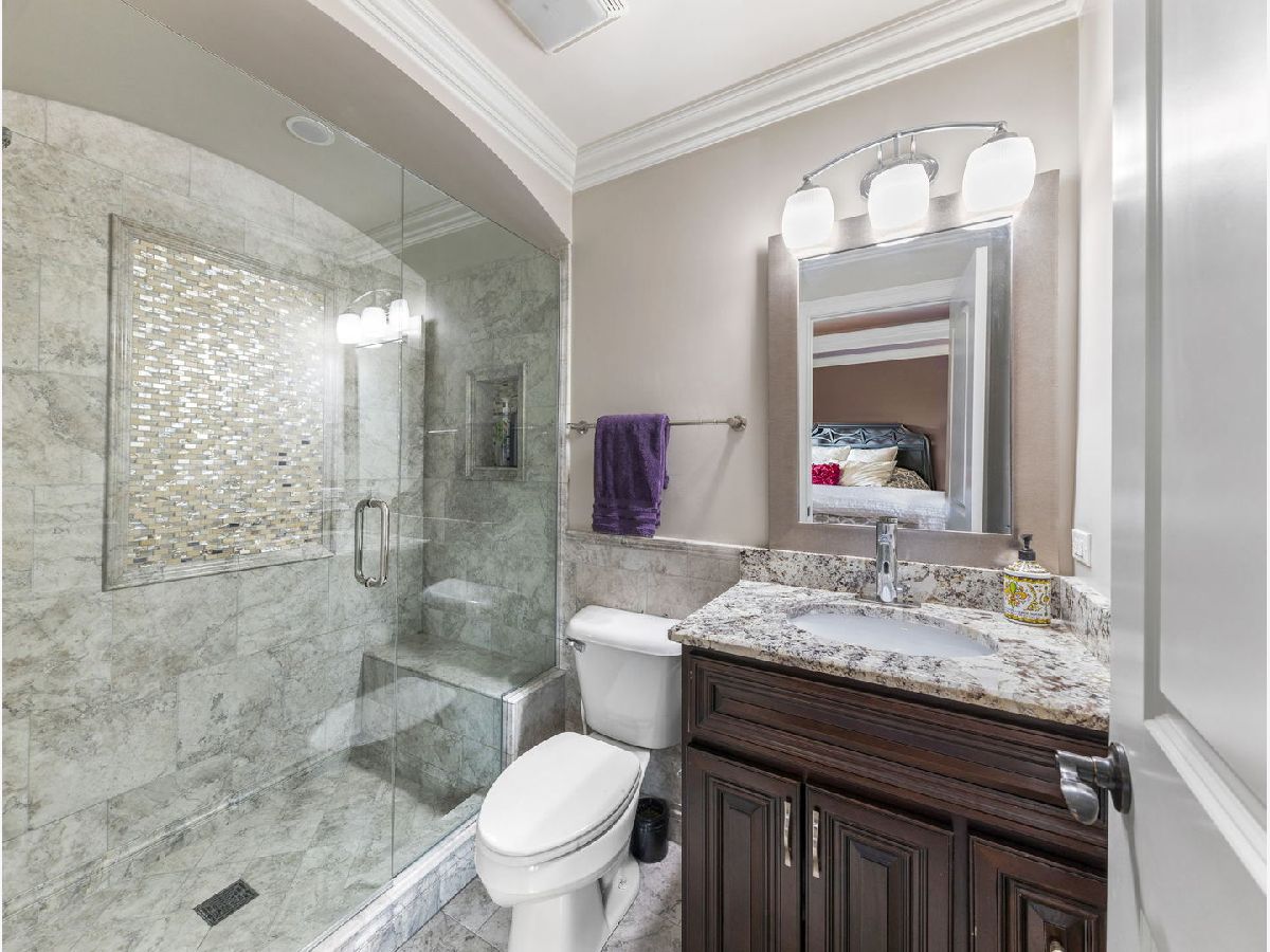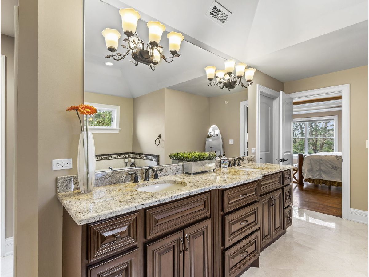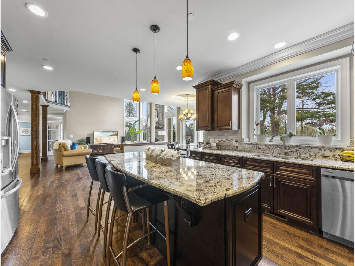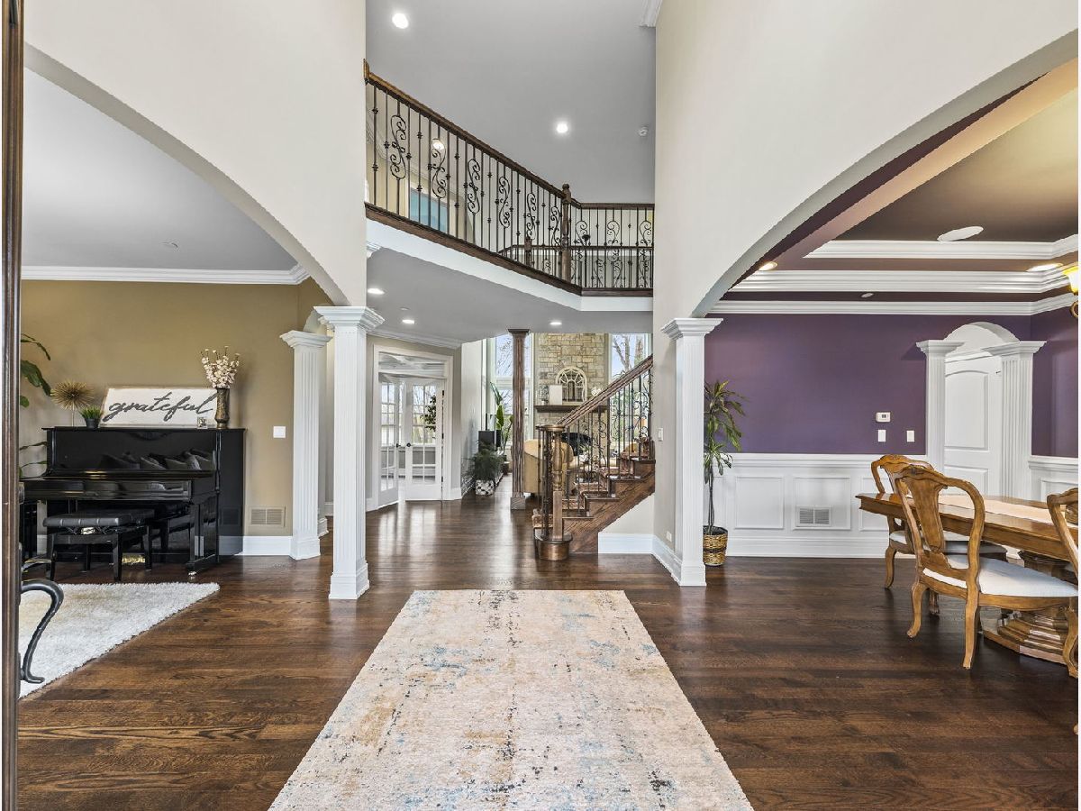 Classic, modern yet elegant describes this custom one of a kind home! Rarely available oversized lot with 'green space' on side and back! Breathtaking curb appeal with welcoming front porch, and oversized solid cherry front door all over-looking beautiful flowering shrubs and perennials! Dramatic center entrance 2-story open foyer has an abundance of natural sunlight streaming in. Hardwood floors throughout, substantial custom millwork, 1st floor office with french doors and coffered ceiling, Spectacular limestone gas log fireplace is the focal point of the family room which is open to the kitchen. This home is an entertainers dream with a combination mudroom/laundry/kitchenette off the 3-car heated garage. This 'flex' room is so unique with 2nd cooktop, sink, ample cabinetry, marble floor, stone backsplash & bench. This room lends itself for food prepping for catered events & hosting Holidays! The kitchen is a chef's dream equipped with an oversized island with room for 4 stools, stainless appliances, double oven, granite countertops, marble backsplash, coffee bar, wine rack, walk-in butler's pantry and ample lighting! Breakfast room overlooking private backyard with plenty of wildlife and birds! Elegant dining room has a tiered tray ceiling with a built-in speaker system. Luxury master bedroom with full ensuite, marble, stone, oversized shower, body spray, extra large whirlpool tub, and 2 large walk-in closets! Guest bedroom has its own ensuite with seated marble shower and flooring! 2nd floor bathrooms have valves for instant hot water! Main bath has dual sinks & granite countertop, marble bath, wall, and floor. All bedrooms have volume ceilings, & lighted ceiling fans. Basement is a deep pour--perfect for a golf simulator and it's already rough plumbed for a bathroom! Dual zoned high efficiency HVAC for energy savings & comfort! Breakfast room has egress to a herringbone paver patio, gas line hook up, and sound system! Enjoy the lush green space with the privacy of having no backyard neighbors! Pella windows & doors, professional landscaped. Nothing to do but move in! Back of house faces South and has plenty of room for a pool. Award winning schools, parks, library! Mins to train and a short walk to downtown Glen Ellyn, Lake Ellyn, restaurants, shops, bike & walking trails and so much more!