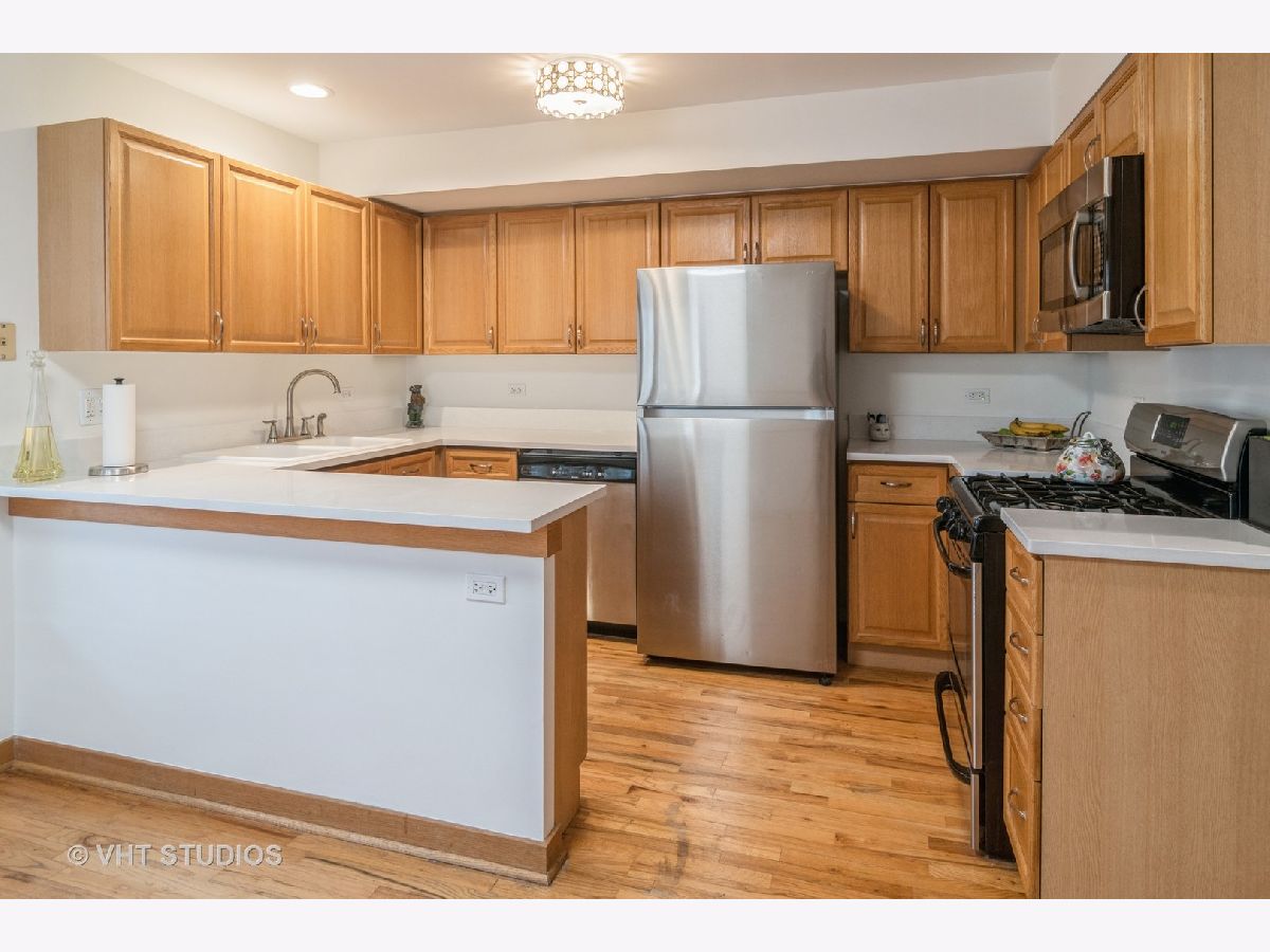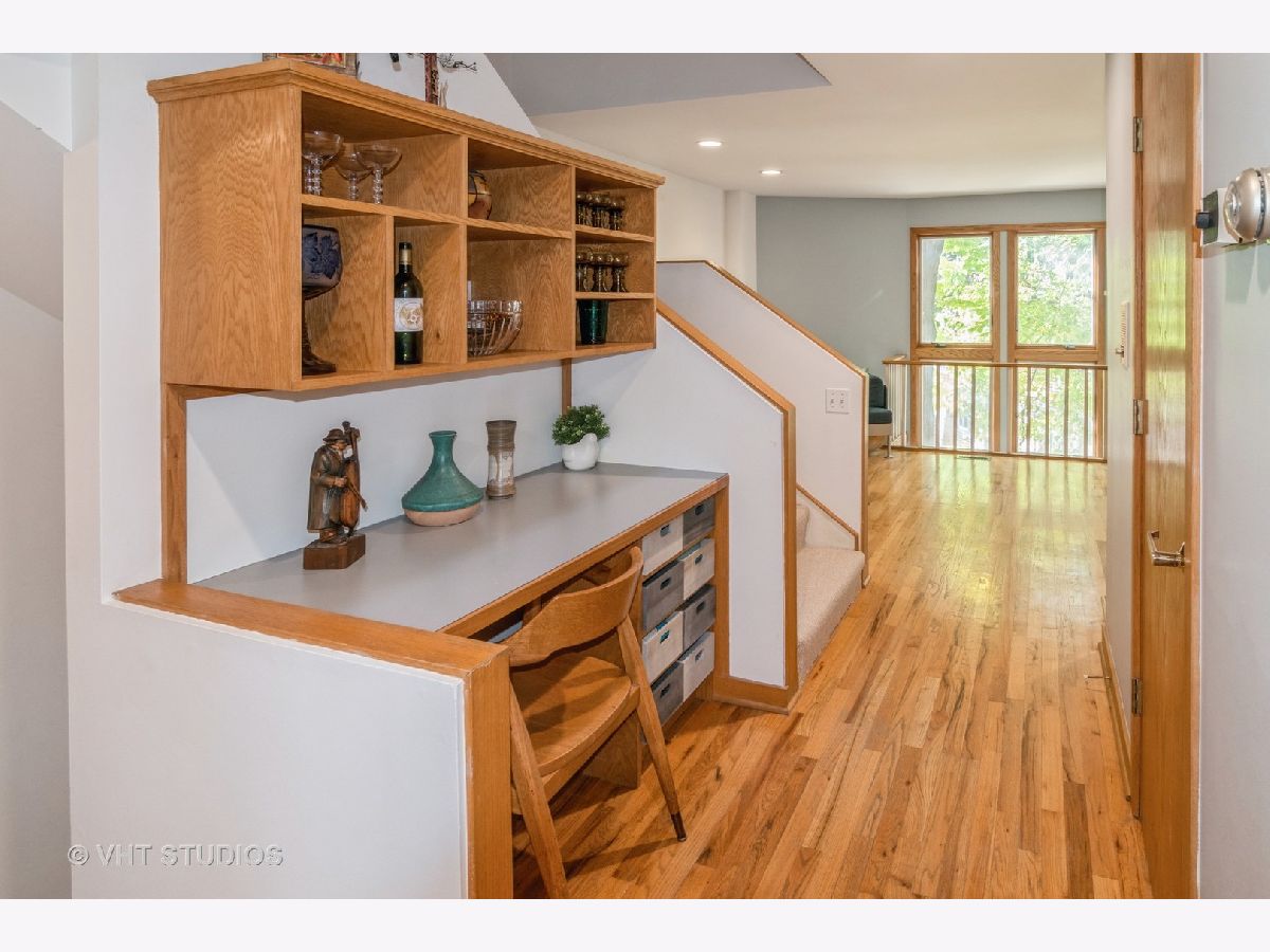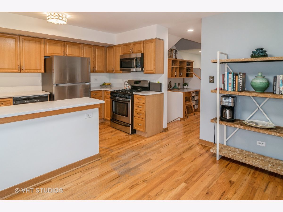 Are the following items on your New Home Wish List? Close to downtown location, flexible living space, great closet space, move in ready, garage parking, and awesome outside space? Well, then, check all those boxes, and start packing, because here it is! This darling 4-level townhouse is within blocks of downtown Oak Park and Forest Park, the Metra and Green Line, and dozens of amazing restaurants, shops, and parks. Nestled in a small enclave of townhomes, this quiet and private complex is lush with shady trees and perennials. Enter through the front door and discover your first flexible living space. Make it a family room, home office, exercise area, art/craft studio, or playroom. The second level features a wall of windows that rise up from the first floor in the living room which also includes a wood-burning fireplace. The kitchen has brand new quartz countertops, stainless steel appliances, and a large dining area. Also on the first floor is a half bath, laundry area, and built-in desk/bar area. Ascend to the next level and be welcomed by two terrific bedroom suites. The primary bedroom features a wall of closets with organizers and a large ensuite bath with double sinks. The second bedroom also has an ensuite bath and walk-in closet. While these are wonderful places to relax, don't stop there! Up one more flight is another bonus area filled with natural light that would make an amazing home office or studio space, AND for your outdoor pleasure, there are TWO spacious rooftop decks where you can relax, garden, grill, watch fireworks, and entertain friends and family. Additional features to this great home is an attached 1-car garage with plenty of storage space, hardwood floors on all floors except the bedroom level, brand new carpeting in the stairwells and bedrooms, and freshly painted throughout. This is a home where memories are made. Start making yours TODAY...Welcome Home!