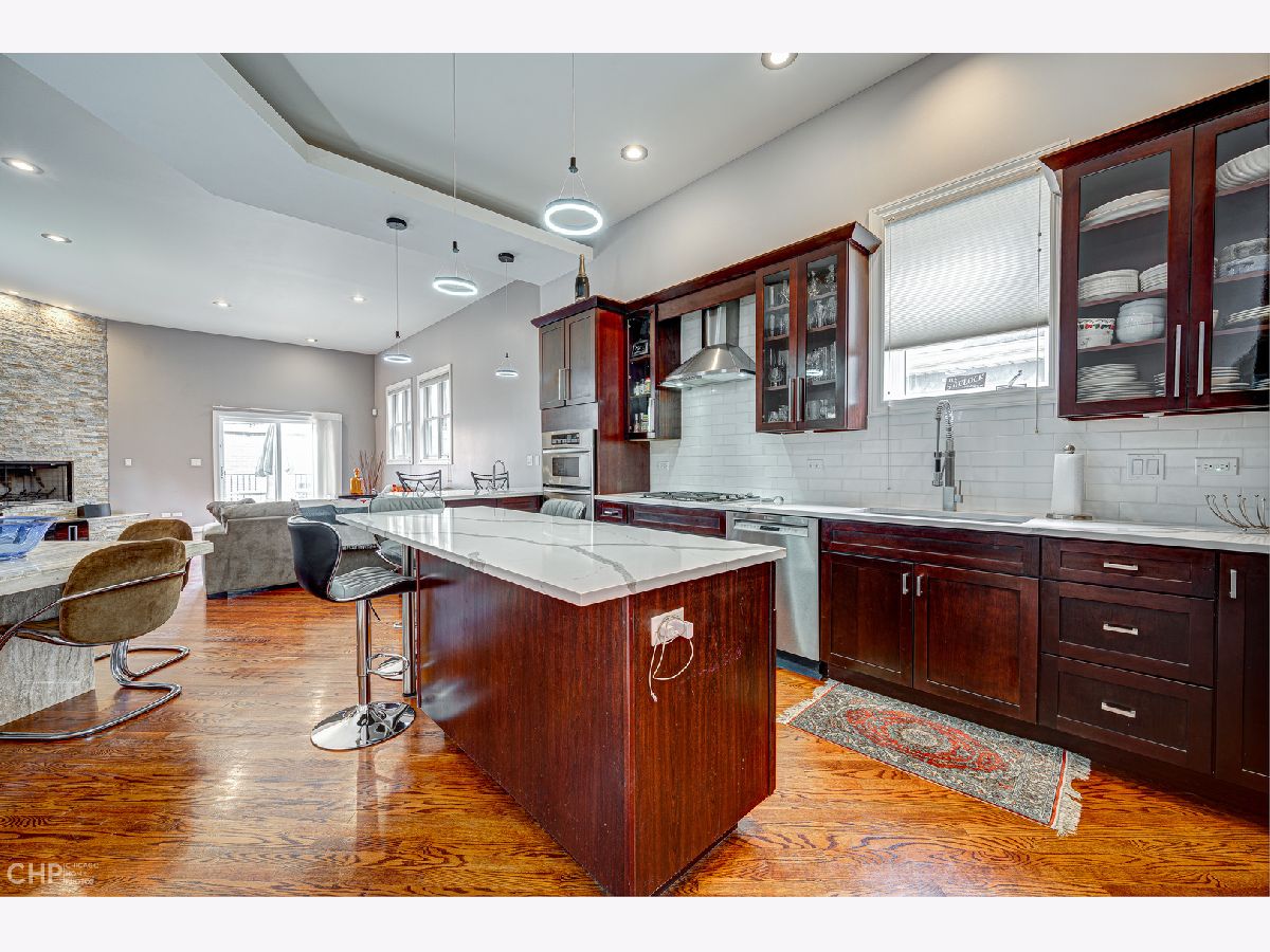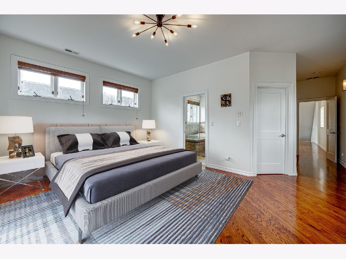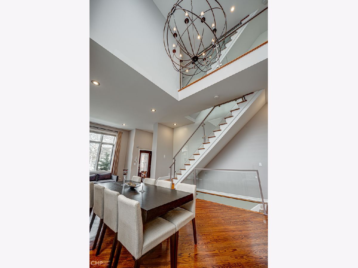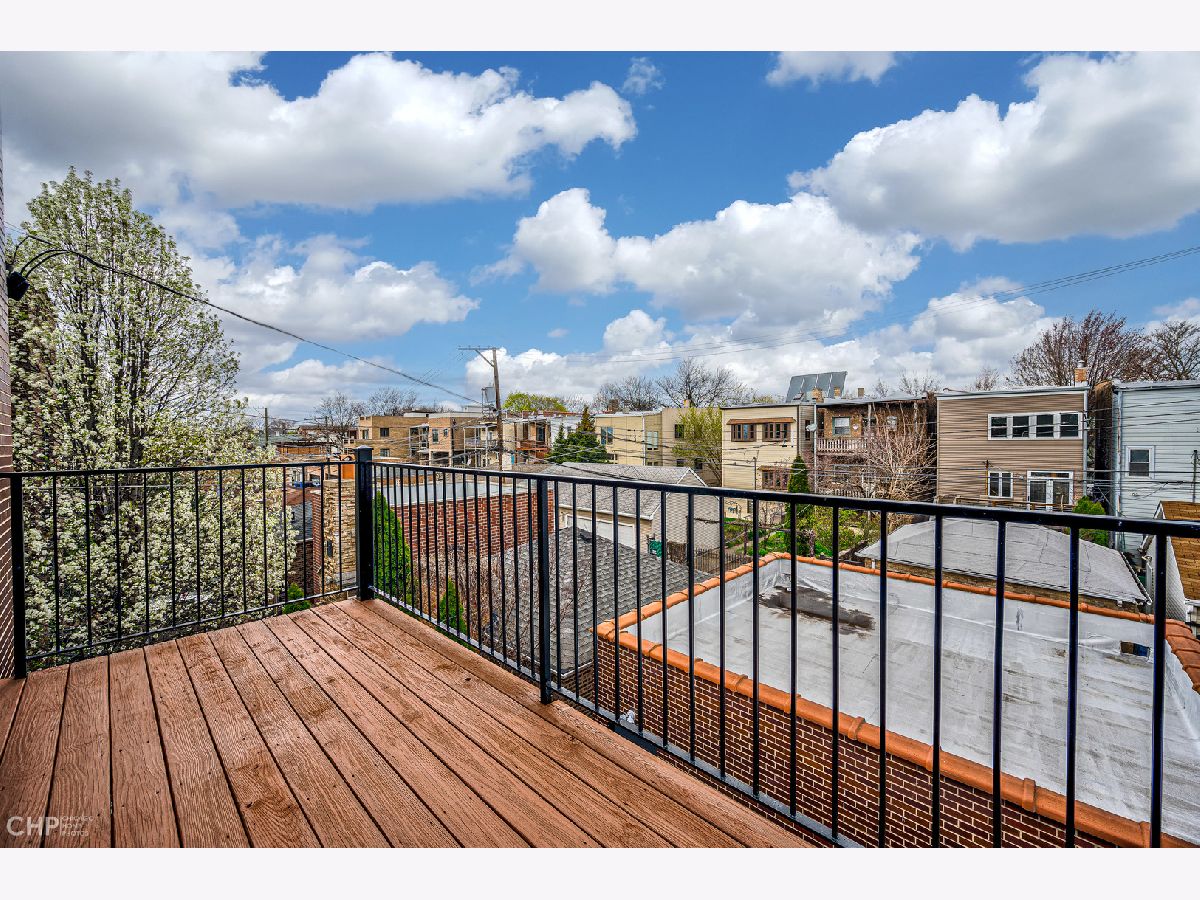 Welcome to 2430 W Huron, approximately 4,000 sf of soaring ceilings, entertainment spaces, and rooftop city views all in desirable West Town. This 4-bedroom home welcomes you to the foyer with 12' ceilings in the formal dining room with ample amounts of natural light with the added privacy of a floor to ceiling glass block wall. The chef's kitchen is a cook's dream with high-end Wolf, Bosch, and KitchenAid appliances, quartz countertops, all new faucet and lighting, custom cherry cabinets and walk-in pantry. The open concept kitchen to a large living area complete with gas fireplace and outdoor deck for summer barbecues. Ascend the open glass staircase in the foyer to the second floor with 9' ceilings. On the second floor you will find 3 bedrooms all complete with their own en-suite bathrooms, a true rarity in the city! The primary bedroom has a private balcony overlooking the backyard and en-suite bathroom that includes a double vanity, jet tub, and steam bath. A fully built-out walk-in closet completes the space. For those who can't get enough city views, the private rooftop deck built in 2020 is just up the stairs and offers panoramic views of Chicago. The lower level of the home is perfect for relaxing and hosting with high ceilings, media area, wet bar, and a wine fridge. It also offers a 2nd laundry room and the fourth bedroom complete with bathroom, large storage closet, and private backyard entryway. The all-brick 2+ car garage is the perfect finishing touch to this home along with the newly painted interior, decks, and exterior fencing. Close to Smith Park, 3 blocks to the Metra, easy access to 90/94 and 290, and in the Chopin School District.