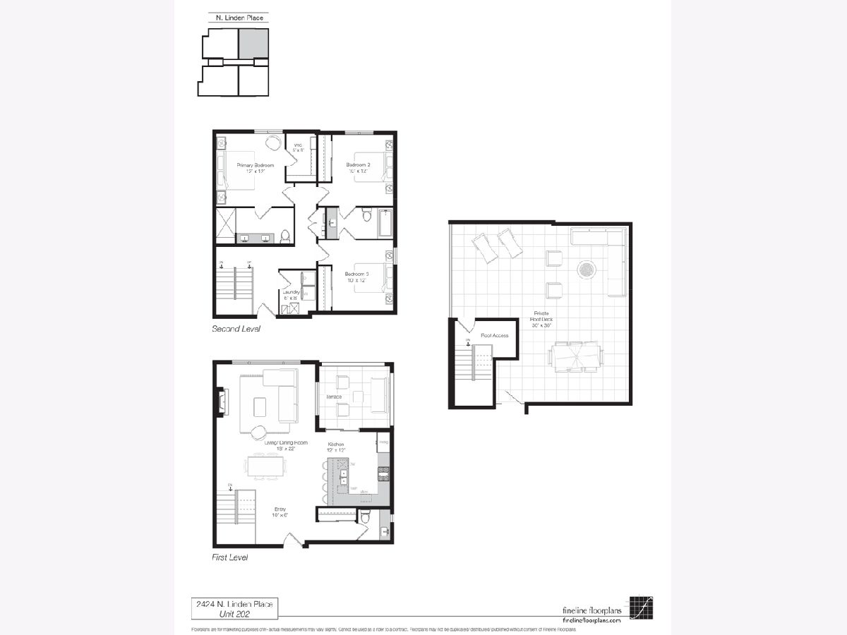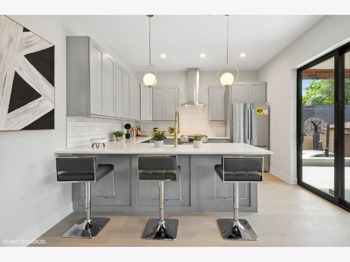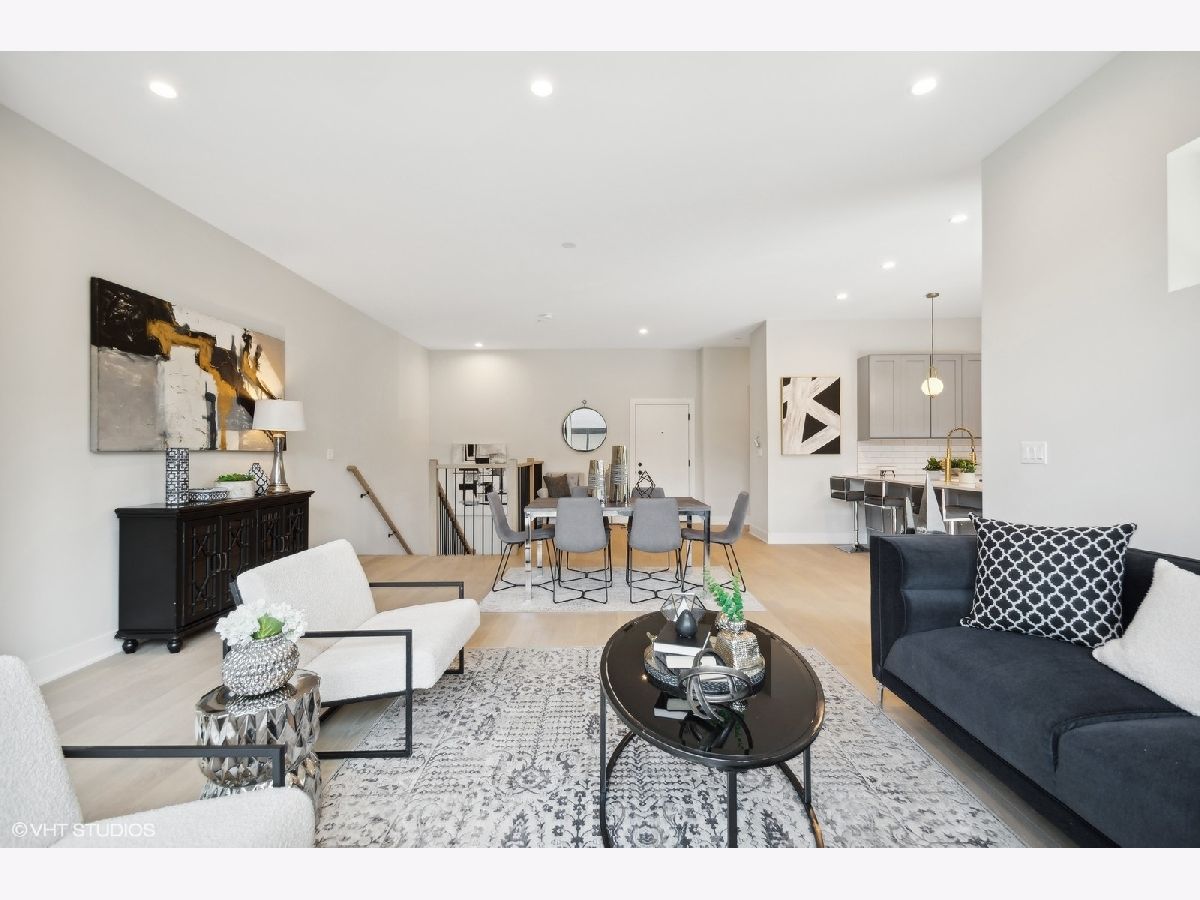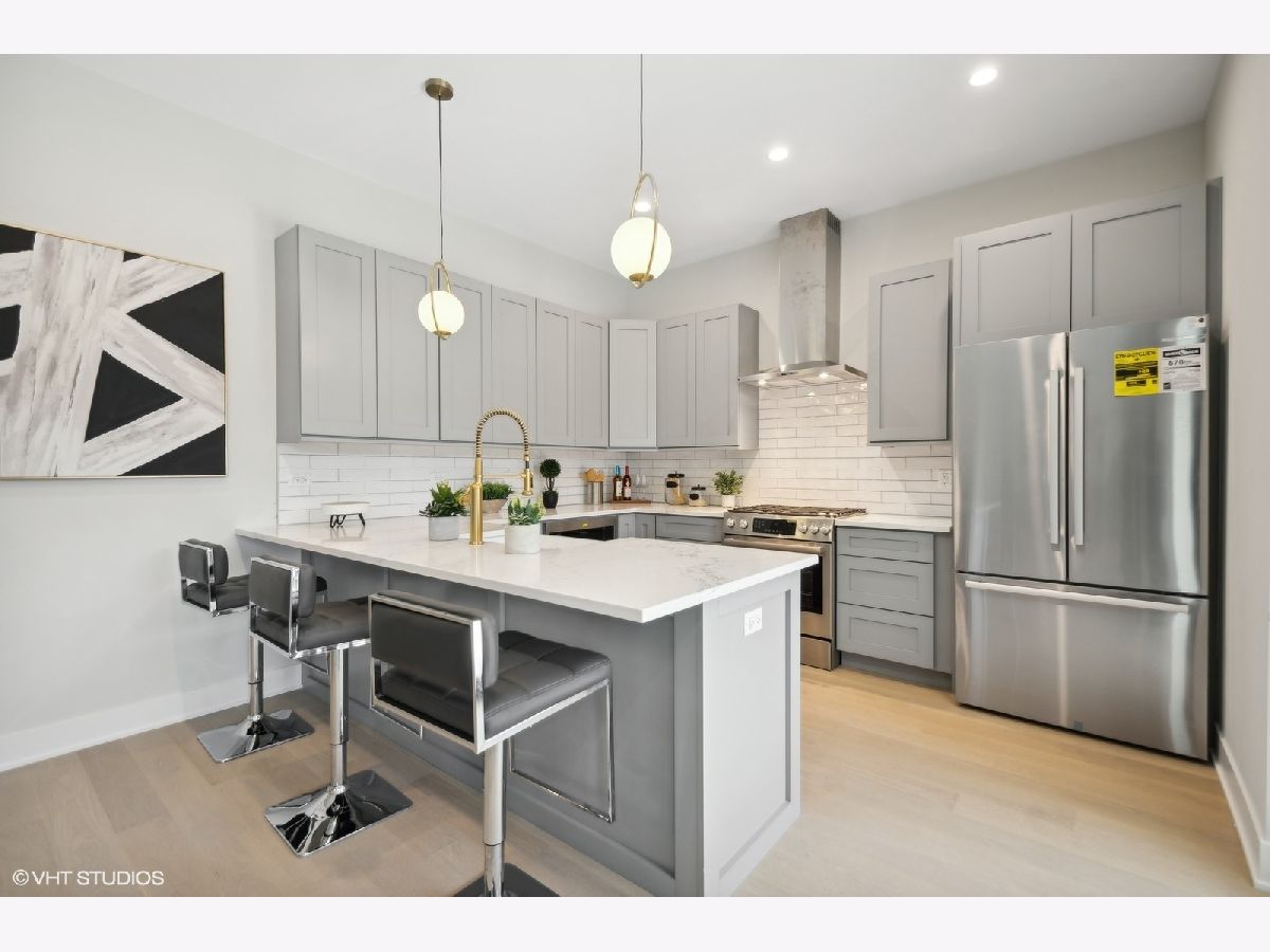 New construction duplex up condo in one of Chicago's hottest neighborhoods. Located in prime Logan Square, this duplex down features an extra wide floor plan with custom kitchen, large peninsula for entertaining, and tons of storage. Luxury finishes include quartz countertops with subway tile backsplash, under cabinet LED lighting, high-end Bosch appliance package, 10' ceilings, fireplace, and light oak flooring throughout main level. All three bedrooms on upper level including large primary suite with walk in closet, ensuite bathroom with double sink vanity, huge rainfall shower and bench. Outdoor space includes a covered deck and private rooftop deck finished in porcelain pavers. One garage parking spot included in the price. ACTUAL PHOTOS OF MODEL UNIT.
