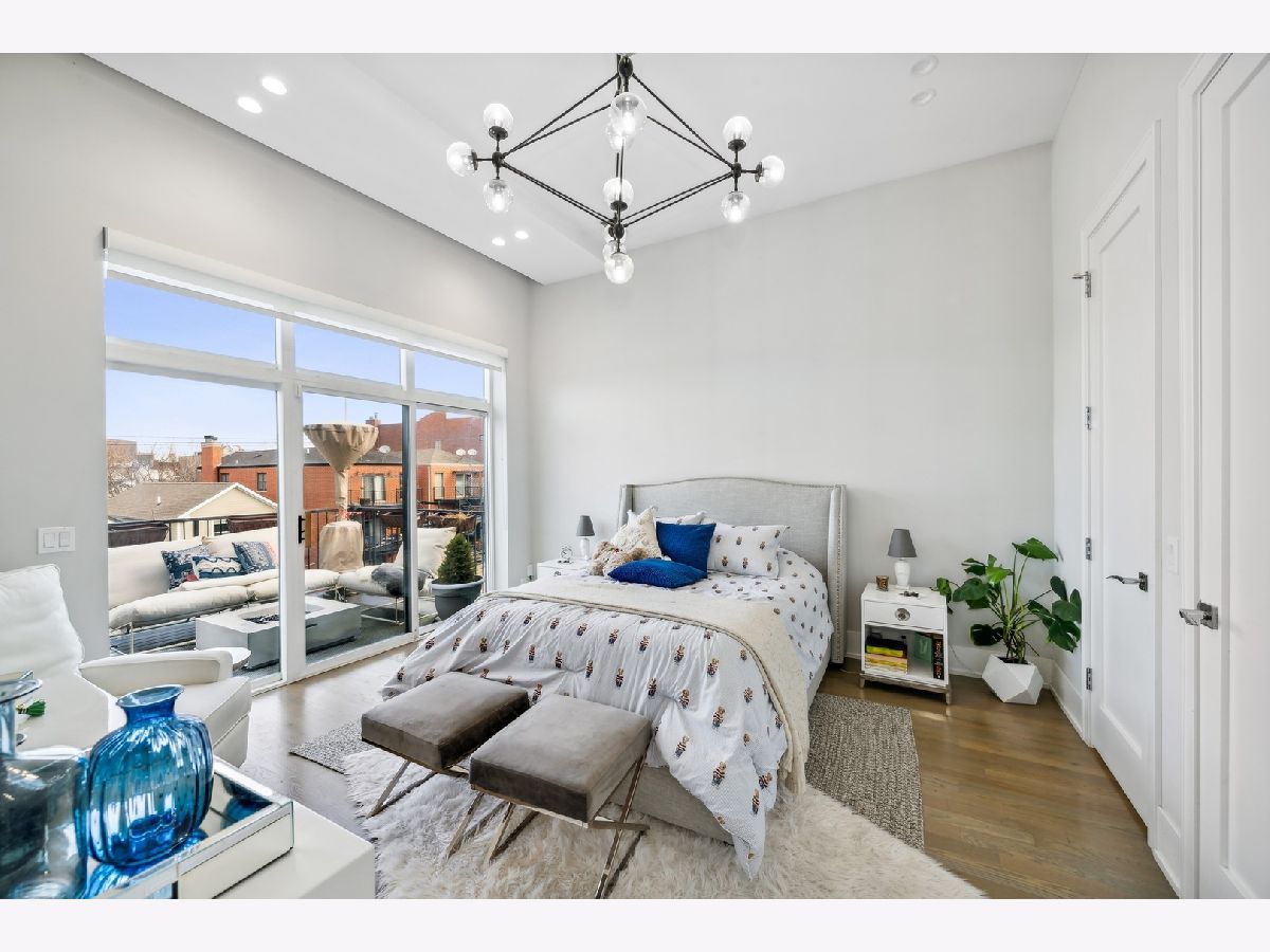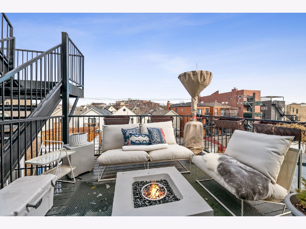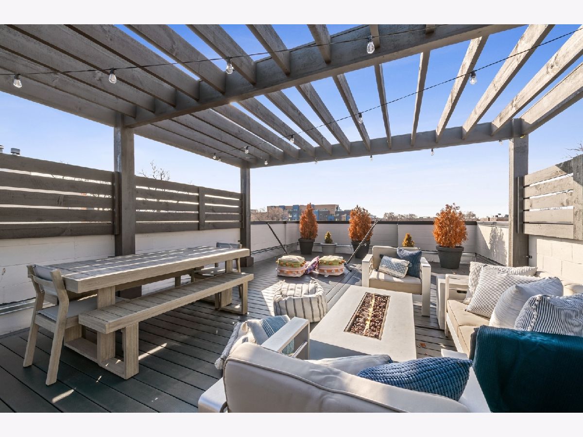 Newer construction penthouse condo in smaller 3 unit condo building. Unit features 2 bedrooms and 2 full baths. Custom build kitchen with Bosch appliance package included. Beautiful gas fireplace wired for a flat screen tv and speakers. Large master suite with full bath and walk-in closet. Master Bath with dual vanity and radiant heat floor. This unit comes with 1 parking spot and large storage locker in the lower level. Interior staircase leading to a private roof deck oasis with excellent views of the Chicago skyline. Private balcony of master bedroom. Additional features include floor to ceiling windows in the living room, beautiful Italian light fixtures in living room, stairs and master bedroom. Roof deck includes a 21x21ft wooden pergola, outdoor speakers, outdoor Gas and electric outlets. Doghouse has a full wet bar with wine fridge. A short walk to the CTA Blue Line and surrounded by great nightlife and dining options. Check it out today!