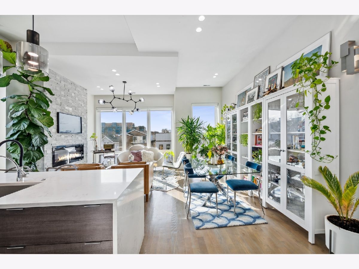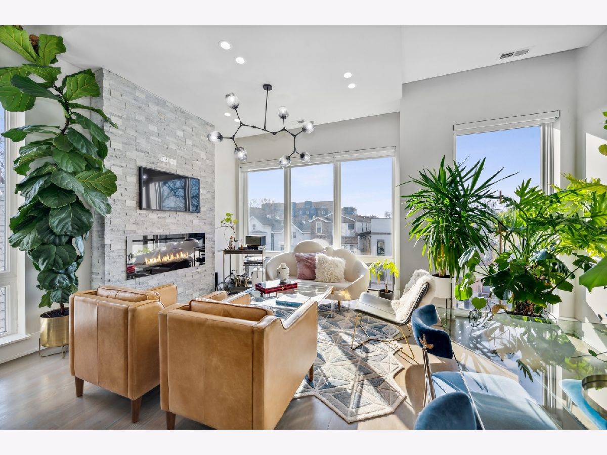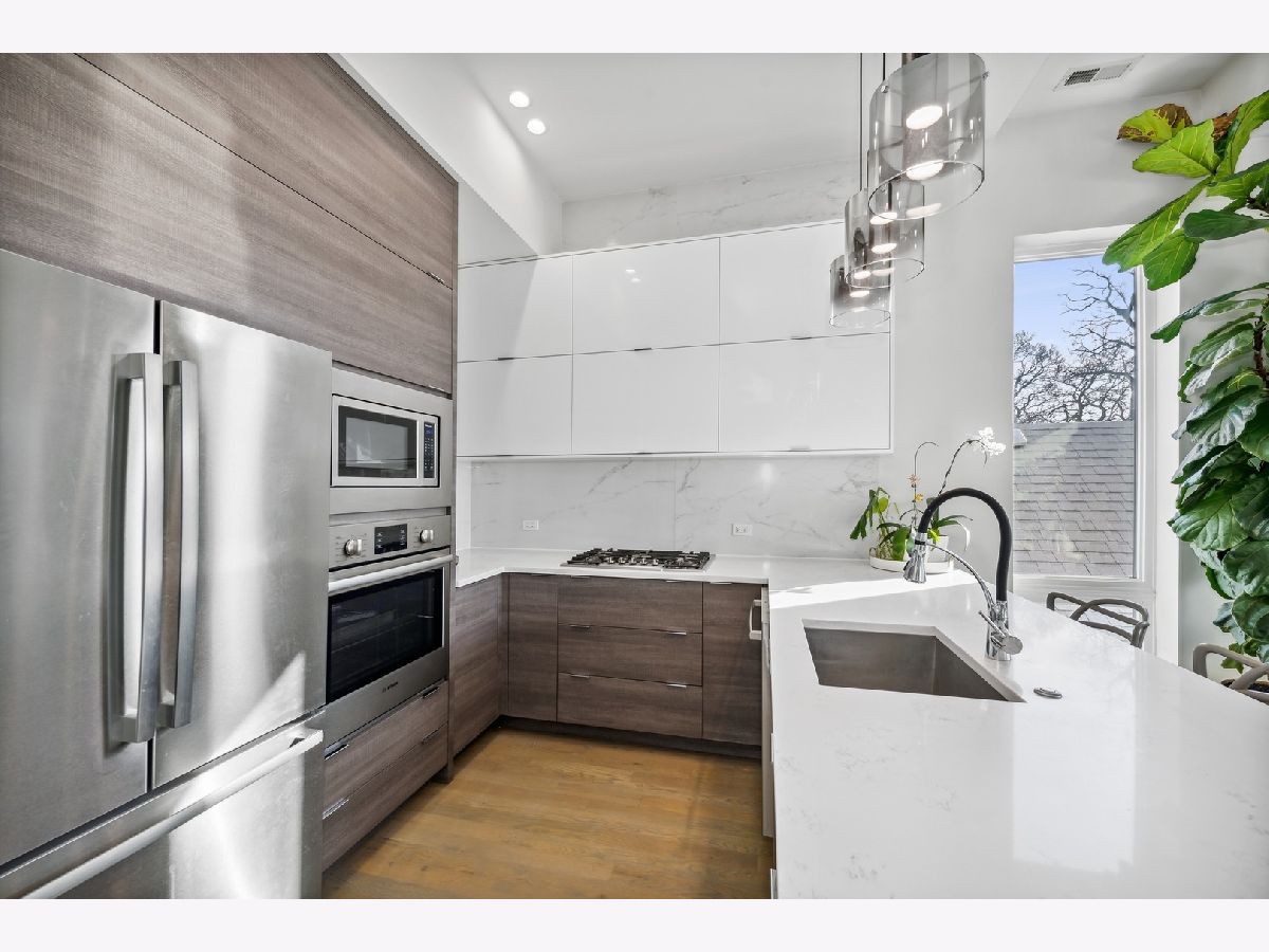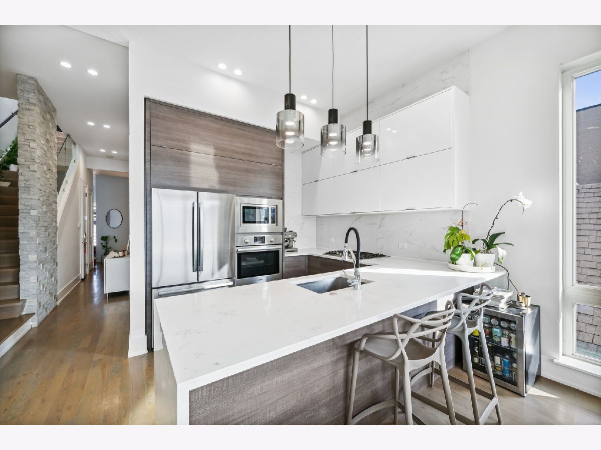 Newer construction penthouse condo in smaller 3 unit condo building. Unit features 2 bedrooms and 2 full baths. Custom build kitchen with Bosch appliance package included. Beautiful gas fireplace wired for a flat screen tv and speakers. Large master suite with full bath and walk-in closet. Master Bath with dual vanity and radiant heat floor. This unit comes with 1 parking spot and large storage locker in the lower level. Interior staircase leading to a private roof deck oasis with excellent views of the Chicago skyline. Private balcony of master bedroom. Additional features include floor to ceiling windows in the living room, beautiful Italian light fixtures in living room, stairs and master bedroom. Roof deck includes a 21x21ft wooden pergola, outdoor speakers, outdoor Gas and electric outlets. Doghouse has a full wet bar with wine fridge. A short walk to the CTA Blue Line and surrounded by great nightlife and dining options. Check it out today!