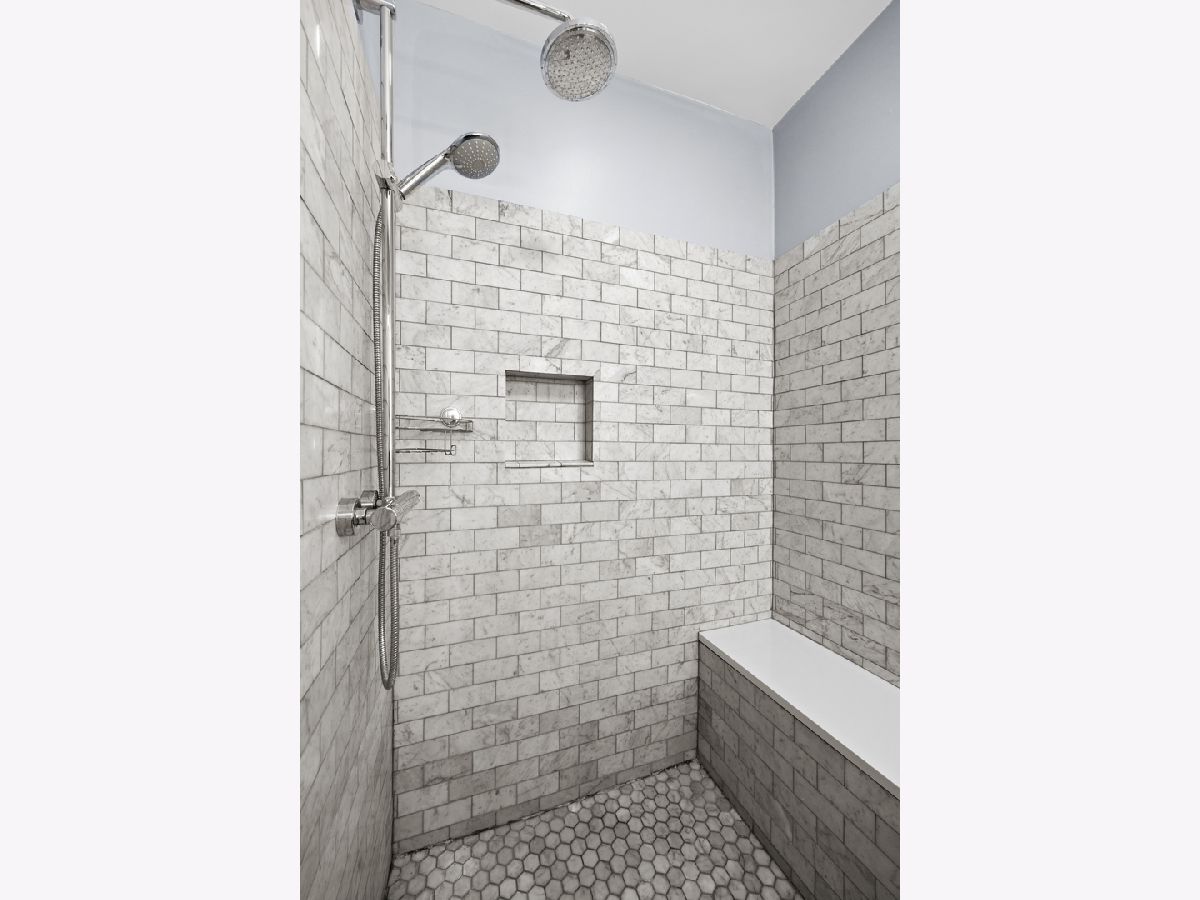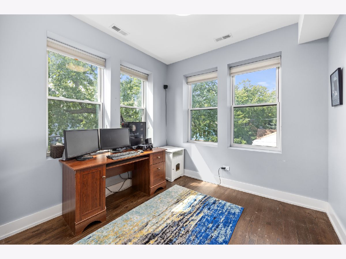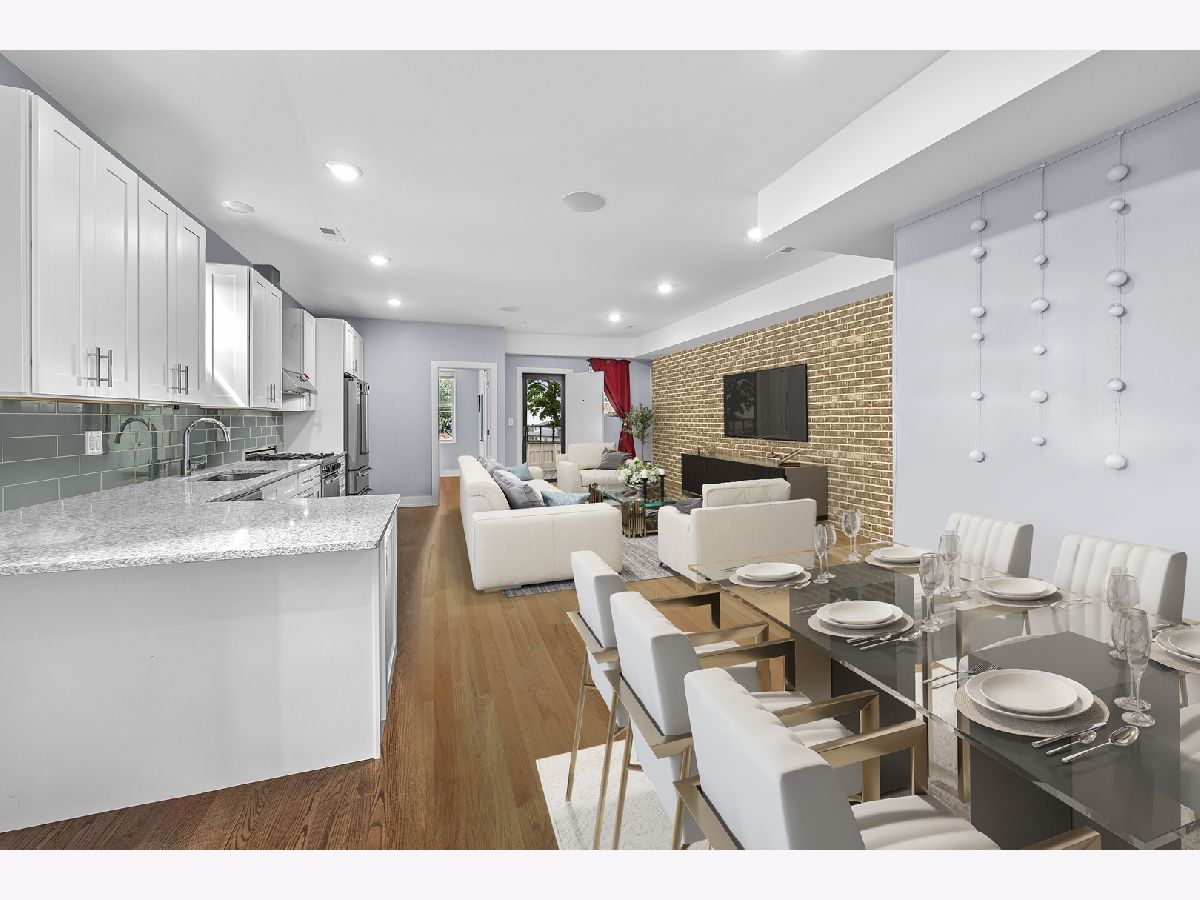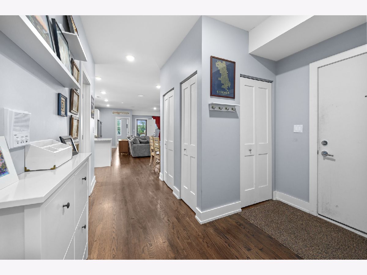 Welcome to 2430 N Washentaw Avenue Unit 3S, a stunning 3-bedroom, 2-bathroom penthouse nestled in the heart of East Logan Square. Located on a quiet, tree-lined one-way street just steps from the Boulevard and the brand-new field house and park, this home offers the perfect blend of charm, character, and modern luxury. Step into an expansive open-concept layout with 9' ceilings, showcasing exposed brick walls and rich dark hardwood flooring throughout. The oversized living room seamlessly flows into a beautifully appointed white kitchen featuring shaker cabinetry with soft-close drawers, gleaming quartz countertops, a stylish tiled backsplash, and premium Bertazzoni stainless steel appliances. A convenient peninsula offers additional seating for casual dining.The primary suite is a true retreat with large bay windows, a custom walk-in closet, and an ensuite bathroom boasting a double vanity and an oversized shower adorned with elegant white and gray marble tiles. The second bedroom features generous space and a well-organized closet, while the third bedroom offers a versatile layout, ideal for a home office, nursery, or guest room.Step outside onto your private deck, perfect for entertaining or relaxing after a long day. This unit also includes one garage parking space and a designated storage area in the shared basement.With LED lighting, Energy Star windows, Grohe & Kohler plumbing fixtures, and high-end finishes throughout, this penthouse offers style and comfort. Located just a short walk from the 'L', this home combines an incredible location with unmatched value. Don't miss your chance to own this chic penthouse in one of the most sought-after neighborhoods in Chicago.