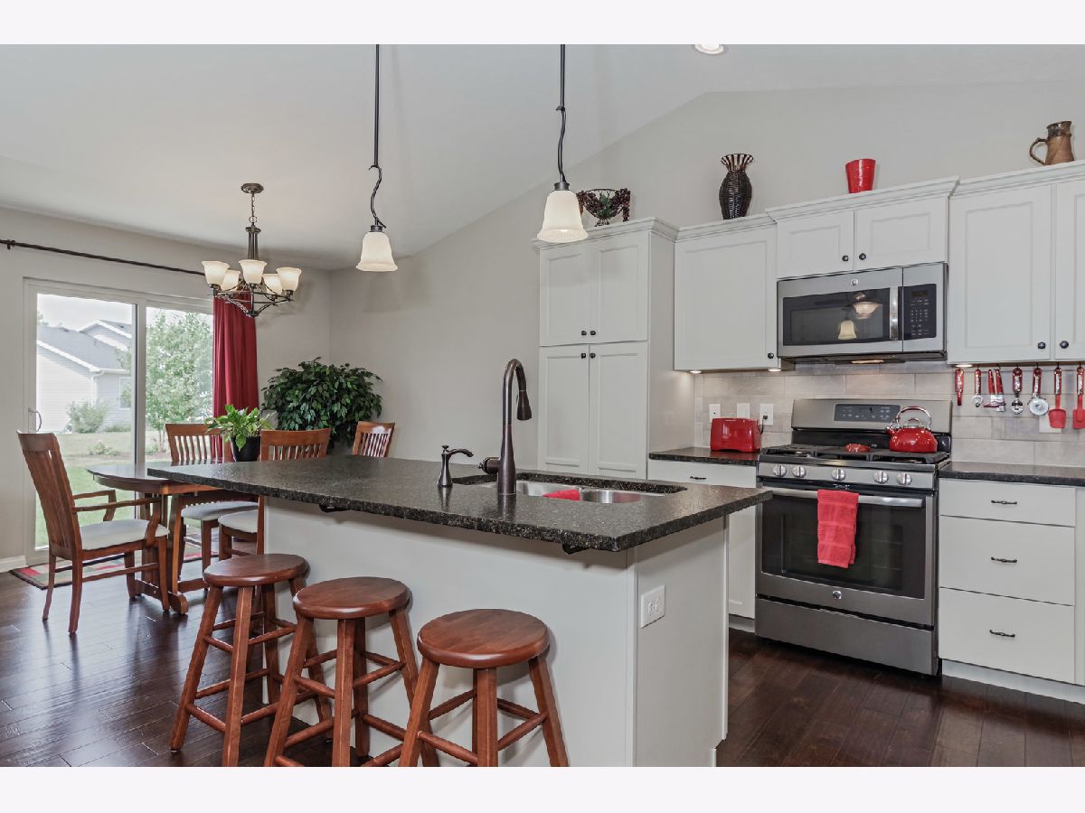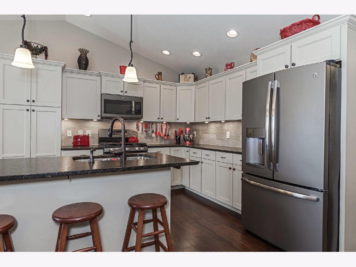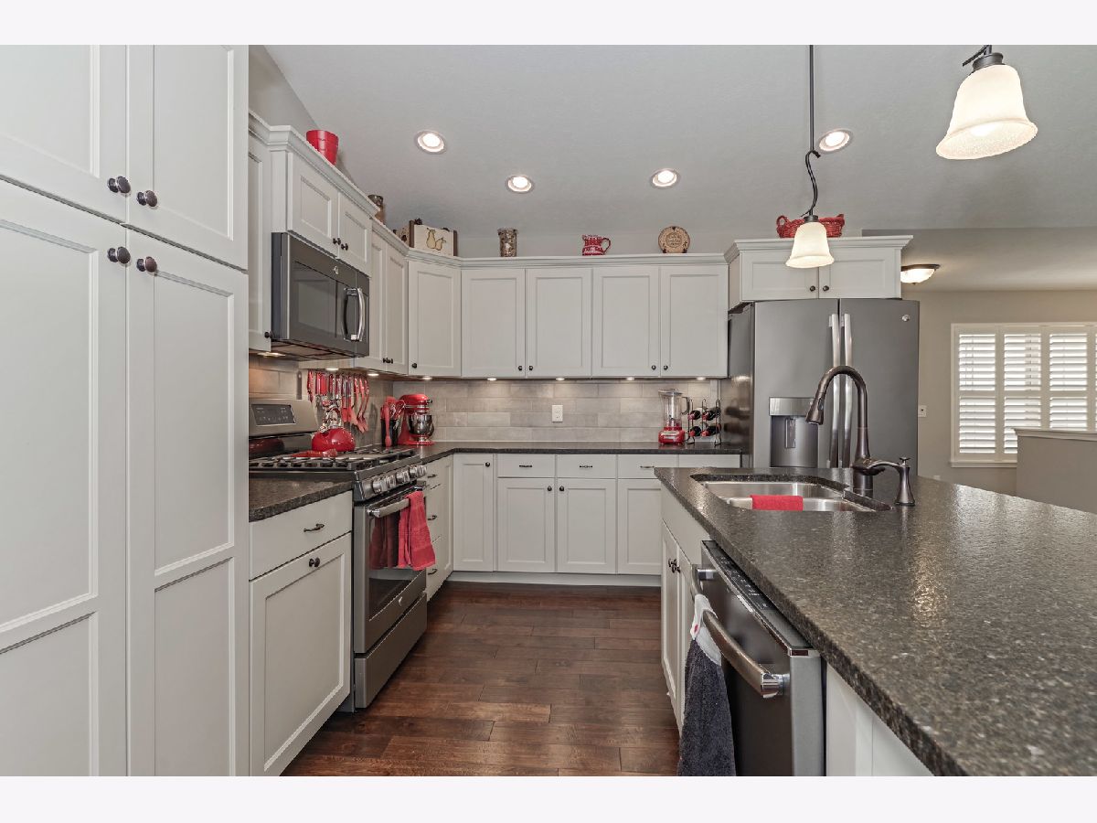 Beautiful split ranch with open floor plan and 3 Car Garage w/built in cabinets. Plantation shutters on main floor windows. Irrigation added to the yard and amazing hardscape landscaping around perimeter. Family Room and Kitchen with hardwood floors. Updated Kitchen with granite countertops, tiled backsplash, beautiful cabinets and larger center island added. Master suite with 2 sink vanity, shower and walk in closet. 2 additional bedrooms and a full bath. Laundry room with added sink and backsplash. Mudroom with built in lockers and closet. Open stairway to basement with egress window, rough in for bath and built in shelving. This is a must see home!!!