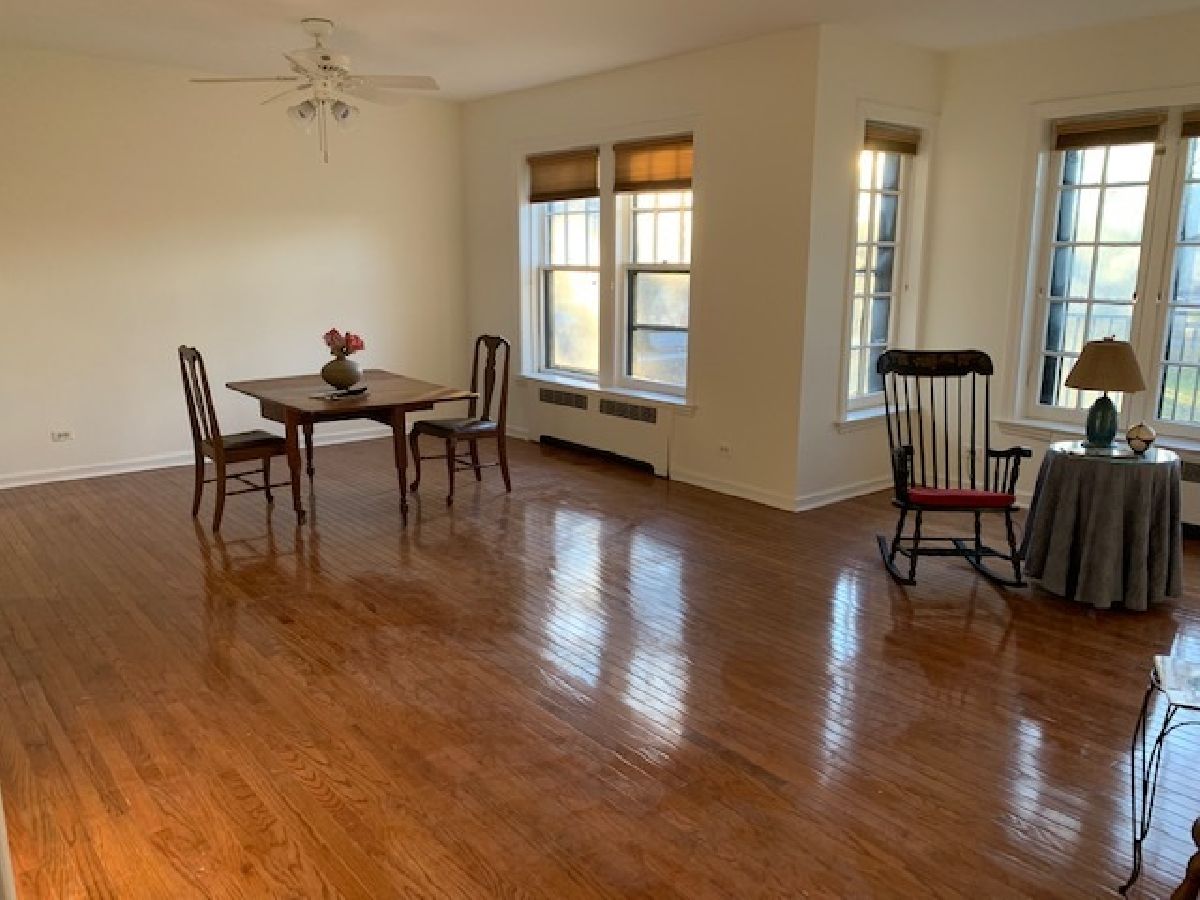 Country living in the city! You won't believe this wonderful, unique 2 level (both above ground) condo overlooking and connected to wonderful Indian Boundary Park. Beautiful park views from living room, dining room and 2 bedrooms. Two porches: off kitchen and bedroom. Can't be duplicated. Huge kitchen with new windows overlooking fenced yard. In unit washer and dryer. Two storage units. Separate bike storage room. Community room in lower level. Bus service outside door. "L" service near by. Indian Boundary Park has 4 separate tennis courts, a wonderful playground with sprinklers, a classic field house with many programs for all ages and a so much more.
