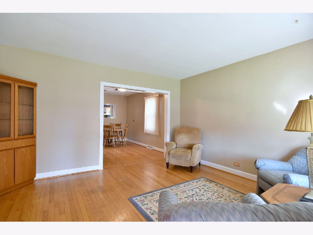 Welcomed by the wide, tree lined street, and brick paver walkway, this wonderful home invites you inside as it awaits its new owner. A generous sized front yard provides a wonderful view from the living room windows, while natural light shows off the hardwood floors. The dining room can be a great space for meals and entertaining, and may be the heart of the home with its open flow between rooms and a pass through kitchen opening. Nearby are two nice sized bedrooms and a full bathroom with walk in style tub, installed in 2016. At the back of the house you'll find a third bedroom, and a large eat in kitchen that features an abundance of cabinets and countertops and is fully functional. The partially finished basement offers a full bathroom, possible family room that can add to living space, and a dedicated laundry area with plenty of room for storage. Back through the kitchen and out the door you'll step onto the deck that is perfect for morning coffee, afternoon lunch, grilling dinner, or hanging out with family and friends. You will enjoy the retractable overhead shade for convenient sun protection. The cute backyard is adorned with brick pavers, currently features a ramp from the deck, has plenty of space for planting/gardening, and has a two car garage. Roof 2017. Furnace and air conditioning 2011. Walk to Rhodes Elementary. Property sold AS-IS.