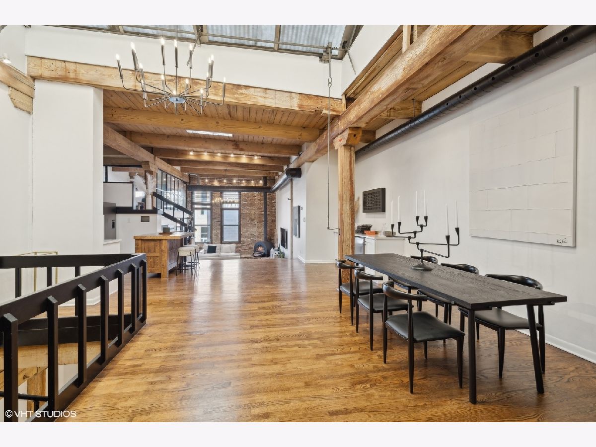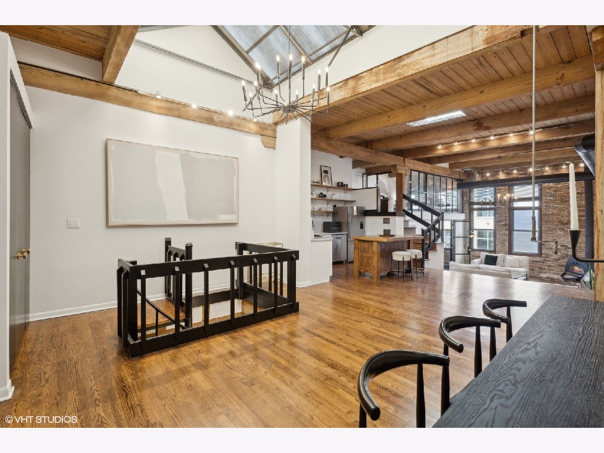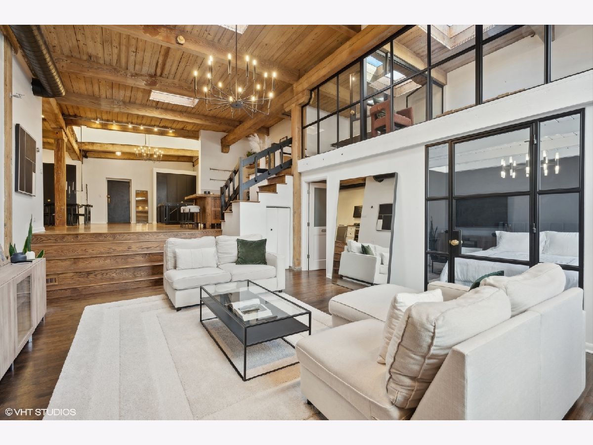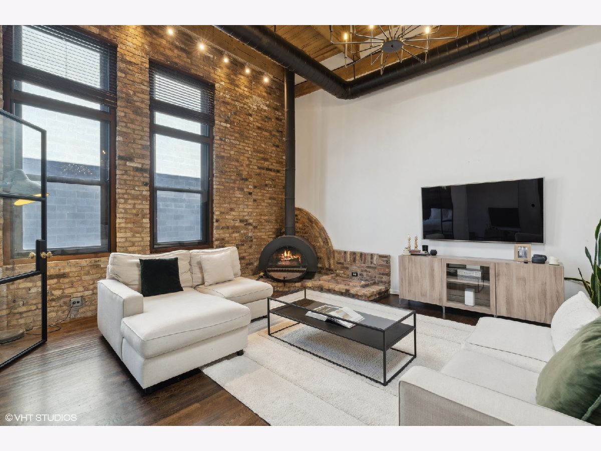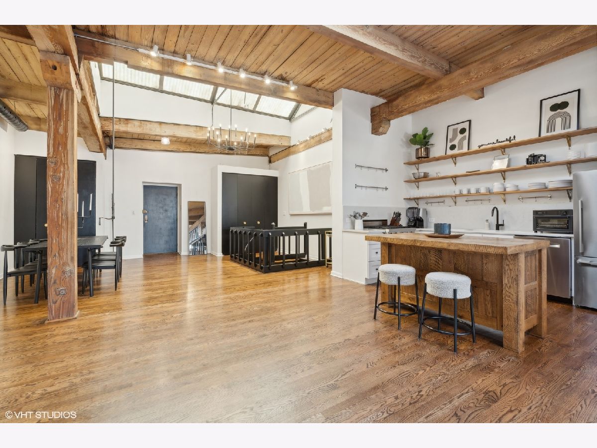 Sleek. Modern. Warm. One of a kind. Discover this top-floor duplex timber loft in Lincoln Park-a true gem that's as rare as it is remarkable. Flooded with light and brimming with character, this 2-bedroom, 2-bath plus lofted flex space embodies both style and warmth, perfect for unwinding or entertaining. Step into a recently renovated kitchen that pairs the elegance of quartz counters and stylish light fixtures with high-end, professional-grade appliances, including a Viking range. The open layout flows effortlessly into a stylish bar area with a wine fridge, framed by exposed brick and immense skylights, flooding the home with natural light. The perfect place to display your art collection. Newer hardwood floors on the lower level add warmth, while the wood-burning fireplace enhances the home's cozy yet chic vibe. This multi level space offers three different levels of living. A glass-and-steel-enclosed lofted space looks out over the main floor's living, dining and kitchen. A second bedroom is adjacent to the living room and a beautifully updated bathroom with chic subway tile, trough sink and glass enclosed shower. A spacious primary suite is located on the "ground" floor, accessed within the unit from a spiral staircase. Laundry is also conveniently offered on this level. Soundproofed windows, smart lighting, and a Nest thermostat provide seamless modern comfort. Step outside to a shared rooftop deck with seating and a grill for those stunning city views. Attached EV-ready garage parking and storage closet are included, completing this one-of-a-kind loft experience. This is Lincoln Park living at its best- with steps to trendy dining on Armitage, shopping on Lincoln and the train at Fullerton. The loft offers both a convenient and calming retreat from city living. You have to see it for yourself.