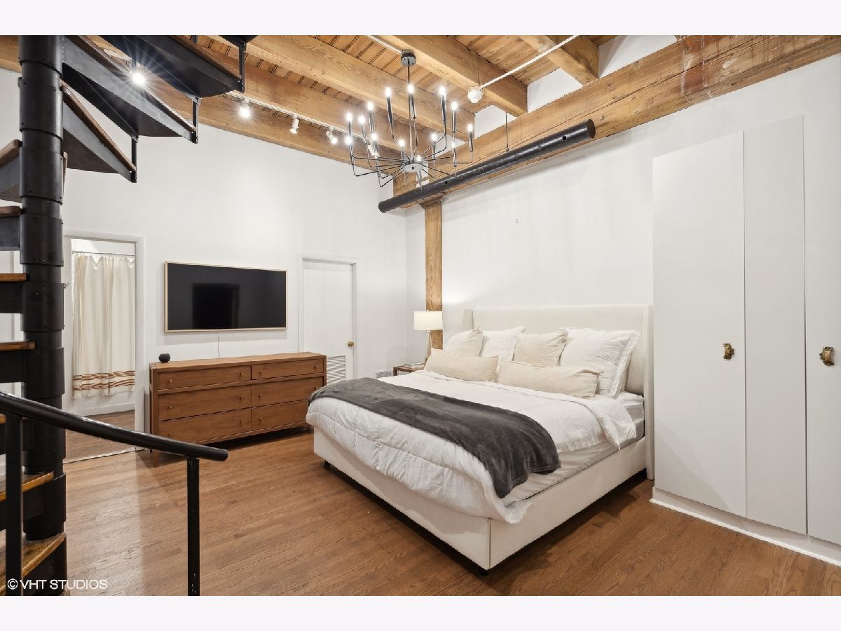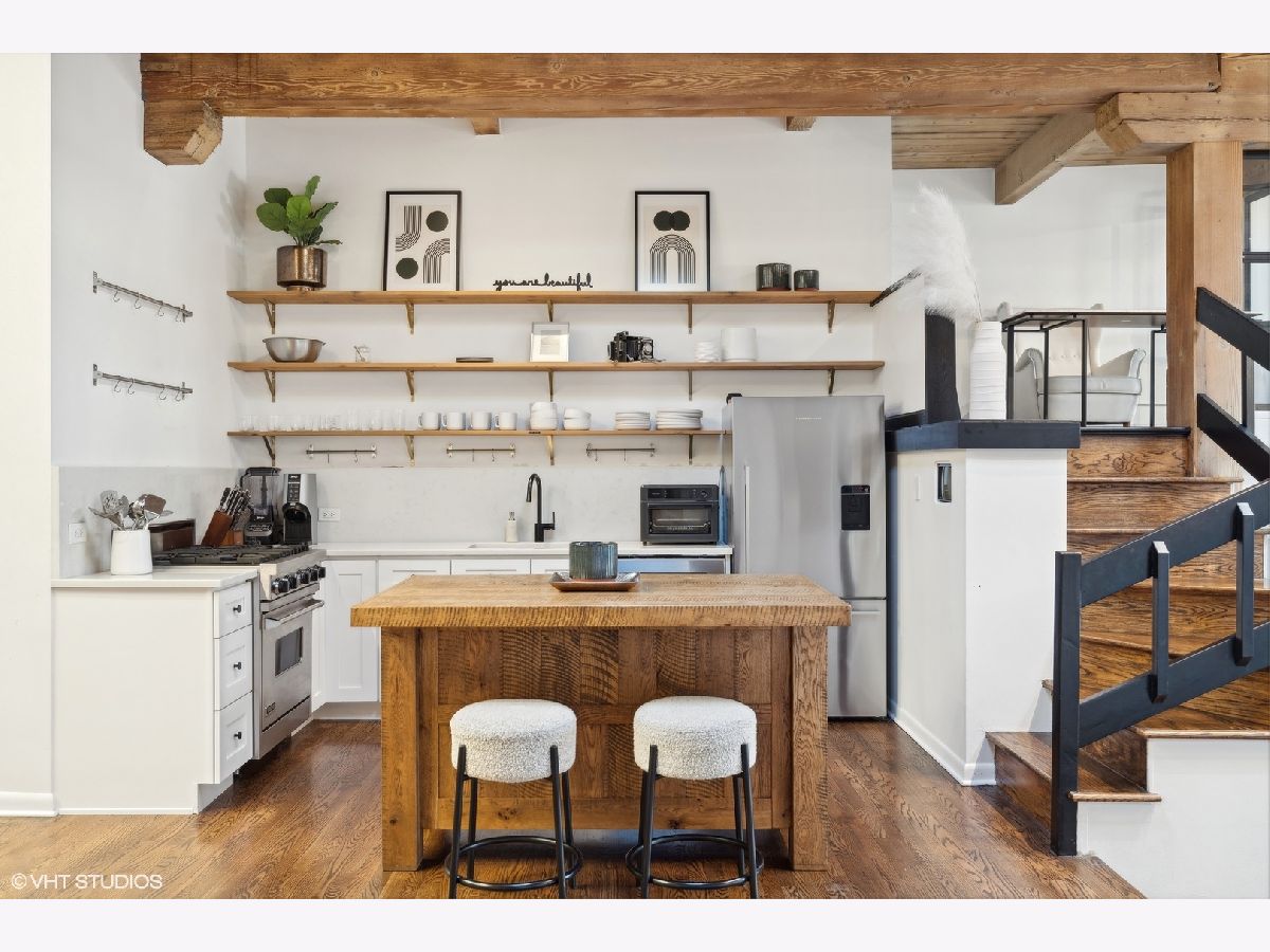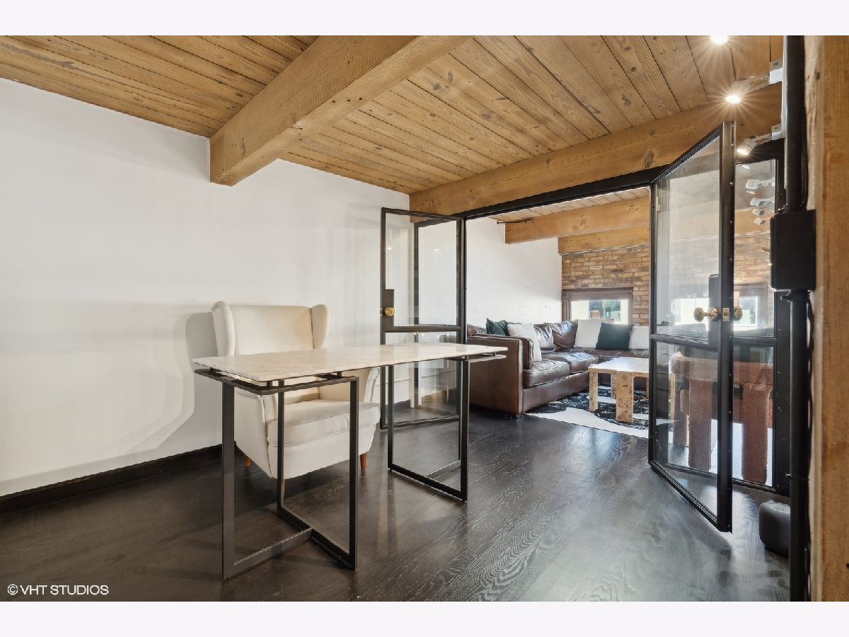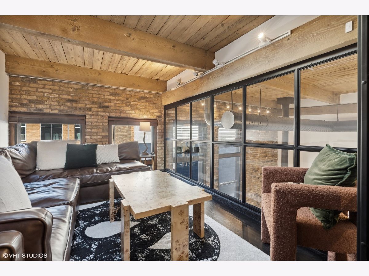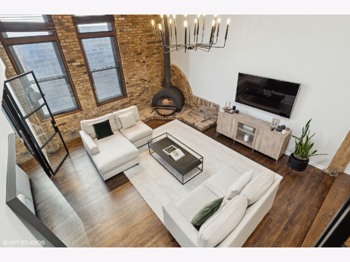 Sleek. Modern. Warm. One of a kind. Discover this top-floor duplex timber loft in Lincoln Park-a true gem that's as rare as it is remarkable. Flooded with light and brimming with character, this 2-bedroom, 2-bath plus lofted flex space embodies both style and warmth, perfect for unwinding or entertaining. Step into a recently renovated kitchen that pairs the elegance of quartz counters and stylish light fixtures with high-end, professional-grade appliances, including a Viking range. The open layout flows effortlessly into a stylish bar area with a wine fridge, framed by exposed brick and immense skylights, flooding the home with natural light. The perfect place to display your art collection. Newer hardwood floors on the lower level add warmth, while the wood-burning fireplace enhances the home's cozy yet chic vibe. This multi level space offers three different levels of living. A glass-and-steel-enclosed lofted space looks out over the main floor's living, dining and kitchen. A second bedroom is adjacent to the living room and a beautifully updated bathroom with chic subway tile, trough sink and glass enclosed shower. A spacious primary suite is located on the "ground" floor, accessed within the unit from a spiral staircase. Laundry is also conveniently offered on this level. Soundproofed windows, smart lighting, and a Nest thermostat provide seamless modern comfort. Step outside to a shared rooftop deck with seating and a grill for those stunning city views. Attached EV-ready garage parking and storage closet are included, completing this one-of-a-kind loft experience. This is Lincoln Park living at its best- with steps to trendy dining on Armitage, shopping on Lincoln and the train at Fullerton. The loft offers both a convenient and calming retreat from city living. You have to see it for yourself.