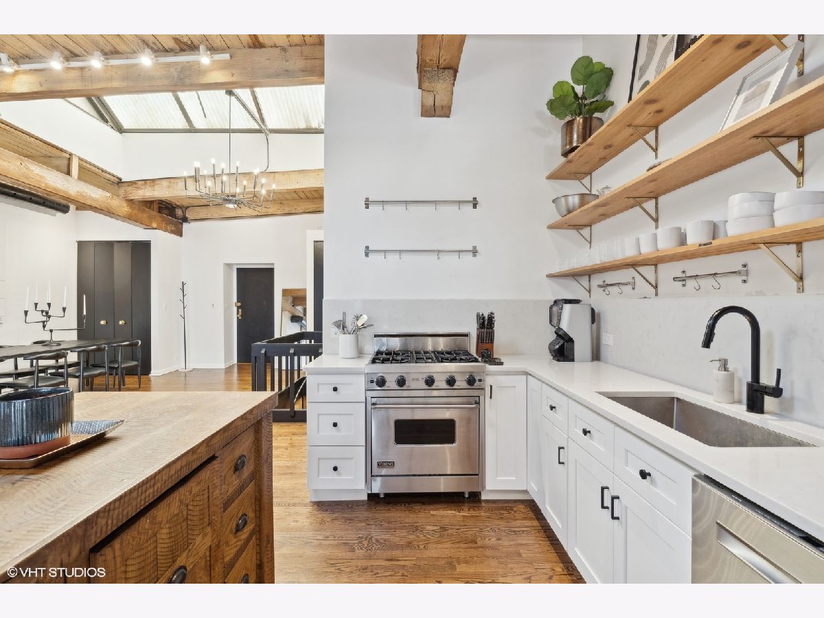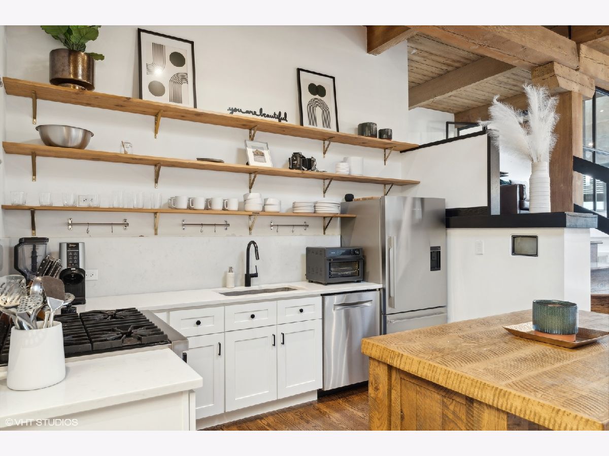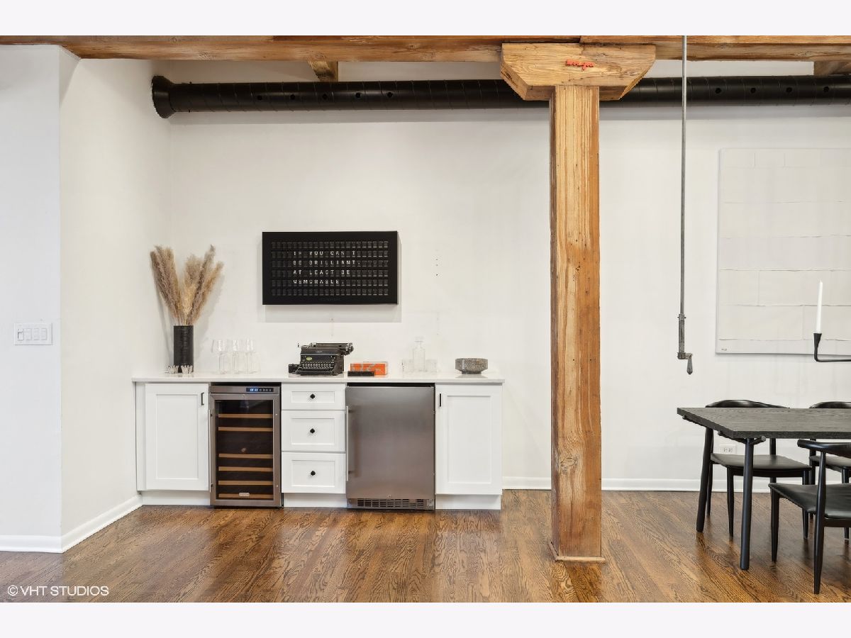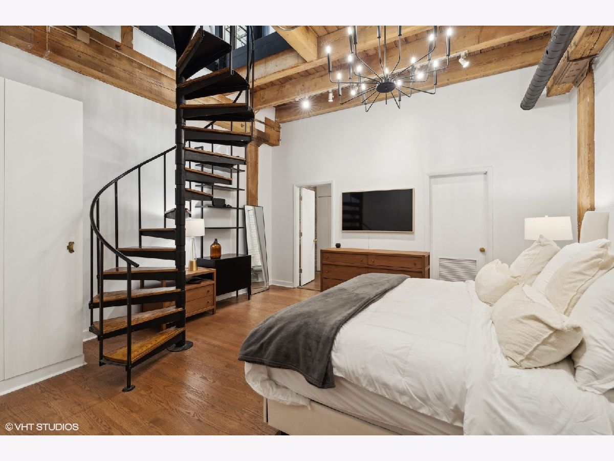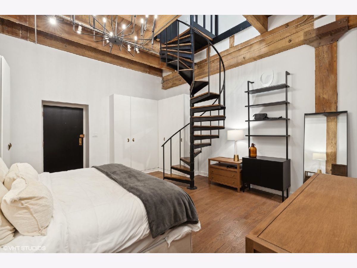 Sleek. Modern. Warm. One of a kind. Discover this top-floor duplex timber loft in Lincoln Park-a true gem that's as rare as it is remarkable. Flooded with light and brimming with character, this 2-bedroom, 2-bath plus lofted flex space embodies both style and warmth, perfect for unwinding or entertaining. Step into a recently renovated kitchen that pairs the elegance of quartz counters and stylish light fixtures with high-end, professional-grade appliances, including a Viking range. The open layout flows effortlessly into a stylish bar area with a wine fridge, framed by exposed brick and immense skylights, flooding the home with natural light. The perfect place to display your art collection. Newer hardwood floors on the lower level add warmth, while the wood-burning fireplace enhances the home's cozy yet chic vibe. This multi level space offers three different levels of living. A glass-and-steel-enclosed lofted space looks out over the main floor's living, dining and kitchen. A second bedroom is adjacent to the living room and a beautifully updated bathroom with chic subway tile, trough sink and glass enclosed shower. A spacious primary suite is located on the "ground" floor, accessed within the unit from a spiral staircase. Laundry is also conveniently offered on this level. Soundproofed windows, smart lighting, and a Nest thermostat provide seamless modern comfort. Step outside to a shared rooftop deck with seating and a grill for those stunning city views. Attached EV-ready garage parking and storage closet are included, completing this one-of-a-kind loft experience. This is Lincoln Park living at its best- with steps to trendy dining on Armitage, shopping on Lincoln and the train at Fullerton. The loft offers both a convenient and calming retreat from city living. You have to see it for yourself.