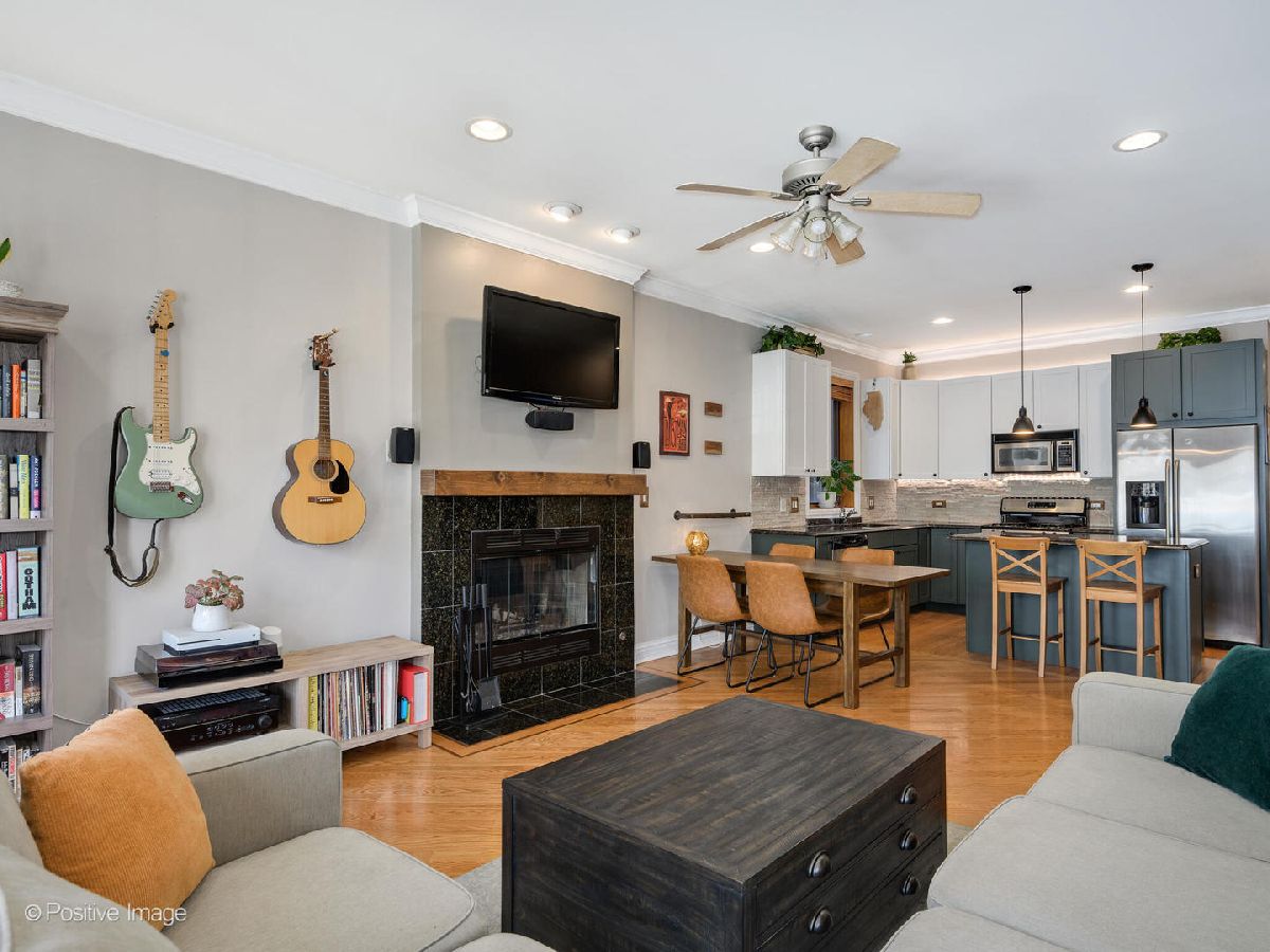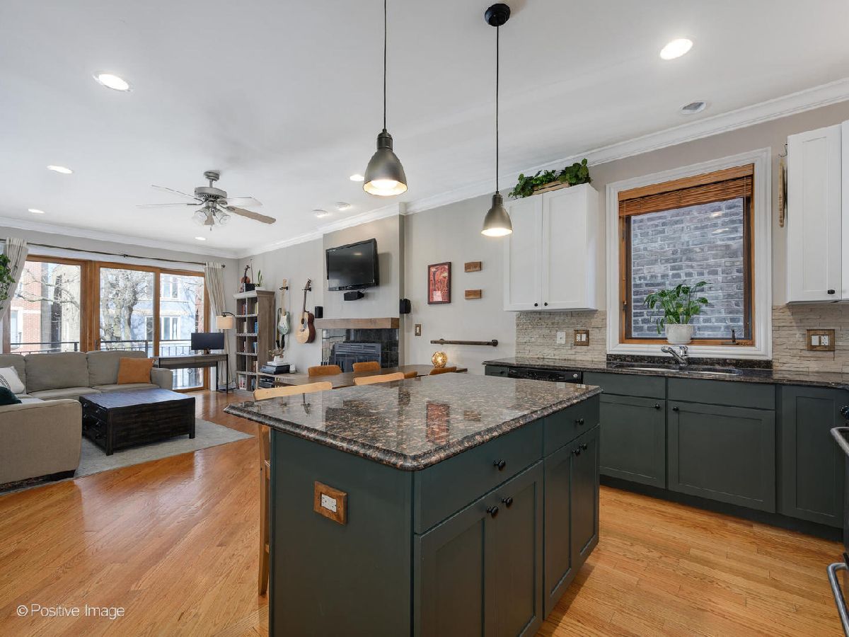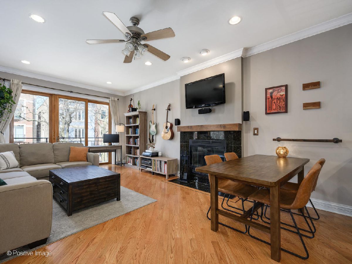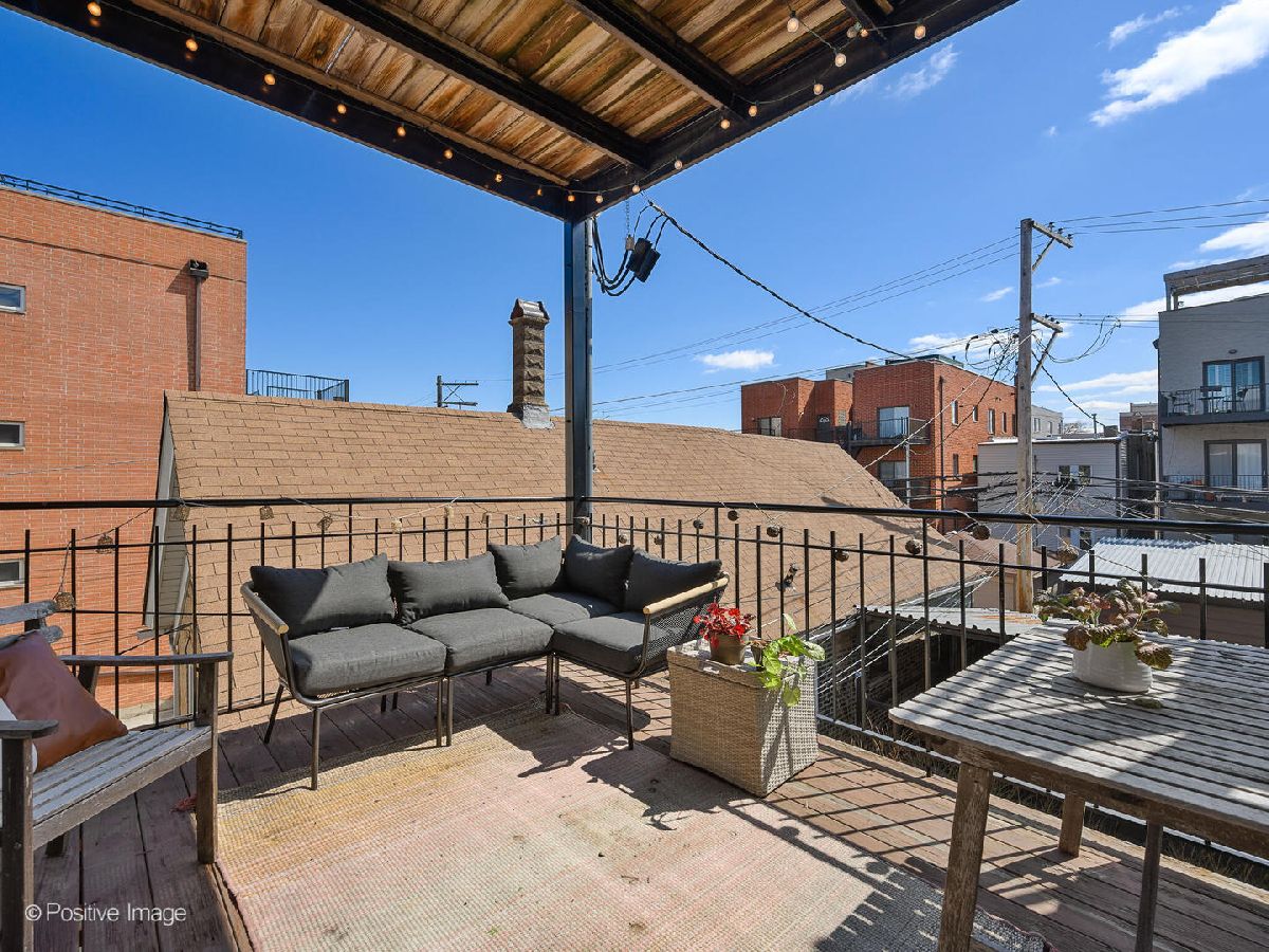 Move right in and start relaxing in this beautiful 2-bed, 2-bath home with huge covered back deck! The wide and bright totally open living and kitchen spaces are perfect for everyday living, and recently updated! In the living space find a full wall of glass doors leading to a front Juliette balcony, plus built-in storage and gas fireplace. There is also plenty of room for a designated dining area with seating for 6. Do not miss the recently updated kitchen featuring refinished cabinets, stainless steel appliances, gorgeous decorative backsplash, designer pendant lighting and island seating for 2. Head to the private primary suite to find a walk-in closet, plentiful natural light, dual vanities and separate soaking tub and shower. The second bedroom and bathroom are great flexible spaces. Do not miss the covered back deck with room for dining and lounging, and ready for summer fun! A new washer/dryer and newer roof and hot water heater are amazing added bonuses! Unbeatable Ukrainian Village location close to Smith Park, Humboldt Park, Mariano's and all the fun along Chicago Ave. 1 garage park space and storage unit included.