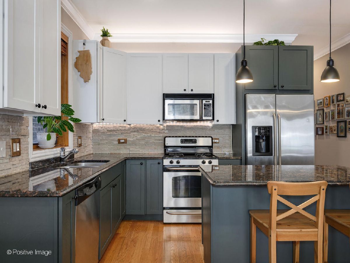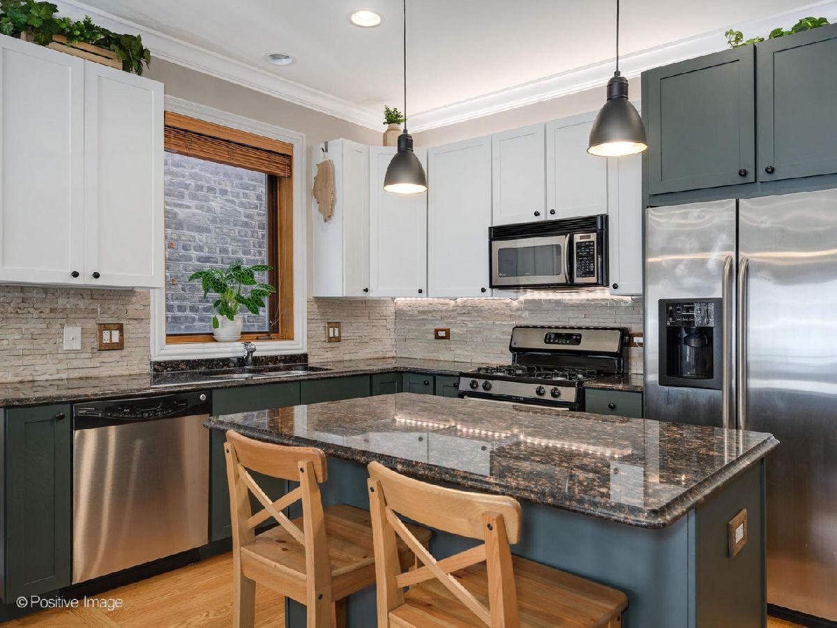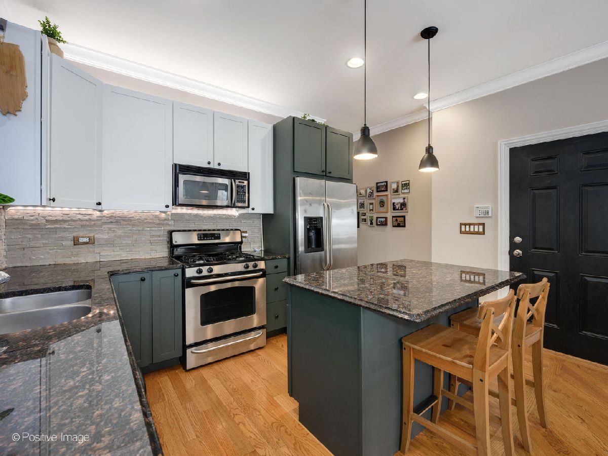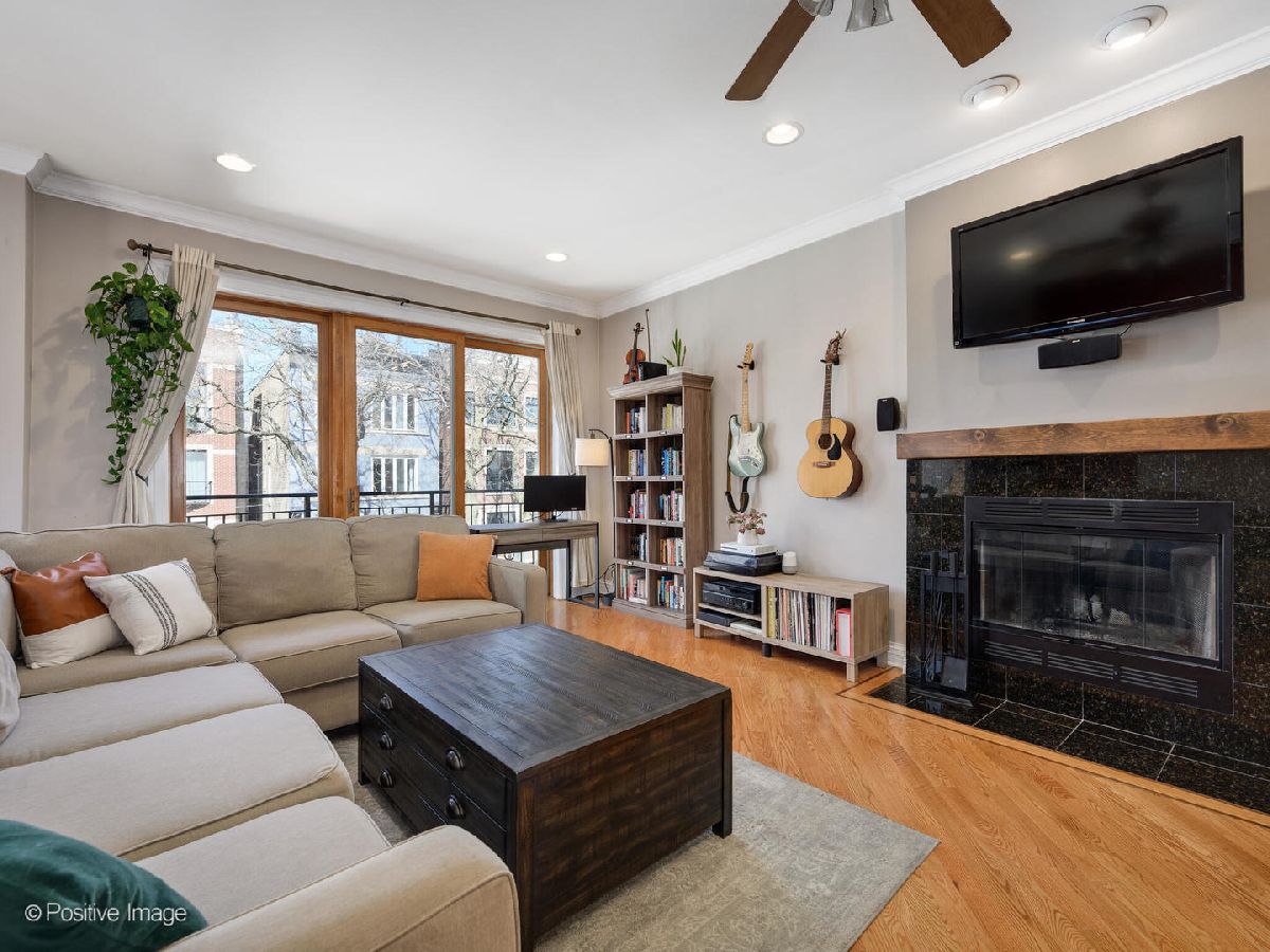 Move right in and start relaxing in this beautiful 2-bed, 2-bath home with huge covered back deck! The wide and bright totally open living and kitchen spaces are perfect for everyday living, and recently updated! In the living space find a full wall of glass doors leading to a front Juliette balcony, plus built-in storage and gas fireplace. There is also plenty of room for a designated dining area with seating for 6. Do not miss the recently updated kitchen featuring refinished cabinets, stainless steel appliances, gorgeous decorative backsplash, designer pendant lighting and island seating for 2. Head to the private primary suite to find a walk-in closet, plentiful natural light, dual vanities and separate soaking tub and shower. The second bedroom and bathroom are great flexible spaces. Do not miss the covered back deck with room for dining and lounging, and ready for summer fun! A new washer/dryer and newer roof and hot water heater are amazing added bonuses! Unbeatable Ukrainian Village location close to Smith Park, Humboldt Park, Mariano's and all the fun along Chicago Ave. 1 garage park space and storage unit included.