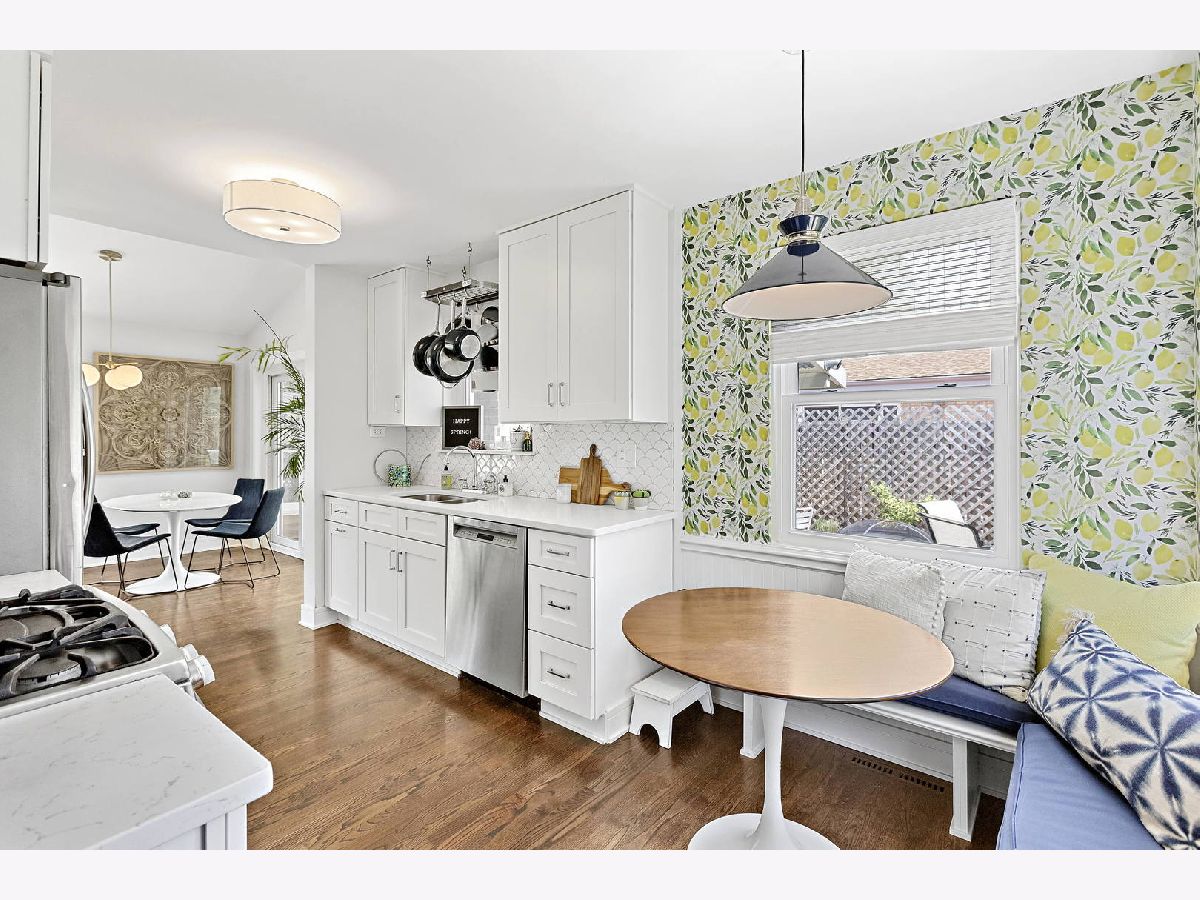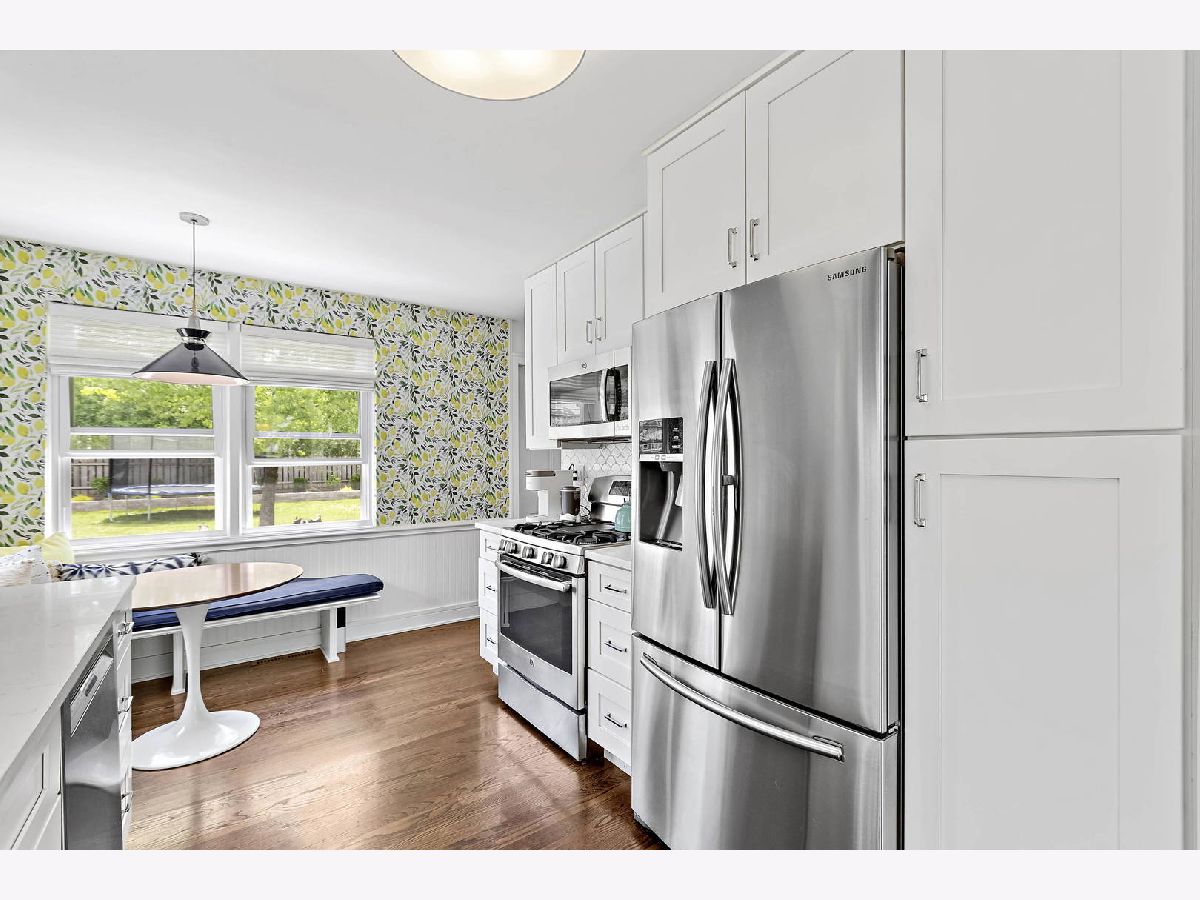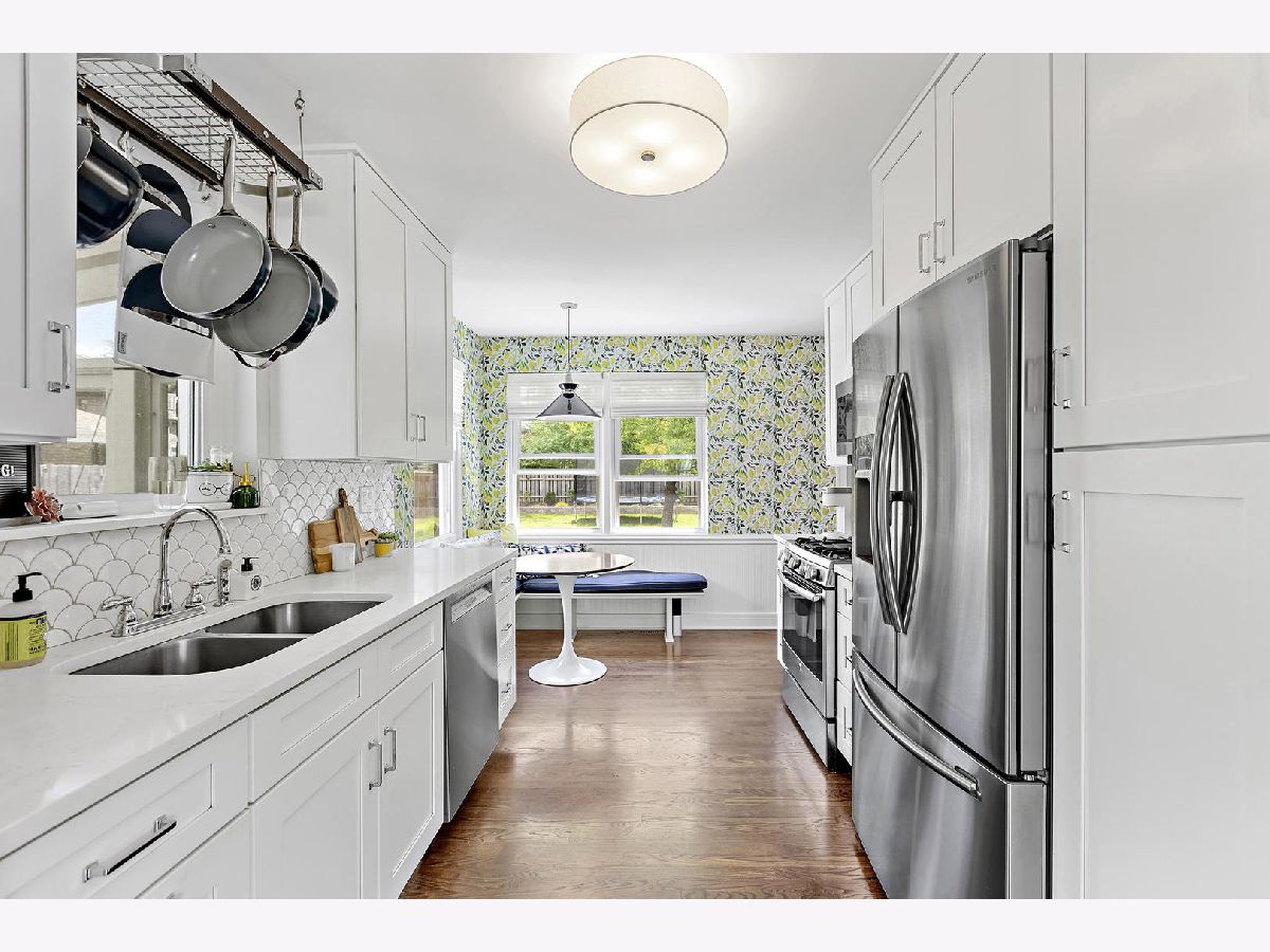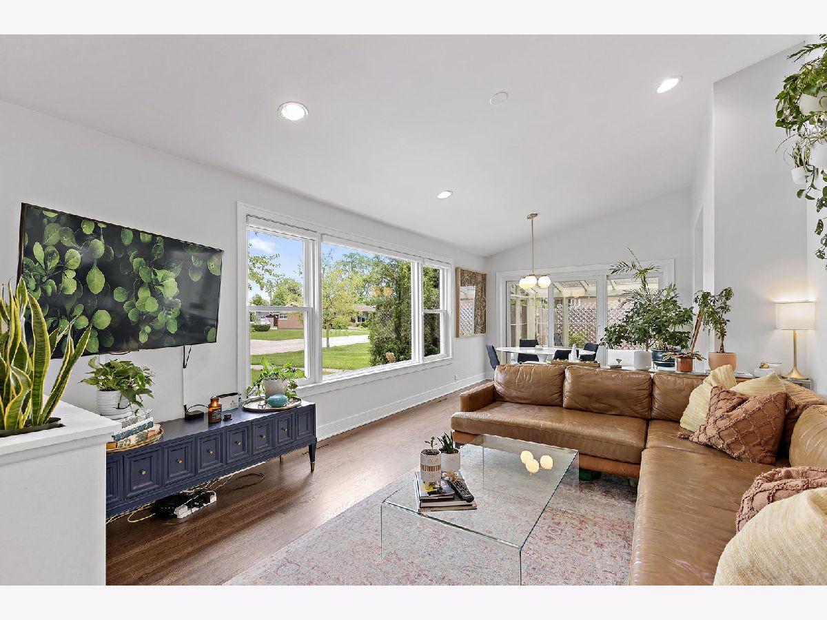 Click the virtual tour button for an immersive 3D tour of this professionally designed remodel in desirable Glenview with tons of thoughtful updates including new windows throughout. This spacious ranch home was redesigned in 2020 while enhancing the existing Mid Century Modern flair! Newly refinished hardwood flooring throughout the 1st floor ties the space together while dramatic vaulted ceilings in the living room and large windows throughout fill the space with natural light. Eat in kitchen has been completely redone with custom wood cabinetry, quartz countertops and unique tile backsplash. Cute built in bench seating underneath the corner window allows you to enjoy breakfast, lunch and dinner while overlooking your expansive yard. 2 Spacious bedrooms upstairs with ample storage. Former 3rd bedroom is now used as a giant mudroom, but could be converted back to a 3rd bedroom as the seller still has the door that was taken off. Entertain in the revamped screened in porch while enjoying the outdoors and keeping clear of mosquitoes and pests. Full basement offers tremendous square footage and has a semi finished guest room/office flex space. Solar Panels on roof help to defer utility costs, last years total bills from ComEd were $436 or $36.33/month average. Yard has been equipped with french drain system for rain management and to prevent flooding anywhere. Basement has sump pump with battery backup and overheard sewers. Sewer line from the house to the street was just replaced last month. Huge 2 car garage for parking and storage. Fully fenced in yard keep the pups and little ones corralled. Prepare to be impressed!