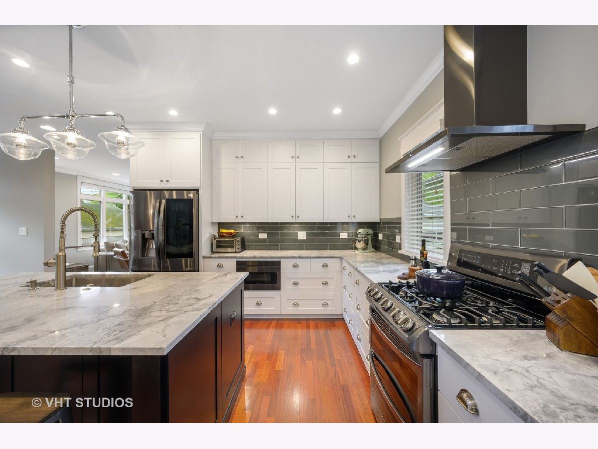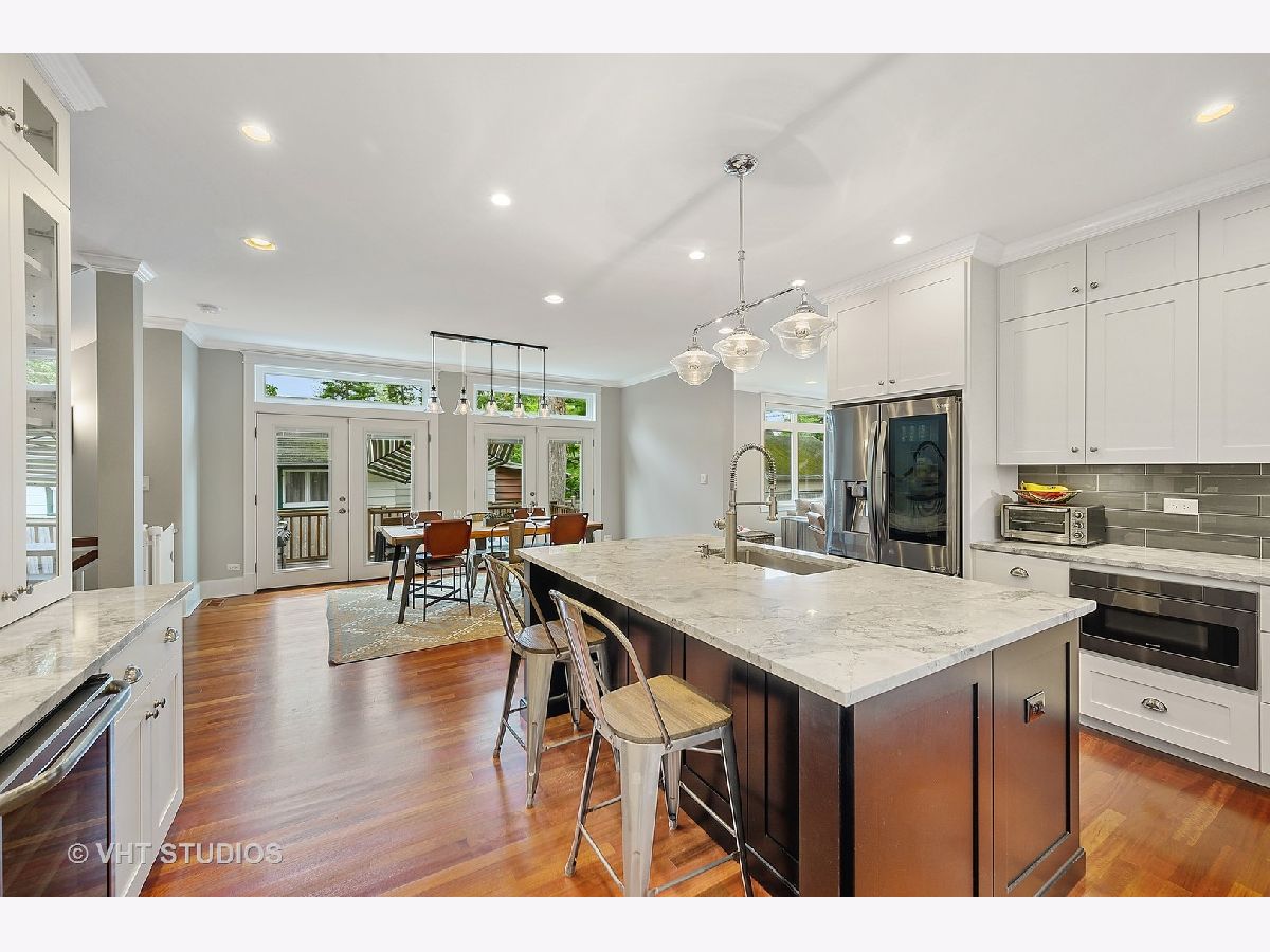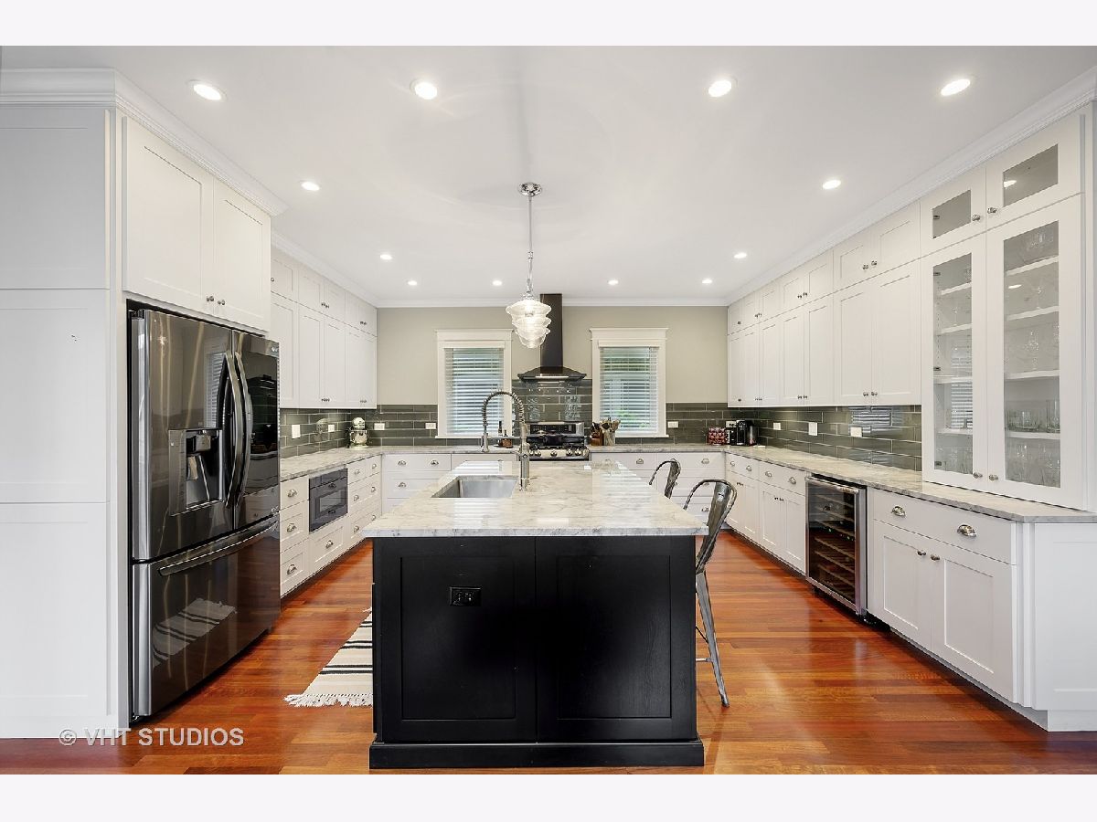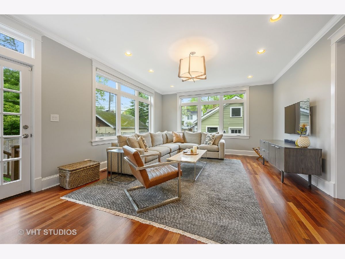 Stunning newer construction home on a double lot with all of the character and charm of Northwest Evanston in coveted Willard School District. Kiddy Corner to Bent Park, This modern farmhouse with 4 beds and 3.1 baths sits on a double lot with great walkability to Starbucks, restaurants, stores, schools, parks and more. Walking up to your inviting covered front porch with trex decking, enter into the front living room with custom built-ins and gas fireplace which flows into your stunning chef's kitchen. The center piece of the home, this kitchen features a breakfast bar, ample storage, eat in dining and stainless steal appliances and boasts a quartzite island which overlooks your beautiful outdoor eating area and massive yard all professionally landscaped and fully fenced. Functionality meets beauty with a large mudroom with built in storage along with a stunning family room with 2 walls of windows allowing great site lines to your large manicured lawn. 4 generously sized bedrooms all with professional closet organizers and updated lighting, including vaulted ceiling master with exposed beams, dual walk in closets and large en-suite master bath. The basement has a large home theater area along with play/rec space and full bath/guest room. All in all this home boasts amazing curb appeal, fantastic location, the charm of Evanston with the new construction functionality of today's living. Welcome Home.