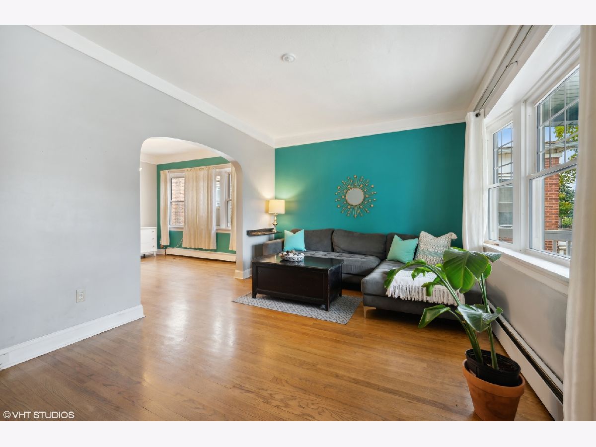 Spacious four bedroom home on oversized lot in the heart of Belmont Cragin! This home features a beautiful front porch, large living room, separate dining room and eat-in kitchen. Two bedrooms and one full bath on each of the first and second floors. The basement is unfinished and awaiting your ideas! Baseboard heat, window unit AC, new water heater and laundry in basement. Huge backyard and coveted side drive. This one won't last! Home is being sold As-Is.