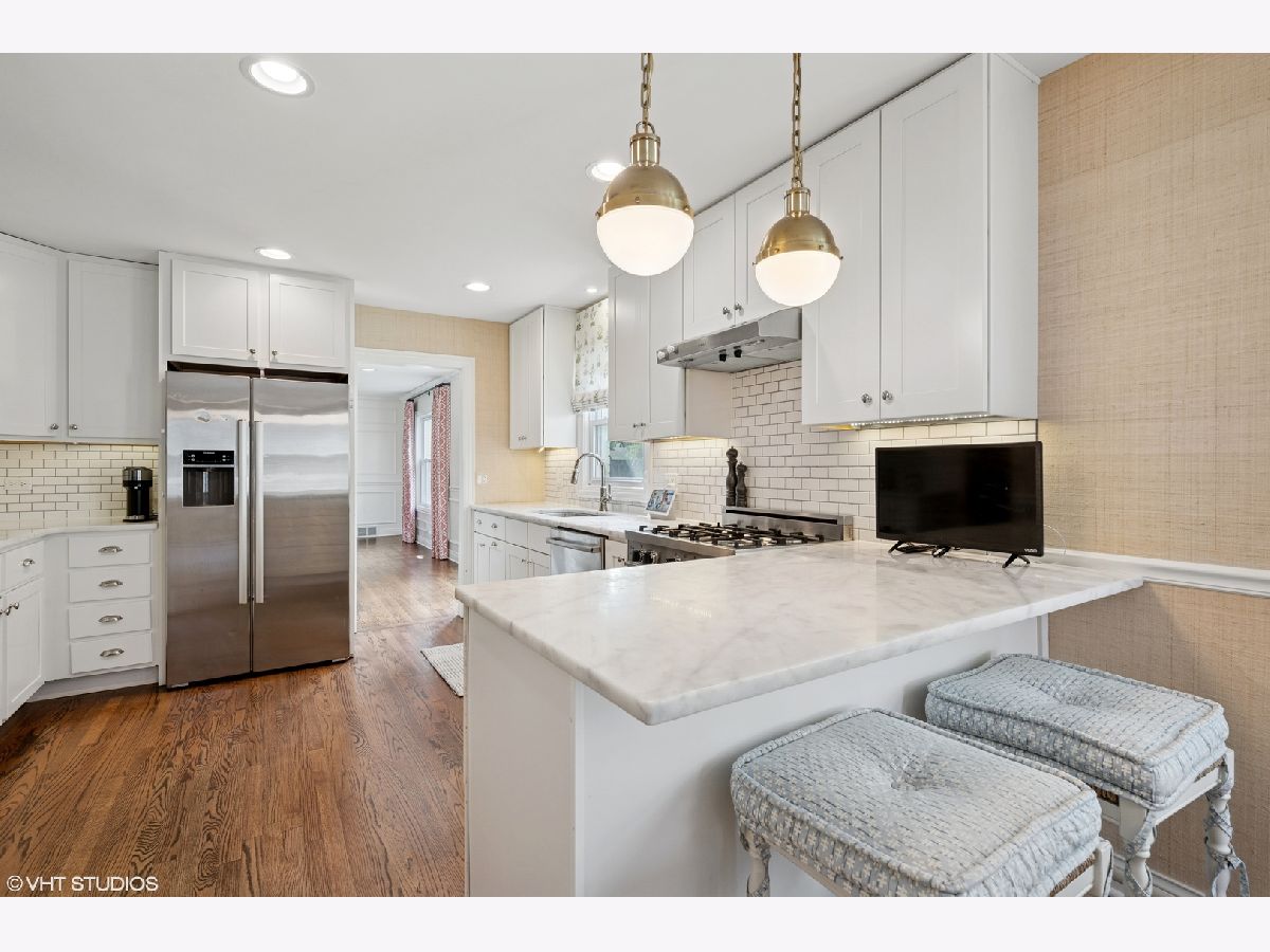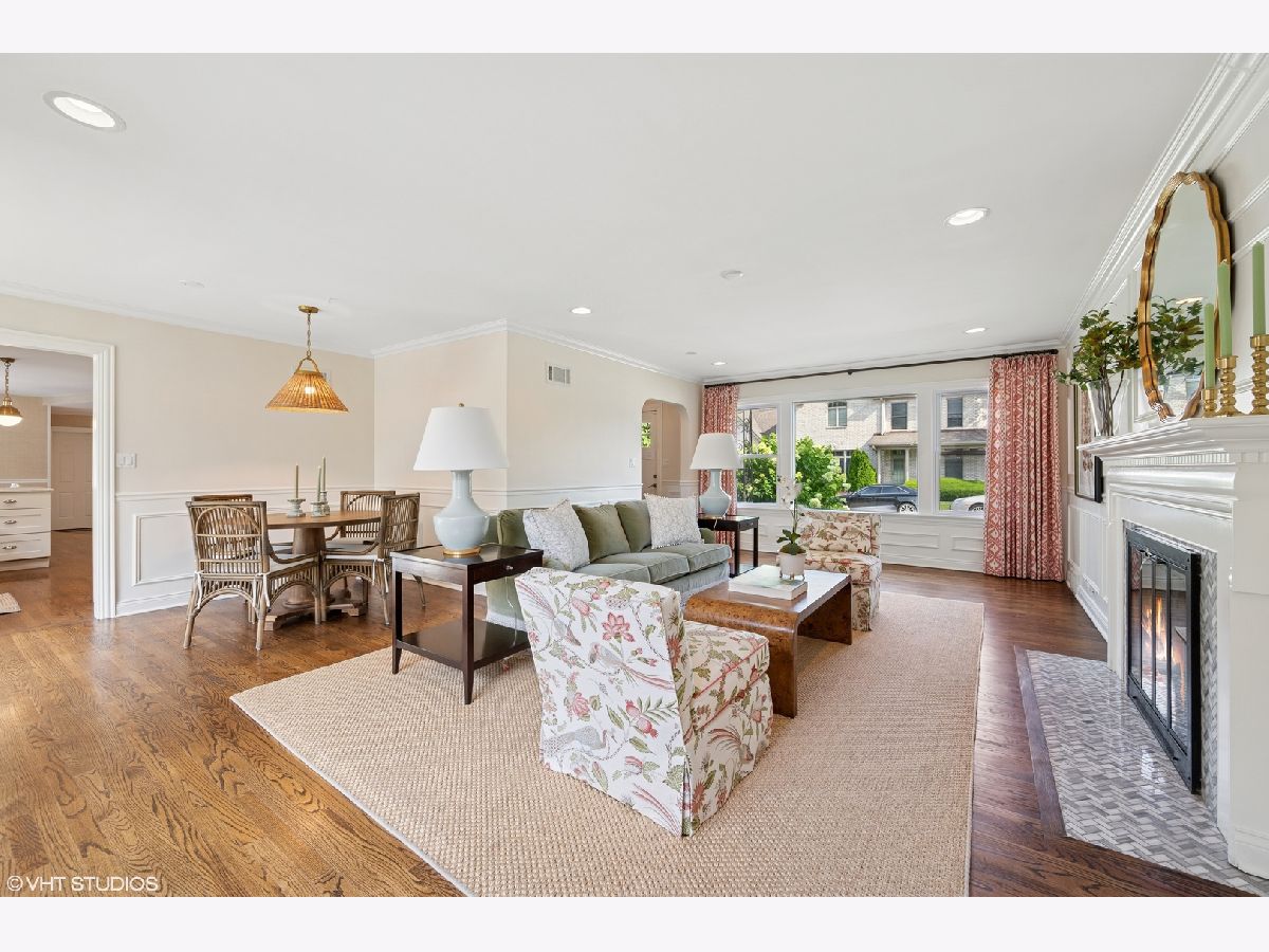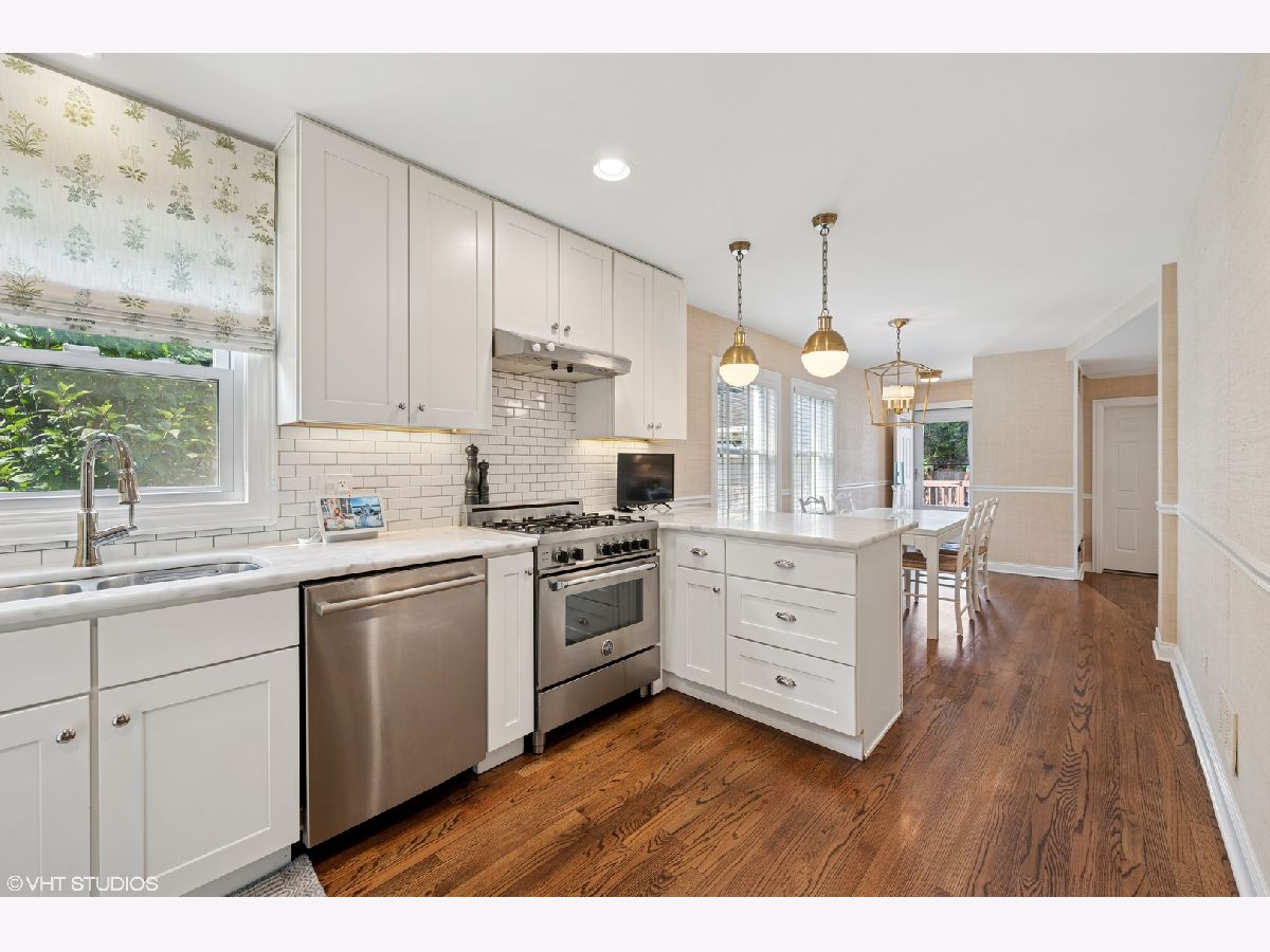 Welcome to 244 Elm Street in Glenview - a beautifully updated Cape Cod that combines thoughtful design with modern convenience. This meticulously maintained home features designer finishes throughout along with major updates, including a new roof, new sewer line, and newer windows. The flexible floor plan includes a main-level bedroom or office with a full bath, perfect for guests or remote work. A spacious living room with wood-burning fireplace and an adjacent dining area provide comfortable entertaining space. The updated kitchen and family room feature grasscloth wallpaper, custom window treatments, and built-ins, creating a cozy, inviting atmosphere. A mudroom with direct access to the attached garage and easy walkout to the spacious porch and backyard add convenience and functionality. Upstairs you'll find four well appointed bedrooms and two full baths, including a primary suite with a private bath, walk-in closet, and additional closet space. The finished basement offers a large recreation area with fireplace and wet bar, new carpet, and abundant storage. Additional highlights include entire exterior brick painted, refinished hardwood flooring, two sets of washer/dryers, updated kitchen hardware, new light fixtures, refreshed carpet, and fresh paint throughout. Situated in the heart of Glenview, this home offers easy access to top-rated schools, parks, shopping, and transportation.