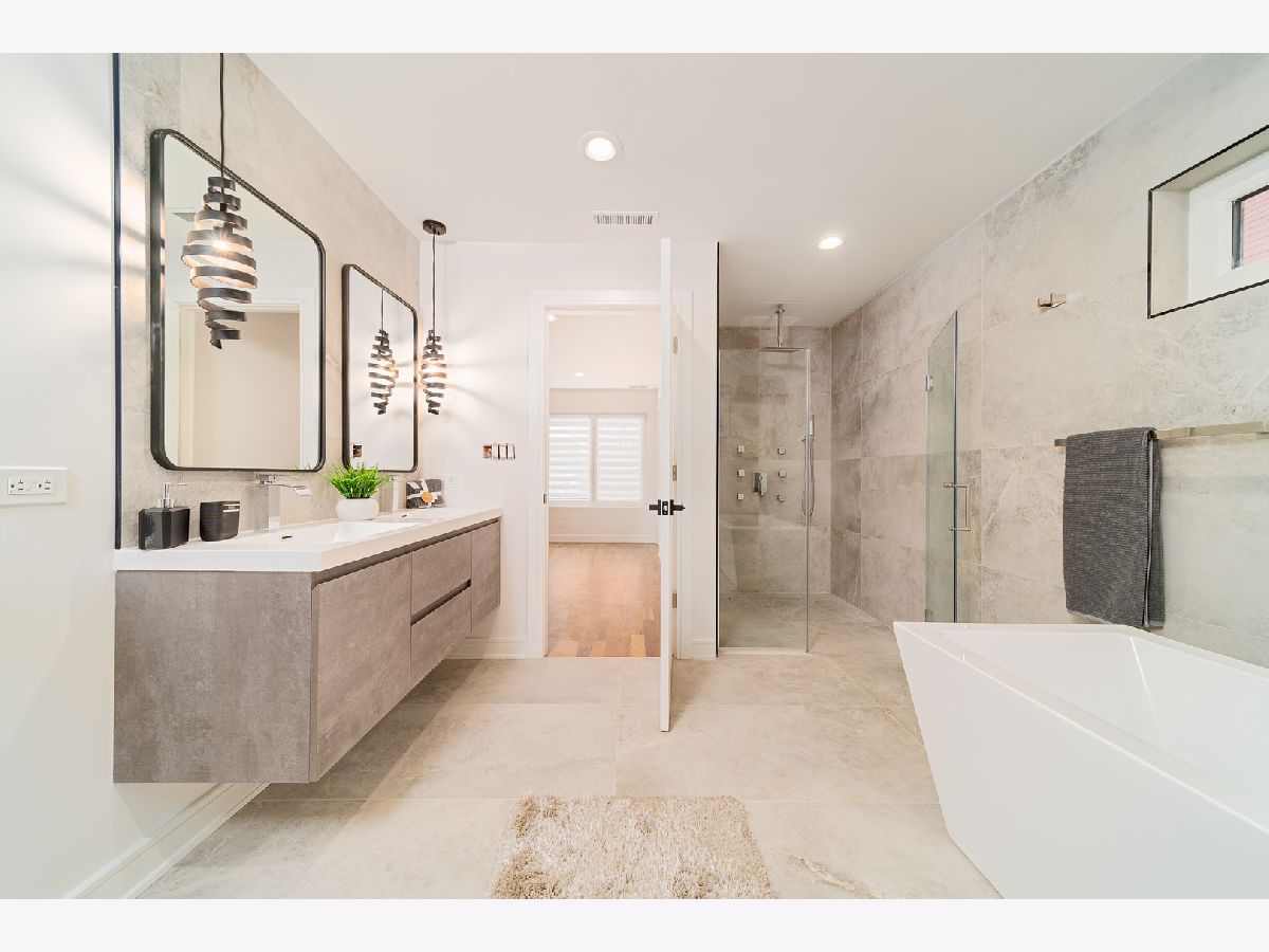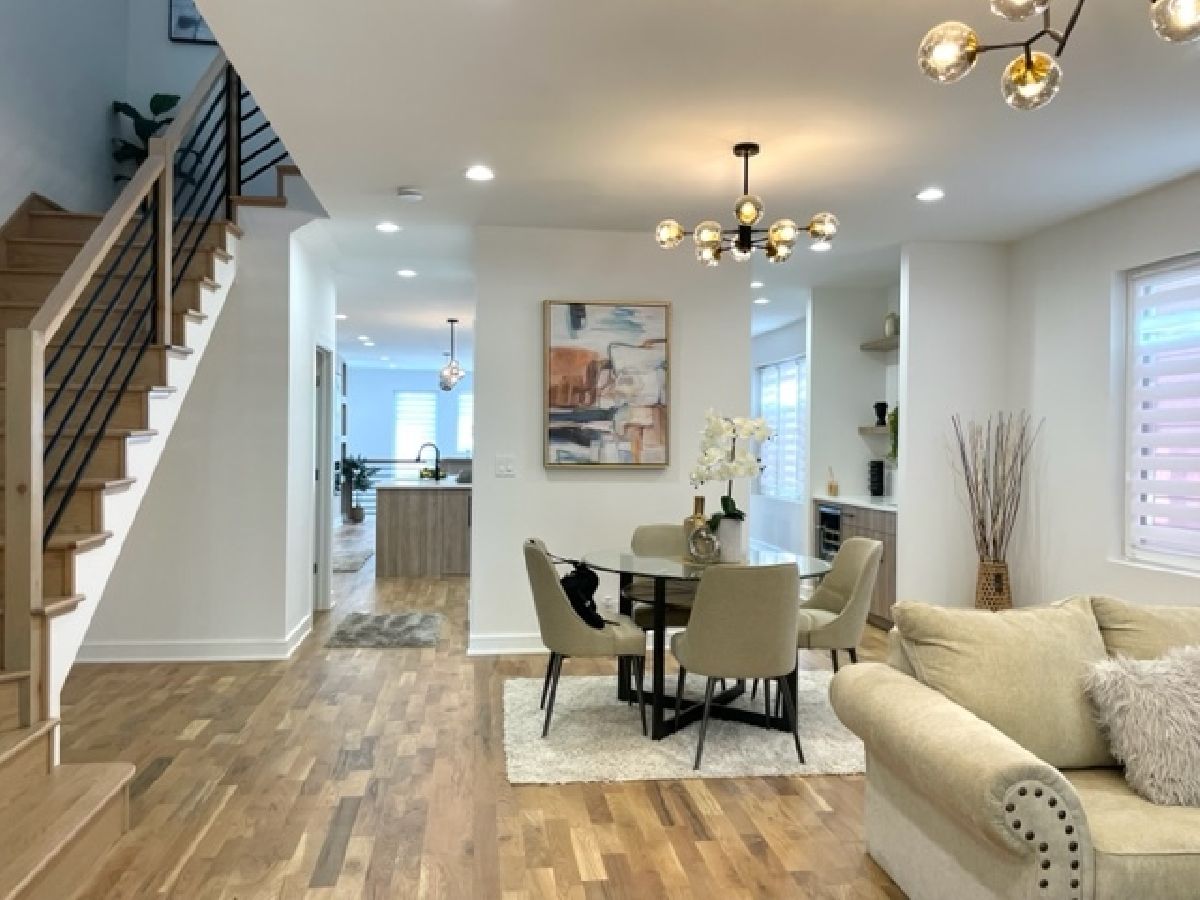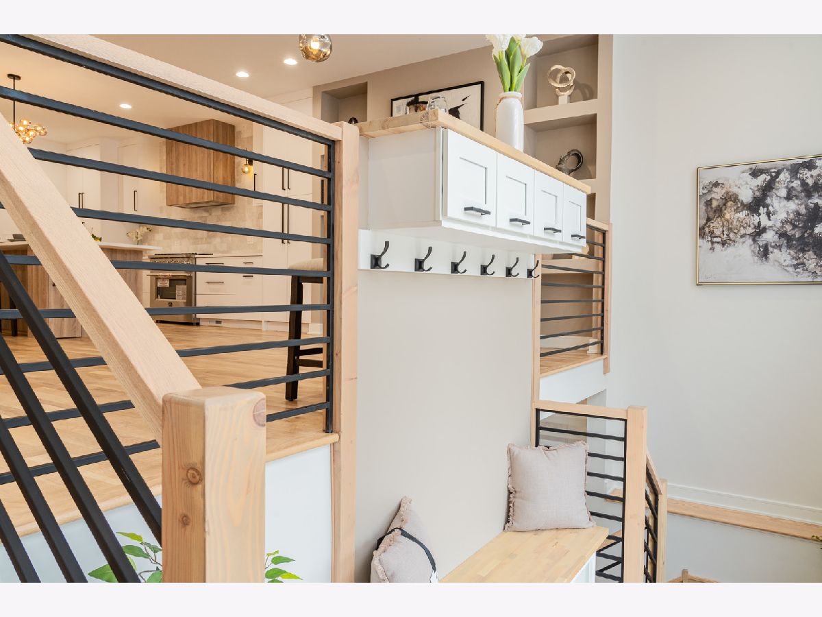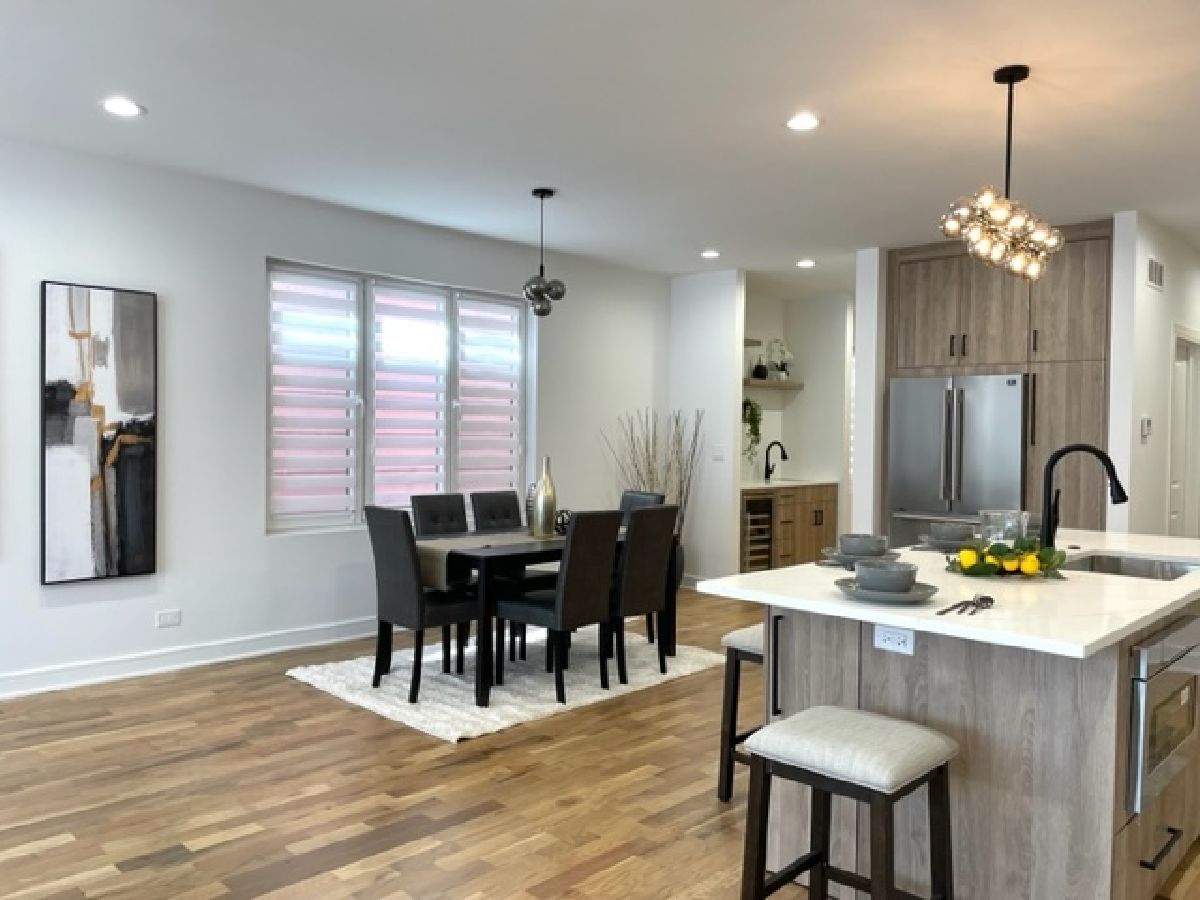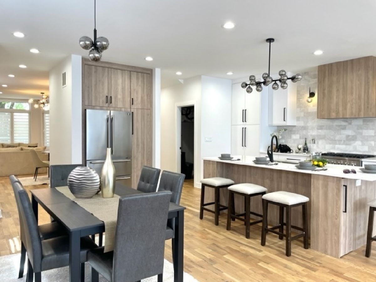 Beautiful Logan Square 5 bedroom, 4 and a half bath contemporary single-family home in Logan Square. Excellent craftsmanship visible at every detail. Great layout. Walk into an open floor plan with hardwood floors, crown molding and custom millwork throughout. The kitchen boasts custom two-tone cabinetry with Quartz countertops, beautiful back-splash, island with breakfast bar and stainless steel appliances. Three bedrooms on the top floor with hardwood floors throughout and great closet space and second laundry. Primary spa-like bath has heated floors, double vanity, and separate tub & shower with body sprays. Lower level has radiant heated floors, large rec room with great wet bar, full guest bedroom with walk-in closet and laundry room. Zoned HVAC, custom closet organizers and custom window treatments including plantation shutters in family room. Plus special-order lighting and decor throughout. Enjoy the front yard and porch or the spacious back deck with fenced yard and 2 car garage. Walk to all the hot dining spots and nightlife. This home has it all. Shows beautifully.