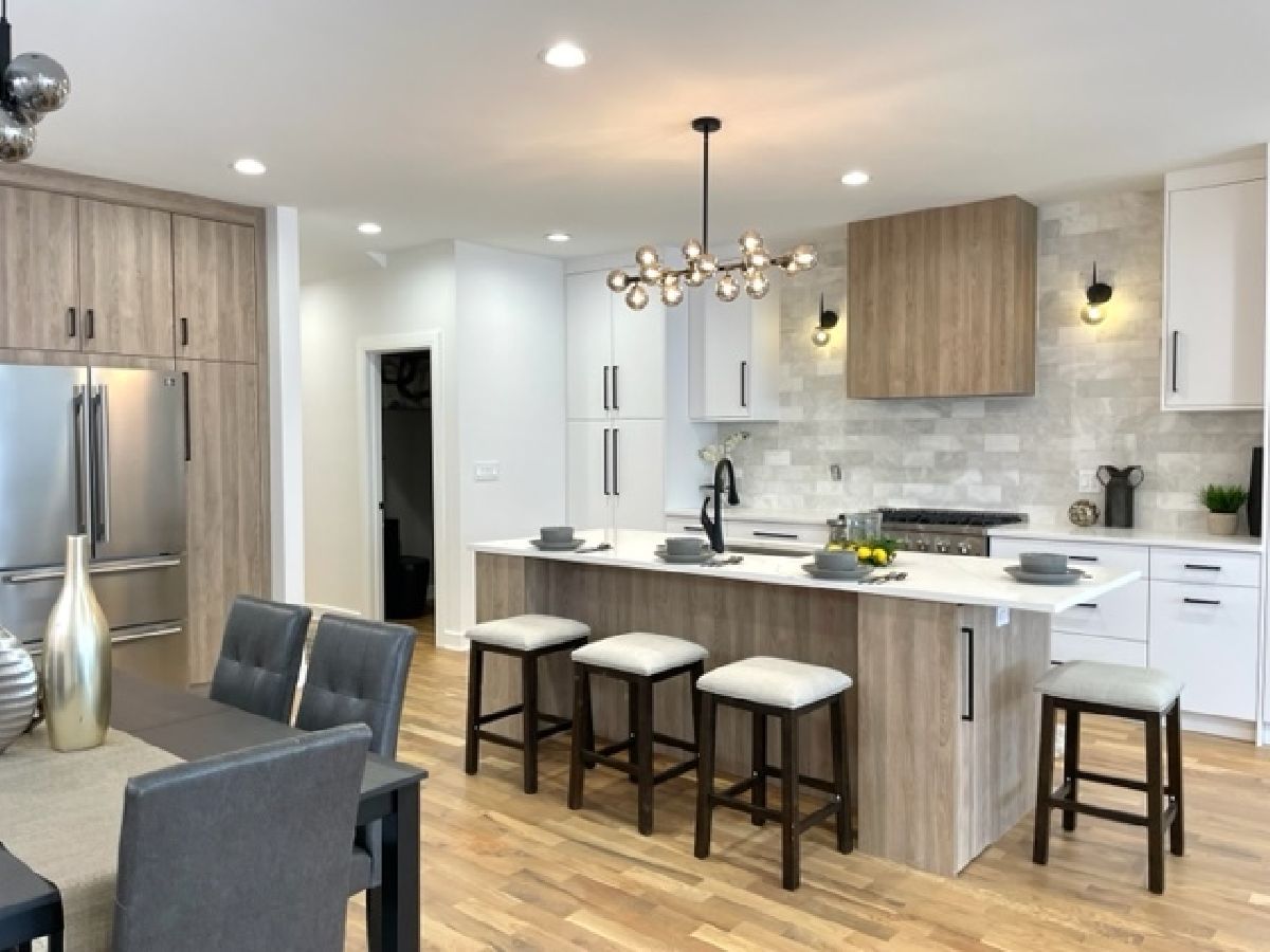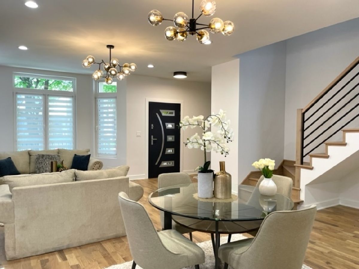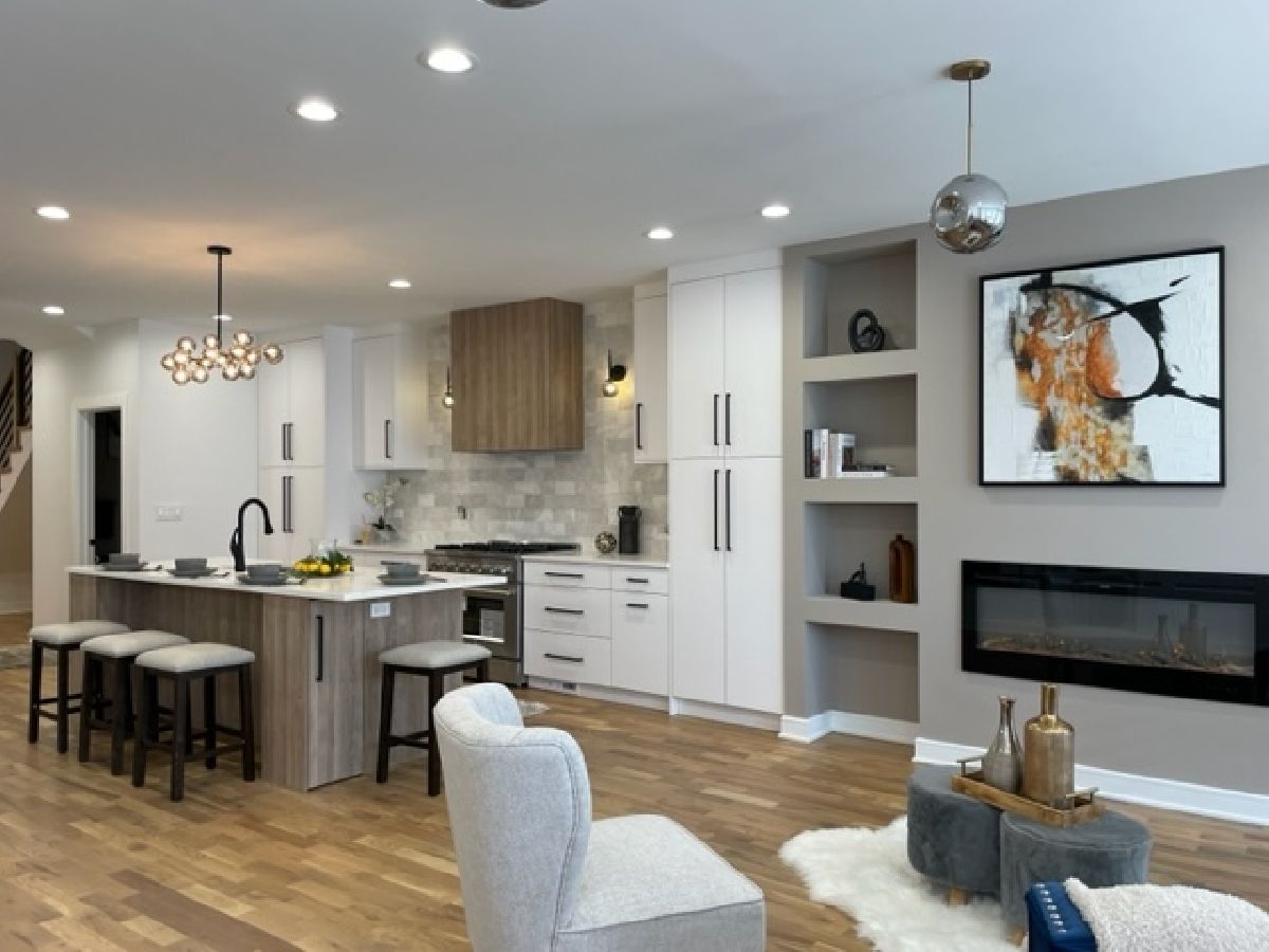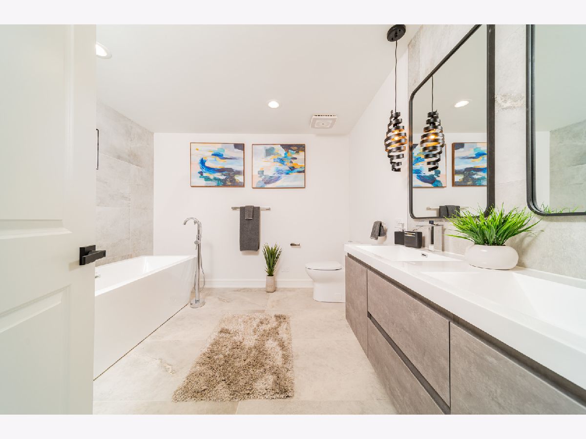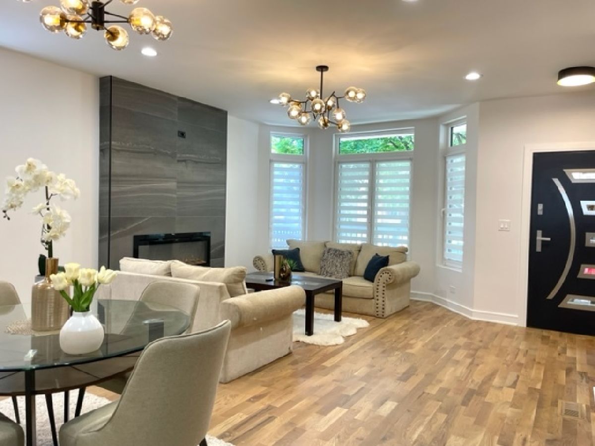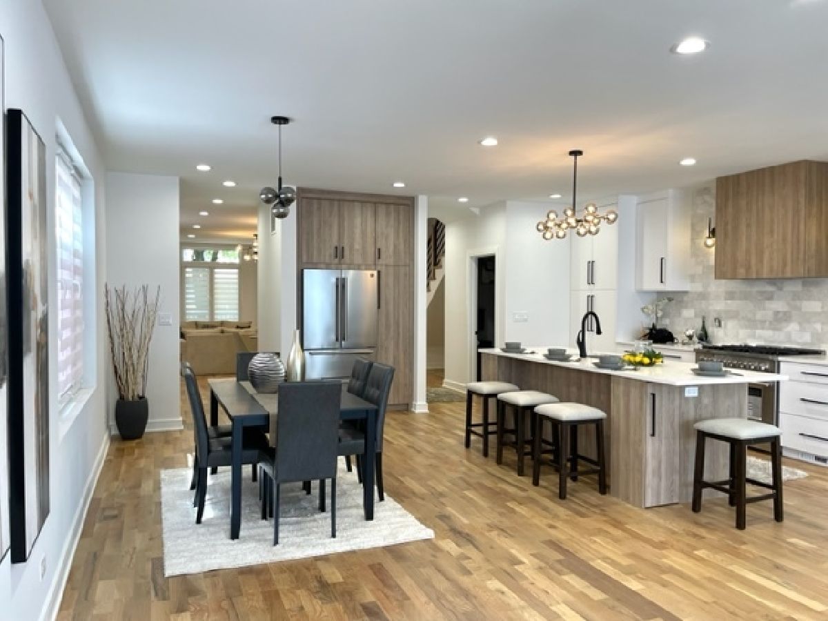 Beautiful Logan Square 5 bedroom, 4 and a half bath contemporary single-family home in Logan Square. Excellent craftsmanship visible at every detail. Great layout. Walk into an open floor plan with hardwood floors, crown molding and custom millwork throughout. The kitchen boasts custom two-tone cabinetry with Quartz countertops, beautiful back-splash, island with breakfast bar and stainless steel appliances. Three bedrooms on the top floor with hardwood floors throughout and great closet space and second laundry. Primary spa-like bath has heated floors, double vanity, and separate tub & shower with body sprays. Lower level has radiant heated floors, large rec room with great wet bar, full guest bedroom with walk-in closet and laundry room. Zoned HVAC, custom closet organizers and custom window treatments including plantation shutters in family room. Plus special-order lighting and decor throughout. Enjoy the front yard and porch or the spacious back deck with fenced yard and 2 car garage. Walk to all the hot dining spots and nightlife. This home has it all. Shows beautifully.