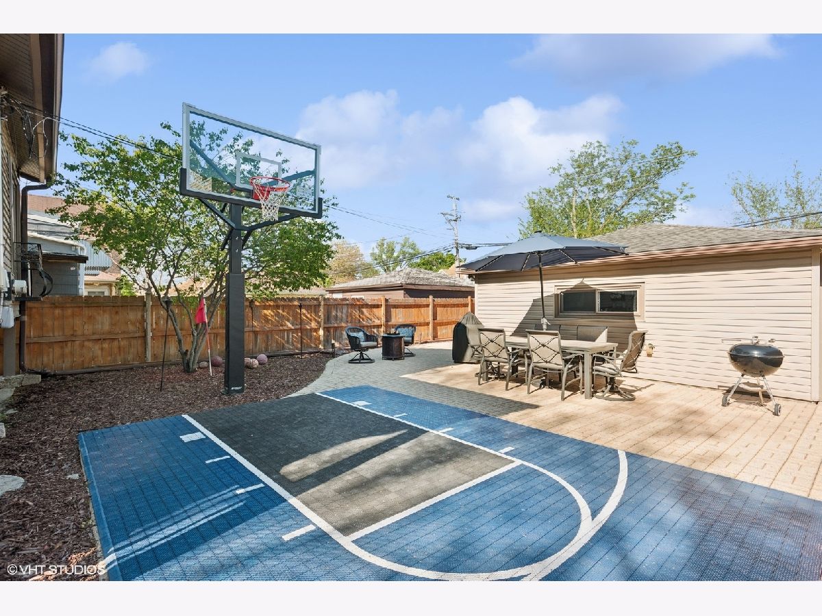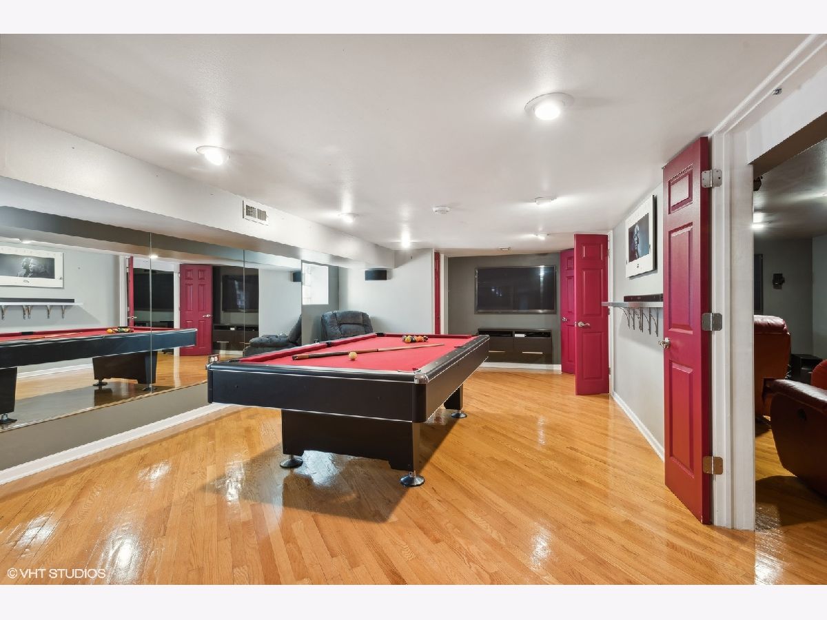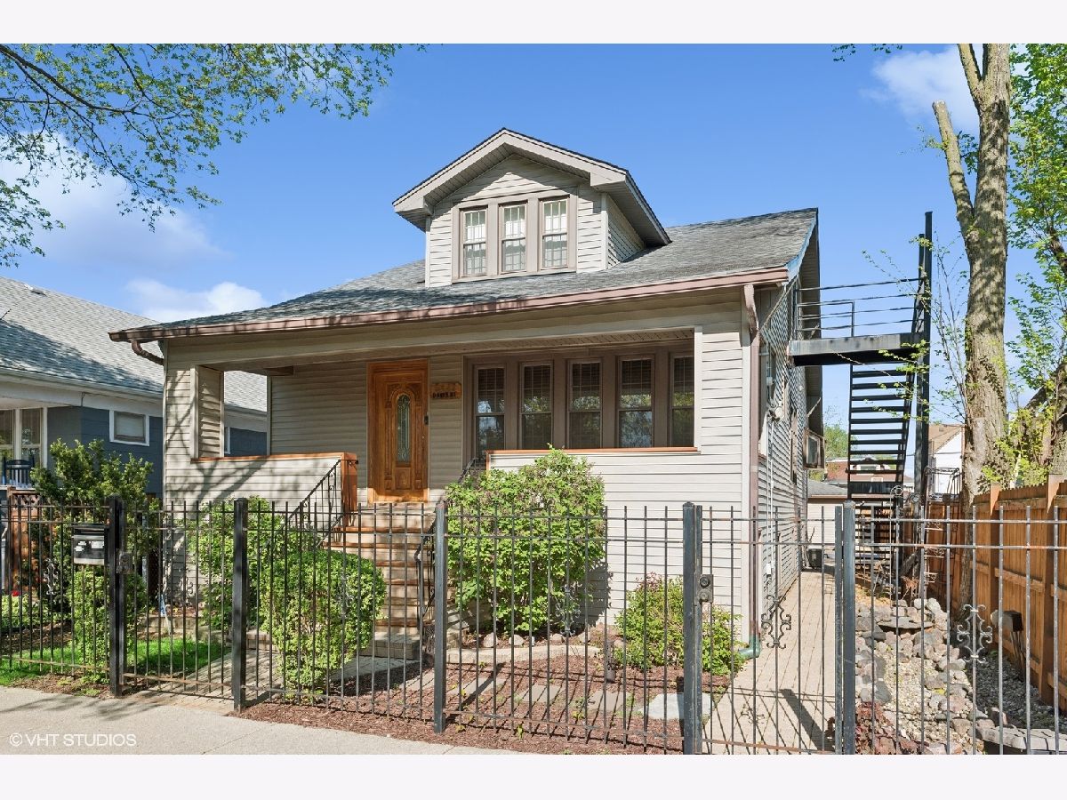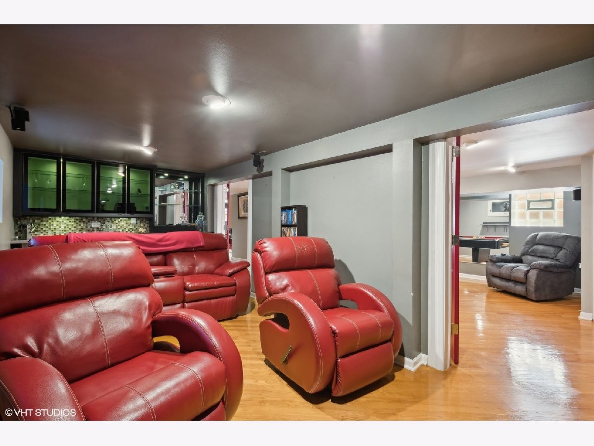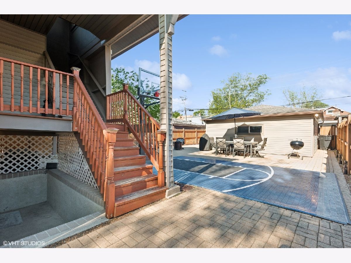 LEGAL 2 FLAT! Impressive property, outstanding condition and exceptional 2-unit building for sale. Traditional and timeless front porch with a formal grand entrance foyer; giving it the right amount of classic Chicago style, feel and look. First floor unit truly lives like a single-family home with three bedrooms and one and a half bathrooms. Primary bedroom easily fits king sized bed, with walk-in closet. Second bedroom on the same level also generously sized with big closet. Large kitchen with island, stainless steel appliances and plenty of counter space and cabinets for food prep and storage. There is a spacious separate dining room, and the living room includes custom built-in shelves with fireplace. Lower level has a custom-built movie room with built-in sound system, cabinets and lighting. There is also a rec room which includes professional full sized pool table with 3 TVs all included in purchase price. Additional bedroom in basement, half bath, laundry room and walk-out basement. Second unit upstairs is bright, sunny and spacious with two bedrooms, den/office, full bath and storage! Second floor has two separate entrances and an outdoor private deck, separate water heater, HVAC, AC with utility closets. Hardwood floors in each unit. The real gem of this property lies in the back yard! ALL beautifully laid-out brick paver patio, custom built-in basketball hoop, additional parking pad, two car garage, fully functional and running side water garden, huge built-in additional storage- just a great place to entertain family, friends and neighbors! Property can be purchased with all furniture, and it includes all sound systems and TVs! Perfect for someone who wants to live and have their payments subsidized by the upstairs unit!