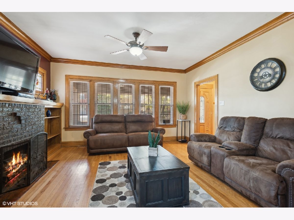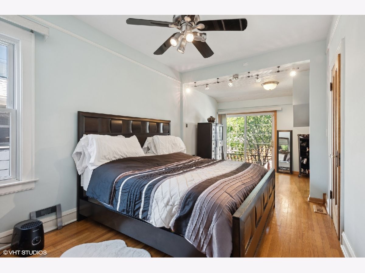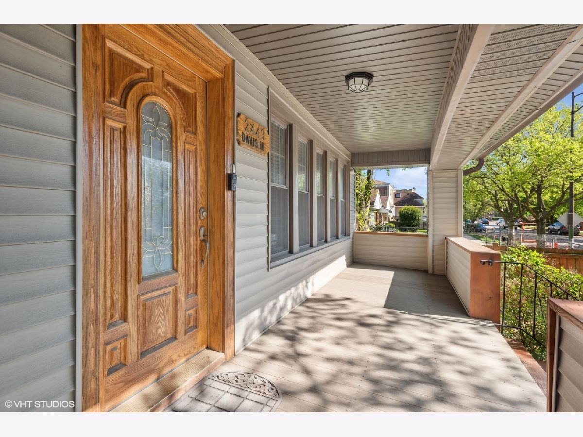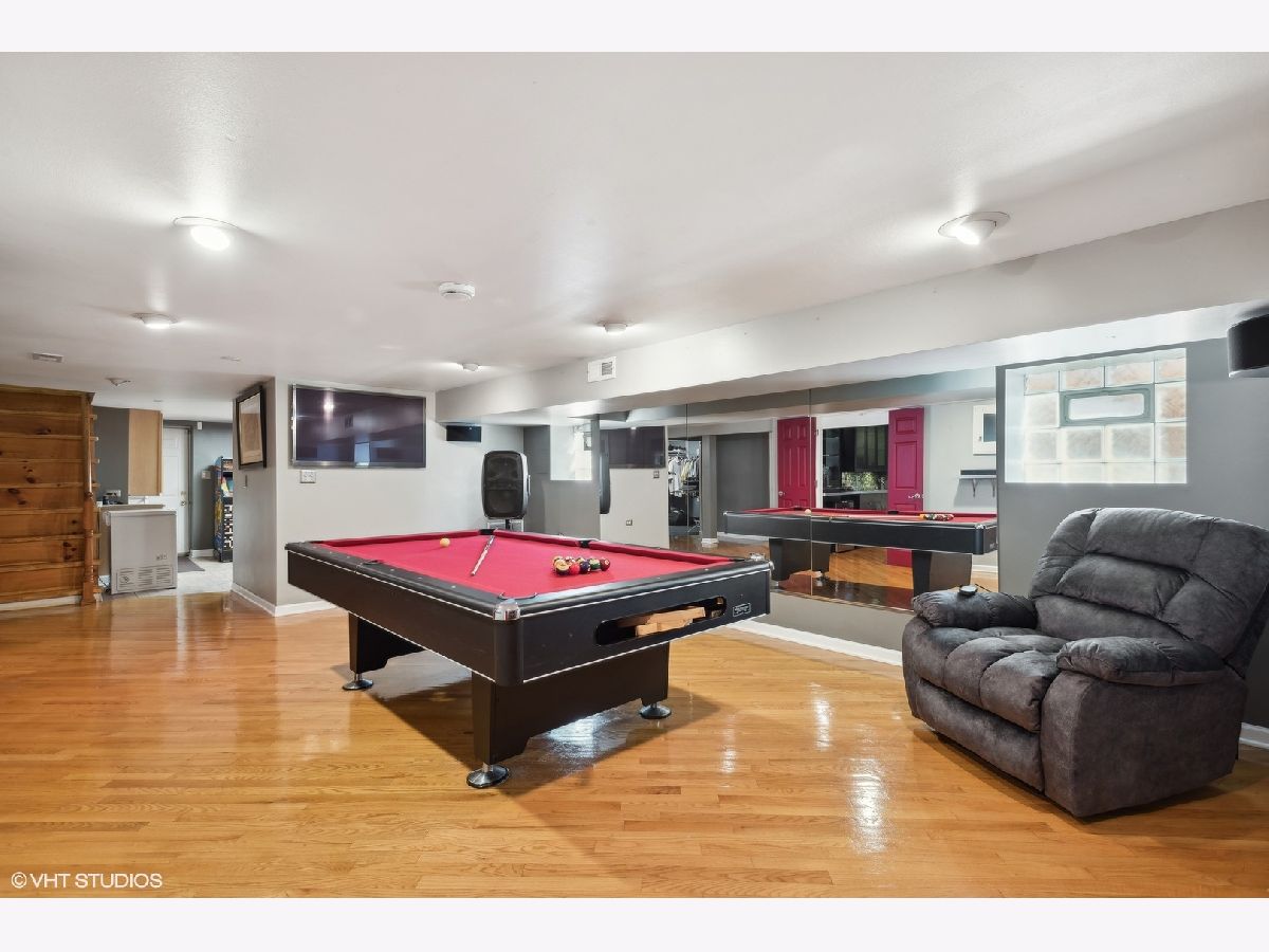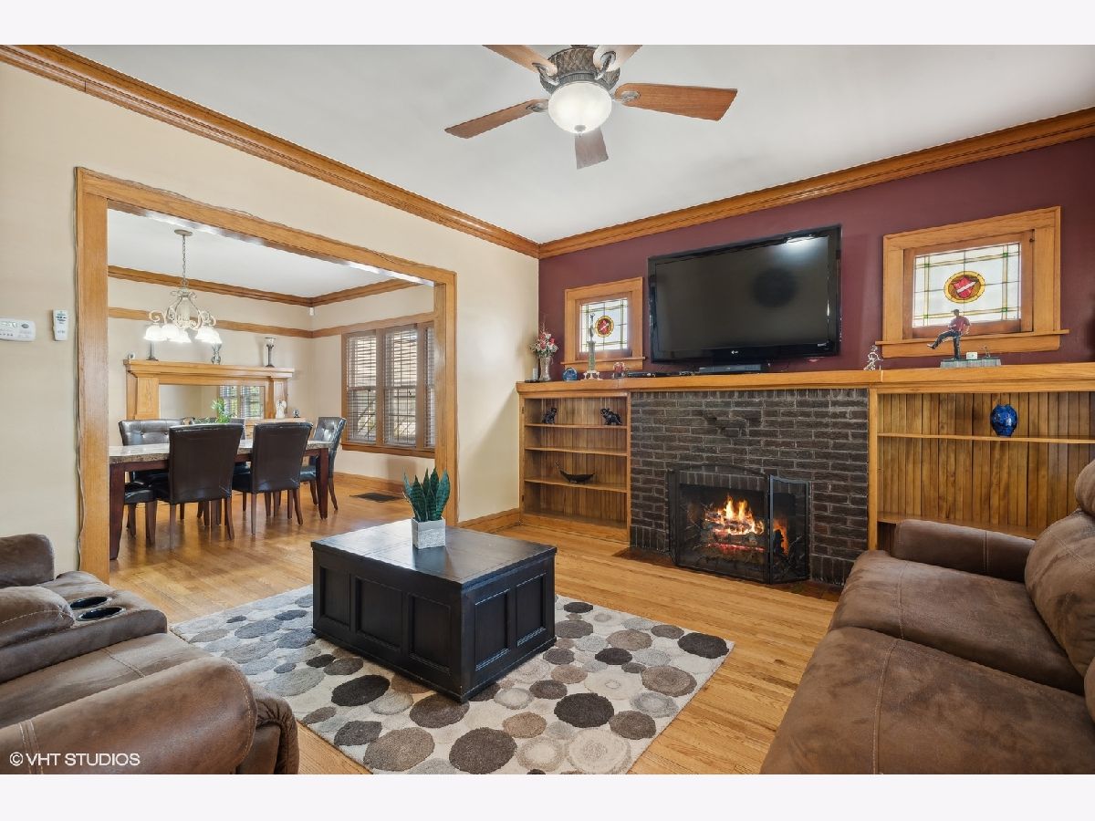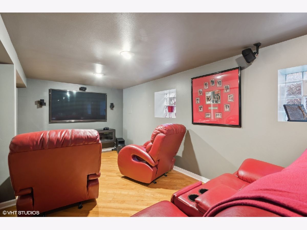 LEGAL 2 FLAT! Impressive property, outstanding condition and exceptional 2-unit building for sale. Traditional and timeless front porch with a formal grand entrance foyer; giving it the right amount of classic Chicago style, feel and look. First floor unit truly lives like a single-family home with three bedrooms and one and a half bathrooms. Primary bedroom easily fits king sized bed, with walk-in closet. Second bedroom on the same level also generously sized with big closet. Large kitchen with island, stainless steel appliances and plenty of counter space and cabinets for food prep and storage. There is a spacious separate dining room, and the living room includes custom built-in shelves with fireplace. Lower level has a custom-built movie room with built-in sound system, cabinets and lighting. There is also a rec room which includes professional full sized pool table with 3 TVs all included in purchase price. Additional bedroom in basement, half bath, laundry room and walk-out basement. Second unit upstairs is bright, sunny and spacious with two bedrooms, den/office, full bath and storage! Second floor has two separate entrances and an outdoor private deck, separate water heater, HVAC, AC with utility closets. Hardwood floors in each unit. The real gem of this property lies in the back yard! ALL beautifully laid-out brick paver patio, custom built-in basketball hoop, additional parking pad, two car garage, fully functional and running side water garden, huge built-in additional storage- just a great place to entertain family, friends and neighbors! Property can be purchased with all furniture, and it includes all sound systems and TVs! Perfect for someone who wants to live and have their payments subsidized by the upstairs unit!