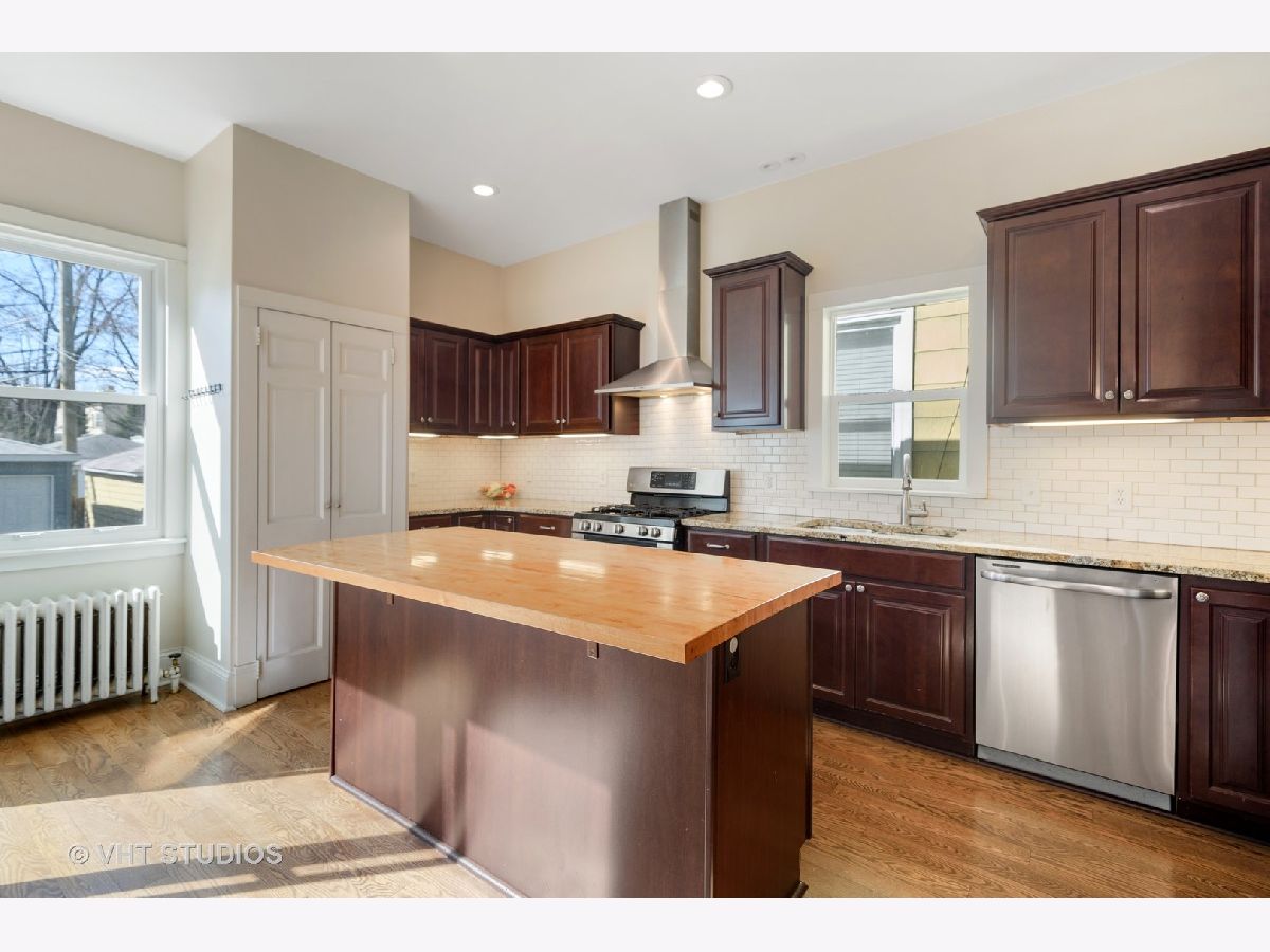 Light streams into this wonderful and spacious three bedroom two and a half bath home in perfect Lincoln Square location. Home situated on 30 ft lot allows for gracious living. Central air (space pak) and radiator heat. Updated kitchen with dark wood cabinets, stainless appliances, granite countertops, butcher block island top, pantry and subway tile backsplash. Three very nice sized bedrooms on second floor. Oversized primary bath with dual vanities, large shower, stone finishes and linen closet. Beautiful hall bath with updated stone finishes. Half bath on main floor. Newer windows (2014), garage (2014) and roof (2015). Newer hardwood floors on main floor (2014). Hardwood throughout entire home. Unfinished basement and attic space. Inviting front porch with new composite decking (2020).Oversized landscaped yard and fantastic patio off living space. Steps to Waters School, Welles Park, transportation, and all the restaurants and shops Lincoln Square has to offer. Tons of updates in this amazing home.