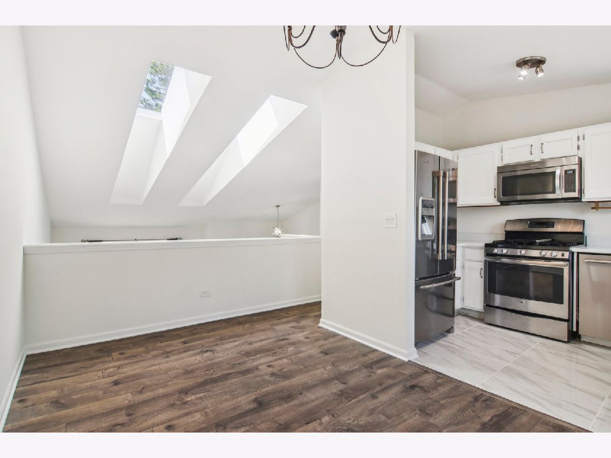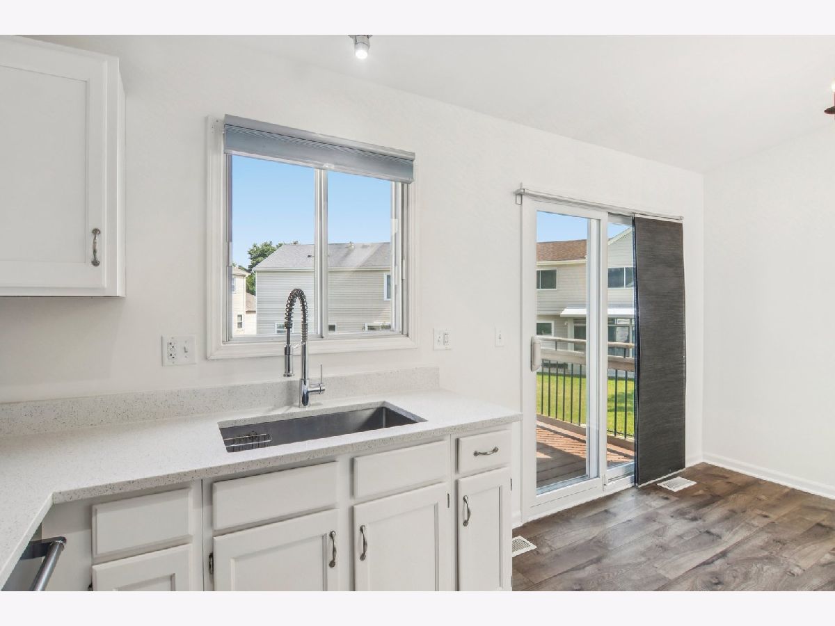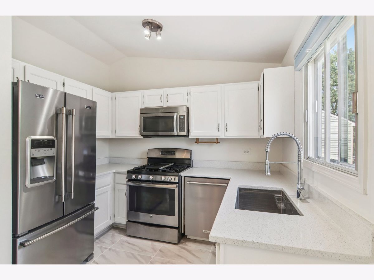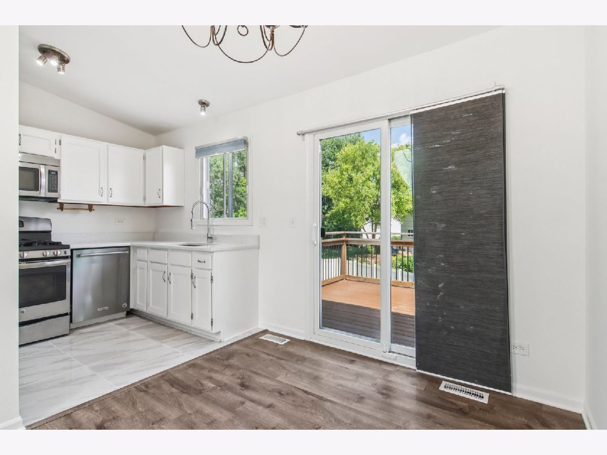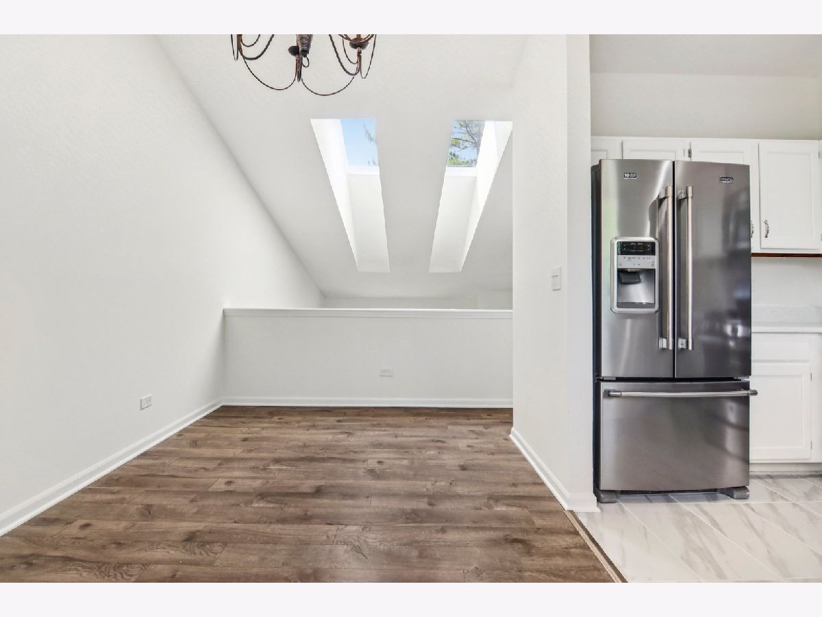 Step inside and fall in love with this impeccable 3 bedroom, 1.5 bath home that shows like a dream! This stunning property features new light fixtures, fresh paint colors, and updated doors and trim throughout, providing a cohesive and modern feel. The living space welcomes you with vaulted ceilings and skylights, allowing for an abundance of natural light to illuminate the area. You'll find new high-end wood laminate floors in the main living areas, with newer carpet installed in the bedrooms and family room, which was completed after the previous owners moved out. Both bathrooms have been recently remodeled with all-new fixtures and finishes, creating a luxurious experience. The kitchen is equipped with new stainless steel appliances and features durable porcelain tile flooring with beautiful quartz countertops with natural sunlight beaming in all directions. Both the dining room and walk-out family room have new sliding glass doors, offering easy access to the outdoor spaces. The roof was replaced in 2023, and the large yard is secured with a new fence installed in 2022. You'll also appreciate the patio and deck, which were added in 2020, perfect for outdoor entertaining. The home also boasts energy-efficient upgrades including a Smart Nest thermostat, a new furnace installed in 2019, and a brand new air conditioning unit installed in June 2025. Additional updates include a new electrical panel in 2016, a sump pump in 2015, and an attic fan in 2015. This home offers an ideal location, allowing you to walk to Park District recreation and amenities, bike paths, and a peaceful lake that you can enjoy from your own backyard. It's also within walking distance to numerous trails, forests, a park, the lake, and the library, as well as the elementary and middle schools. Centrally located off of I-355, this highly-regarded Town Centre location provides convenient access to everything Woodridge has to offer.