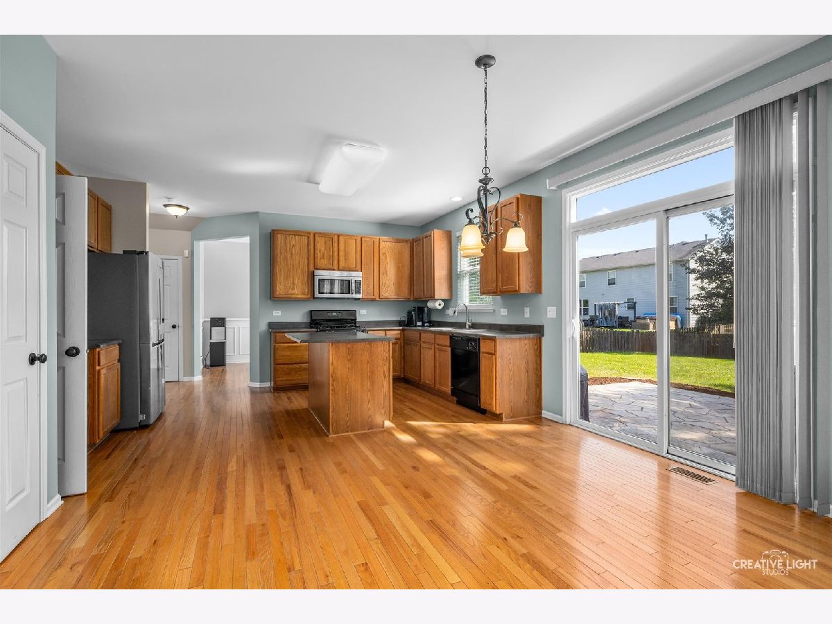 This meticulously maintained home in the highly sought-after Blackberry Crossing community offers comfort, style, and space for the whole family. Beautiful hardwood floors span the main level, leading you into a bright, open-concept living area that seamlessly connects the kitchen and family room-perfect for everyday living and entertaining.The kitchen is a chef's delight with abundant cabinet and countertop space, a pantry, and a center island with breakfast bar seating. A private dining room features elegant wainscoting and a large window for natural light, while the den/office is ideally tucked away for work or study. Upstairs, you'll find four generously sized bedrooms, including a spacious primary suite with vaulted ceilings, double walk-in closets, and a private bath. The semi-finished basement is ready for your finishing touches and flooring choice. Step outside to a fully fenced backyard with a stamped concrete patio-an ideal spot to relax, entertain, or play. Major updates include a new roof (2019), water heater (2018), and water softener (2017). Located in the award-winning Oswego High School district, this home is move-in ready and waiting for its next chapter!