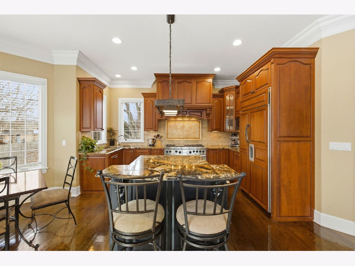 Extraordinary brick and stone newer construction in award winning New Trier/Romona School district. Welcoming foyer leads into gracious formal living and dining rooms. Distinct quality features include: stunning millwork, custom cabinets and hardwood floors throughout first and second floors. Fabulous open kitchen/family room with extra tall ceilings, gas fireplace and sliding doors to brick paver patio for outdoor dining and entertaining. Gourmet eat in kitchen with gorgeous natural stone counters, large island and high end appliances including Wolf 6-burner gas range with griddle and double ovens, Sub-Zero refrigerator & Bosch dishwasher. Lovely private first floor office and awesome mudroom with attached heated 2-car garage. Impressive primary suite with whirlpool tub,double shower, large walk-in closet and sliding doors to private balcony. Three additional spacious bedrooms on 2nd level; one BR ensuite with full bath, additional full bath is ensuite plus opens to hallway. Amazing basement with tall ceilings serves up tons of great entertainment space with huge rec room featuring a handcrafted wet bar and stone fireplace. Awesome exercise room and 5th bedroom with a full bath complete the spacious lower level. Fully fenced backyard landscaped by Chalet with sprinkler system offers beautiful views, privacy and plenty of room for outdoor fun. A quick walk to Wilmette's Centennial Sports complex with ice skating, tennis and outdoor pools in the summer, or head to Wilmette's Gilson beach for swimming and sailing. Easy access to 90/94 or Metra to get you in the Chicago Loop in about 30 min. Many recent updates: 2 new HVAC units 2025, 2 new sump pumps 2025, new beverage fridge 2025,new media equipment + projector screen 2025, new water heater 2023.