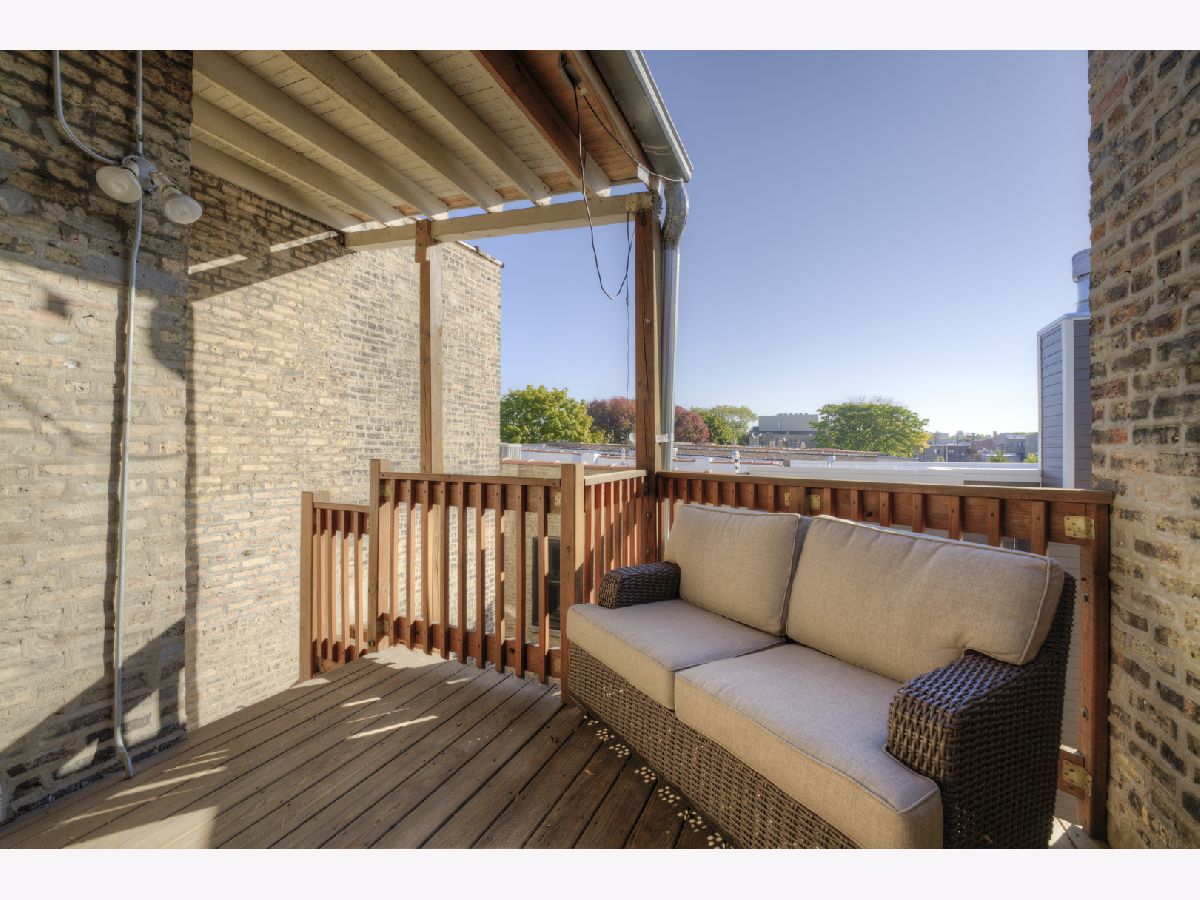 Quaint Top floor home nestled in the trees on desired W. Eastwood contains 2 bedrooms, 1.5 bathrooms, office, in unit W/D, gas fireplace, deck, and unobstructed views. Half bath conveniently located inside the master bedroom. Defined dining and entertaining space. Plenty of natural light floods the home for those working remotely and has original wood trim and built-ins. The partially enclosed deck is located directly off the kitchen making outside meals and entertaining easier. Large shared storage area, plus another private locked storage room for this unit. This home is ideally located steps away from the Brown Line, Welles Park & Homer Park, and everything that Lincoln Square has to offer. Easy street parking too!