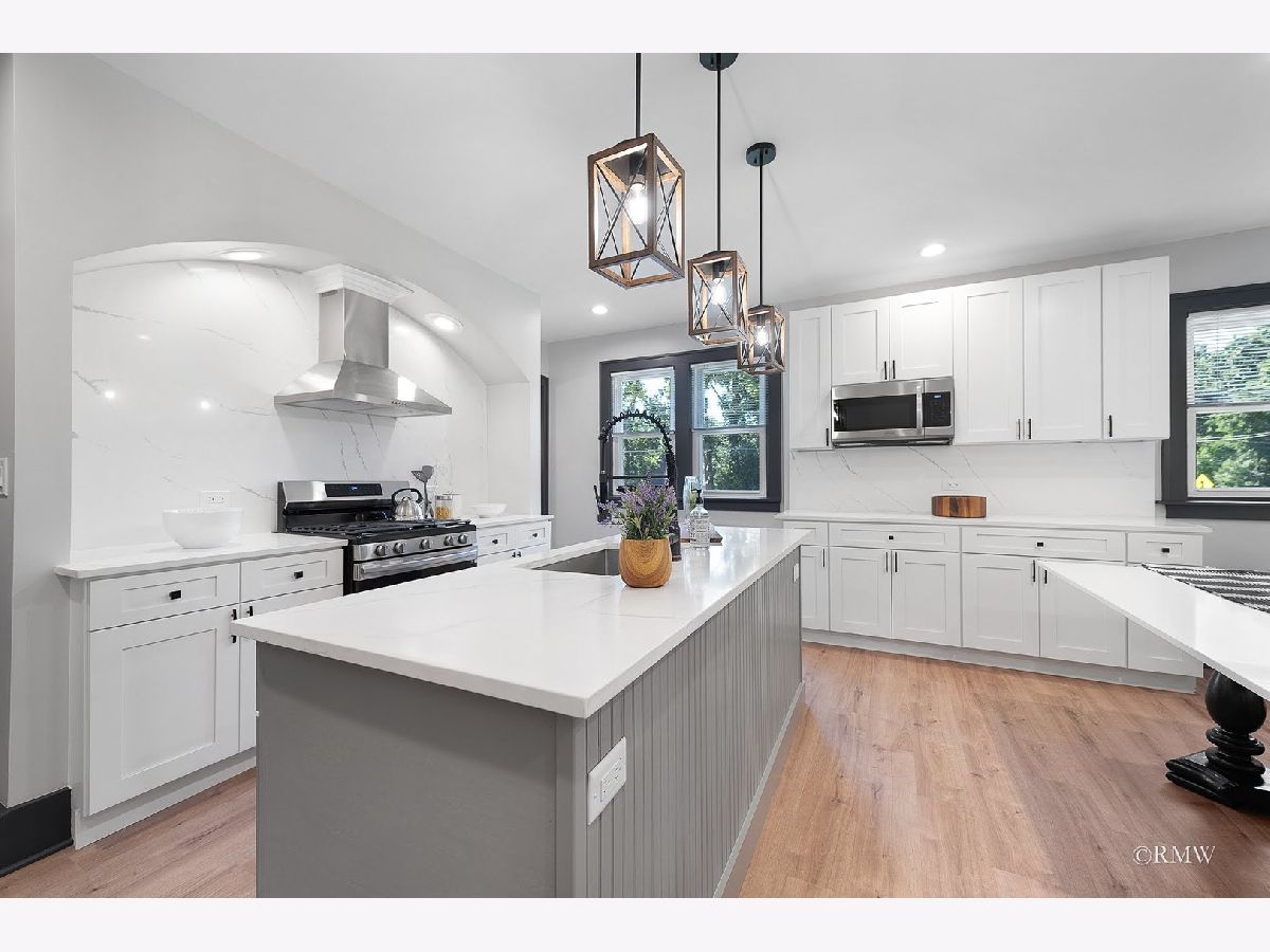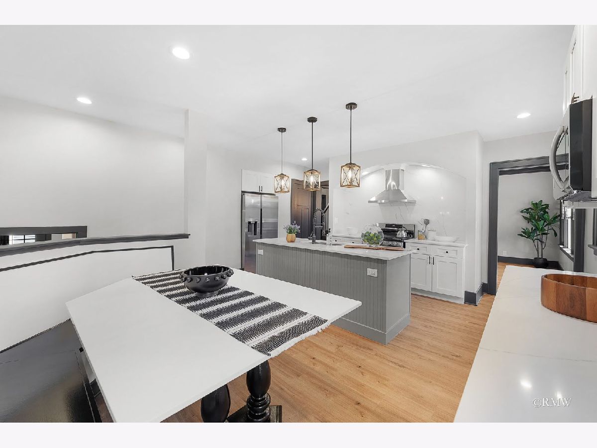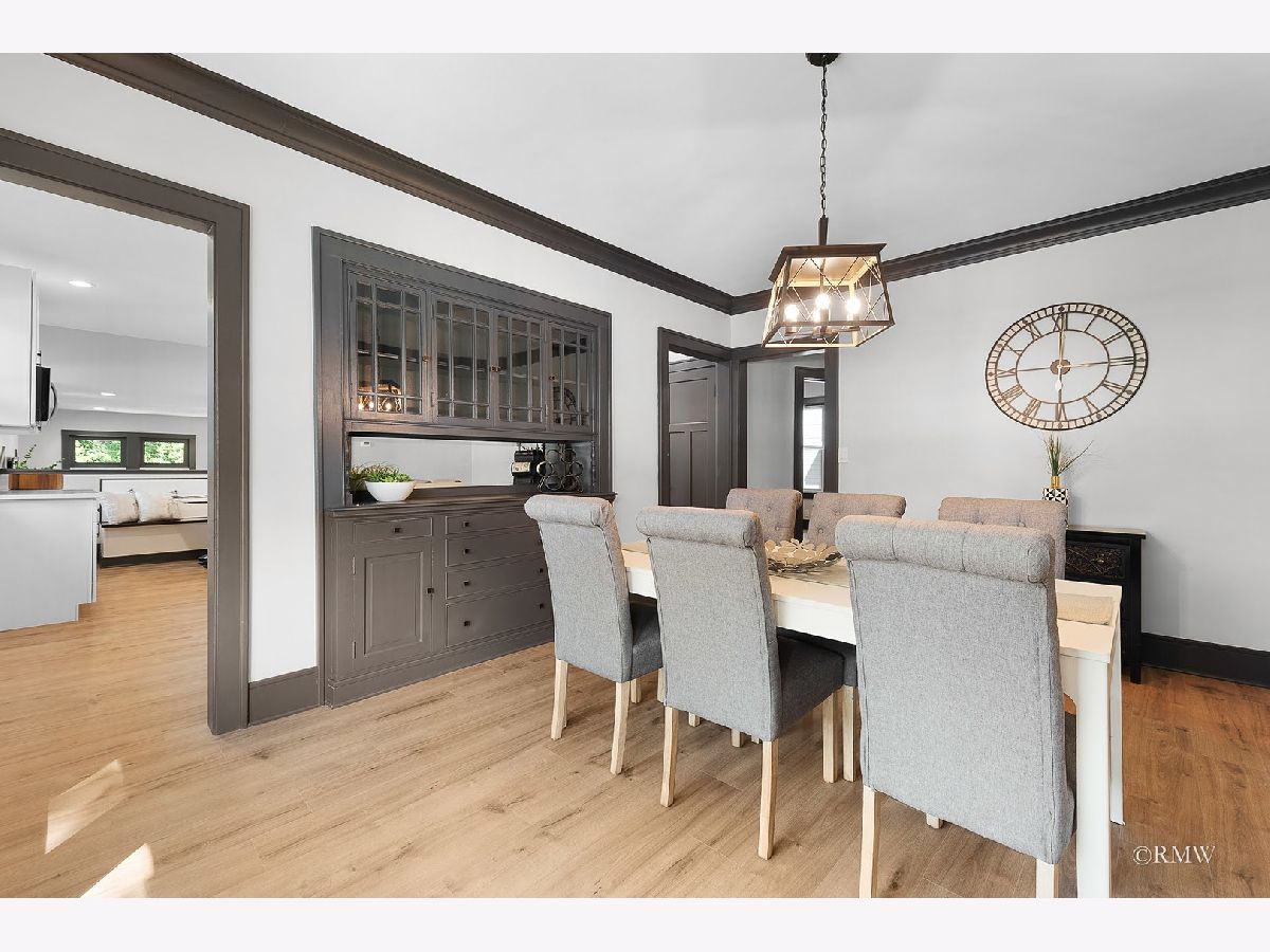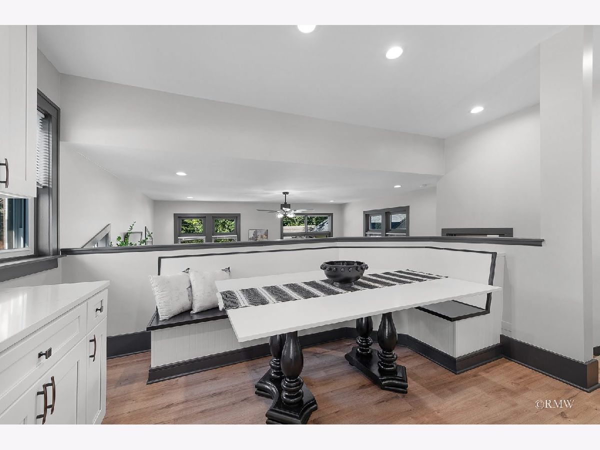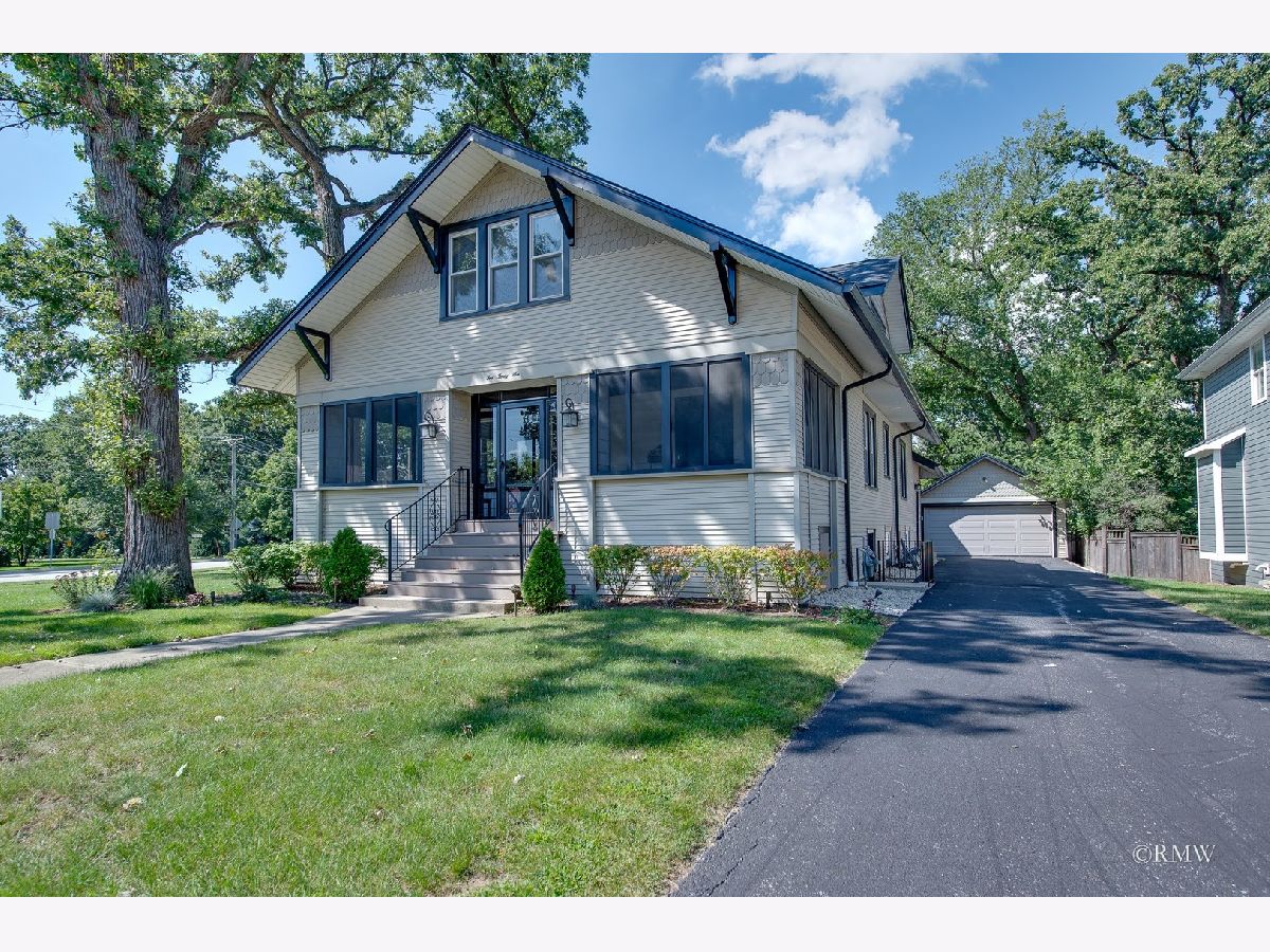 Absolutely stunning, this home blends timeless old-world character with modern luxury. Classic details like an enclosed porch, built-in wood nooks, French door entryways, and authentic crown molding are perfectly complemented by today's upgrades, creating a warm yet sophisticated Restoration Hardware feel. Nestled in one of Itasca's most historic and desirable neighborhoods, you'll enjoy rolling tree-lined streets, nature preserve walking paths, and the convenience of being just blocks from downtown, the Metra station, and everything Itasca has to offer. No expense was spared in restoring and enhancing this property. Beyond the high-end finishes, the owner invested in long-term functionality with a new roof, windows, mechanicals, premium insulation, oversized gutters/downspouts, and a new concrete basement floor complete with drainage and sump pump system. Inside, the kitchen is a showstopper, featuring quartz countertops and backsplash, custom shaker cabinetry, stainless steel appliances, a designer hood, and a one-of-a-kind built-in dinette with quartz table and benches-perfect for everyday meals or entertaining. Just off the kitchen, a step-down family room boasts a large fireplace and oversized windows that flood the space with natural light. The main level also includes an office, bedroom, and full bath, making single-floor living an option. Upstairs, the dramatic primary suite offers an elevated sitting area with built-in shelving overlooking the spacious sleeping area. The primary bath is beautifully appointed with a walk-in tiled shower, double vanity, and laundry closet with washer/dryer. Three additional bedrooms, a full bath and multiple storage areas complete the second floor. The walkout basement is expansive, with a welcoming mudroom featuring custom cubbies, a large recreation space, workout area, additional bedrooms, full bath, and oversized utility/storage room. Set on a generous corner lot, the outdoor space is just as impressive with a sweeping rounded deck, professional night-scaping, mature trees, and an expansive lawn-ideal for gatherings, play, or quiet relaxation. Parking is never an issue thanks to a 2-car garage, oversized driveway, and alley access parking. With award-winning schools, a vibrant park district, and a charming downtown filled with coffee shops, restaurants, and boutiques, this home offers the best of Itasca living. All renovations were fully permitted and city-inspected, ensuring peace of mind for years to come.