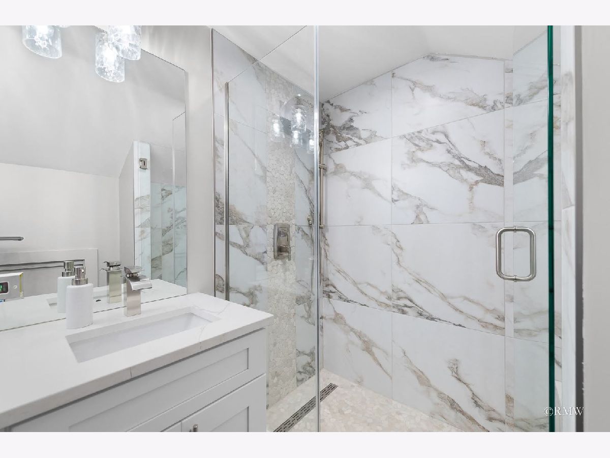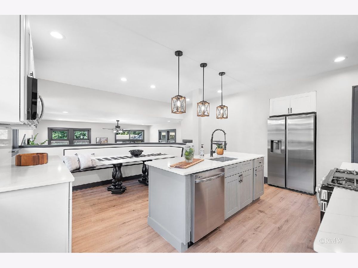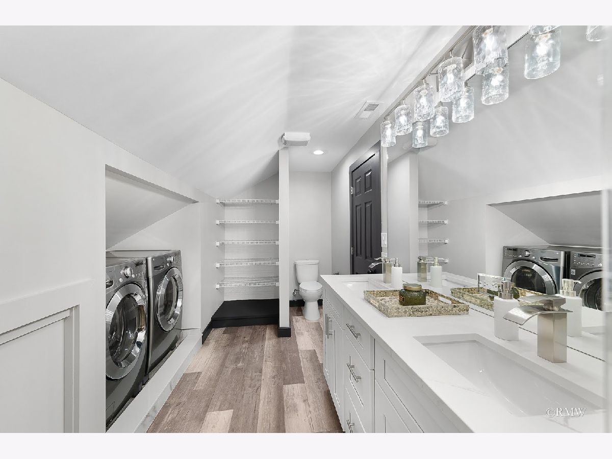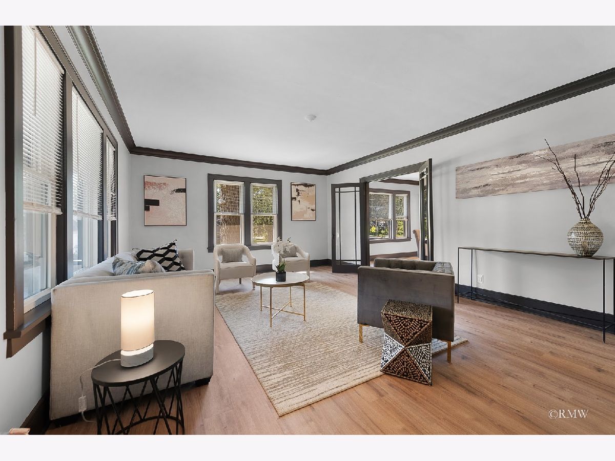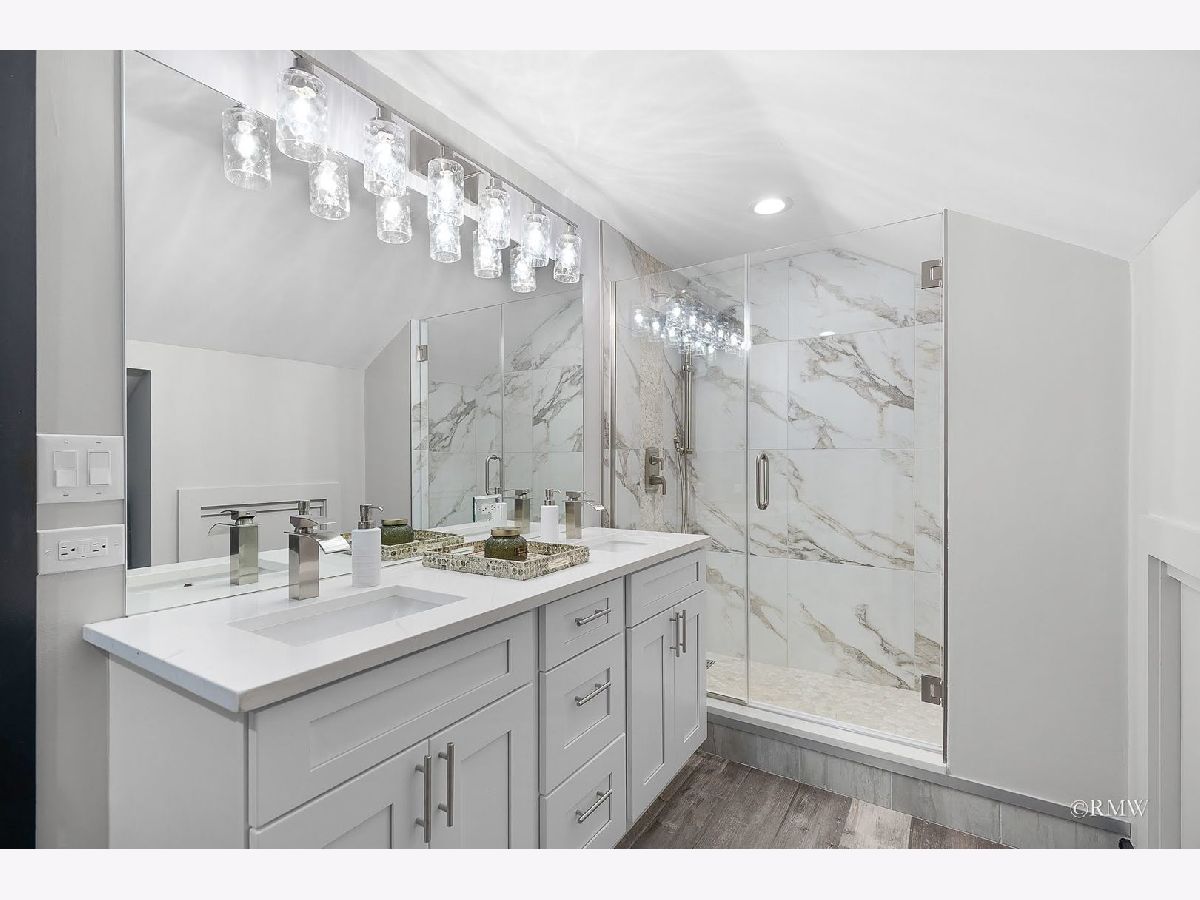 Absolutely stunning, this home blends timeless old-world character with modern luxury. Classic details like an enclosed porch, built-in wood nooks, French door entryways, and authentic crown molding are perfectly complemented by today's upgrades, creating a warm yet sophisticated Restoration Hardware feel. Nestled in one of Itasca's most historic and desirable neighborhoods, you'll enjoy rolling tree-lined streets, nature preserve walking paths, and the convenience of being just blocks from downtown, the Metra station, and everything Itasca has to offer. No expense was spared in restoring and enhancing this property. Beyond the high-end finishes, the owner invested in long-term functionality with a new roof, windows, mechanicals, premium insulation, oversized gutters/downspouts, and a new concrete basement floor complete with drainage and sump pump system. Inside, the kitchen is a showstopper, featuring quartz countertops and backsplash, custom shaker cabinetry, stainless steel appliances, a designer hood, and a one-of-a-kind built-in dinette with quartz table and benches-perfect for everyday meals or entertaining. Just off the kitchen, a step-down family room boasts a large fireplace and oversized windows that flood the space with natural light. The main level also includes an office, bedroom, and full bath, making single-floor living an option. Upstairs, the dramatic primary suite offers an elevated sitting area with built-in shelving overlooking the spacious sleeping area. The primary bath is beautifully appointed with a walk-in tiled shower, double vanity, and laundry closet with washer/dryer. Three additional bedrooms, a full bath and multiple storage areas complete the second floor. The walkout basement is expansive, with a welcoming mudroom featuring custom cubbies, a large recreation space, workout area, additional bedrooms, full bath, and oversized utility/storage room. Set on a generous corner lot, the outdoor space is just as impressive with a sweeping rounded deck, professional night-scaping, mature trees, and an expansive lawn-ideal for gatherings, play, or quiet relaxation. Parking is never an issue thanks to a 2-car garage, oversized driveway, and alley access parking. With award-winning schools, a vibrant park district, and a charming downtown filled with coffee shops, restaurants, and boutiques, this home offers the best of Itasca living. All renovations were fully permitted and city-inspected, ensuring peace of mind for years to come.