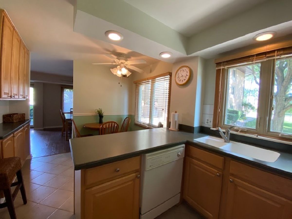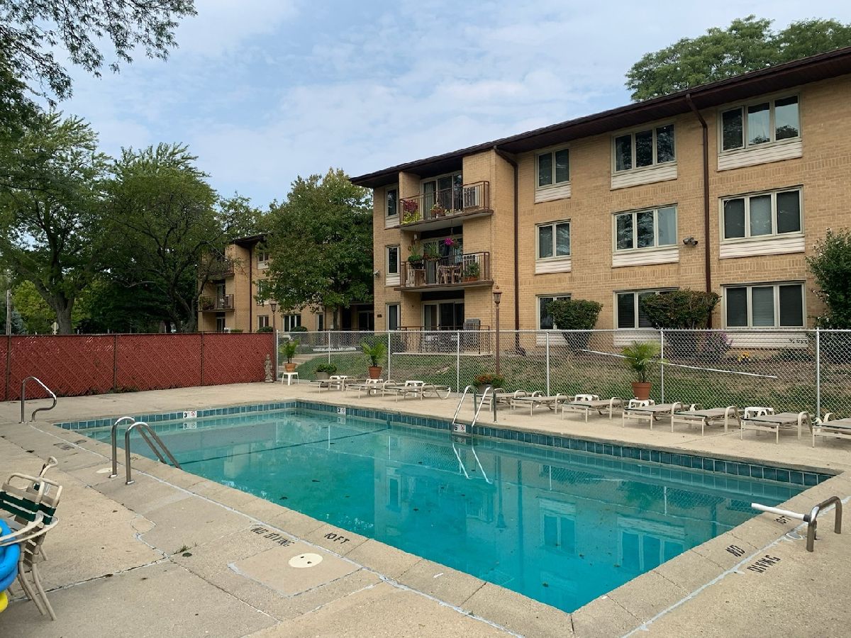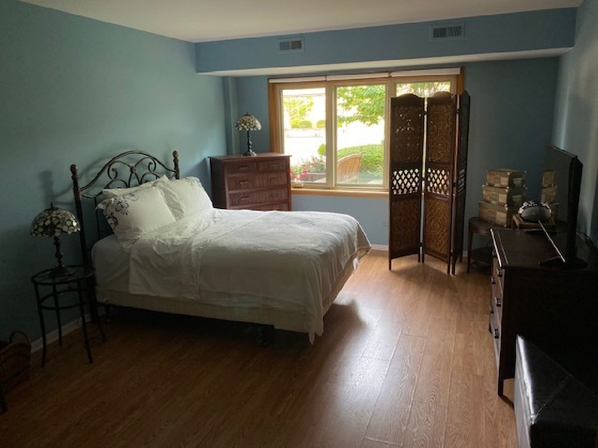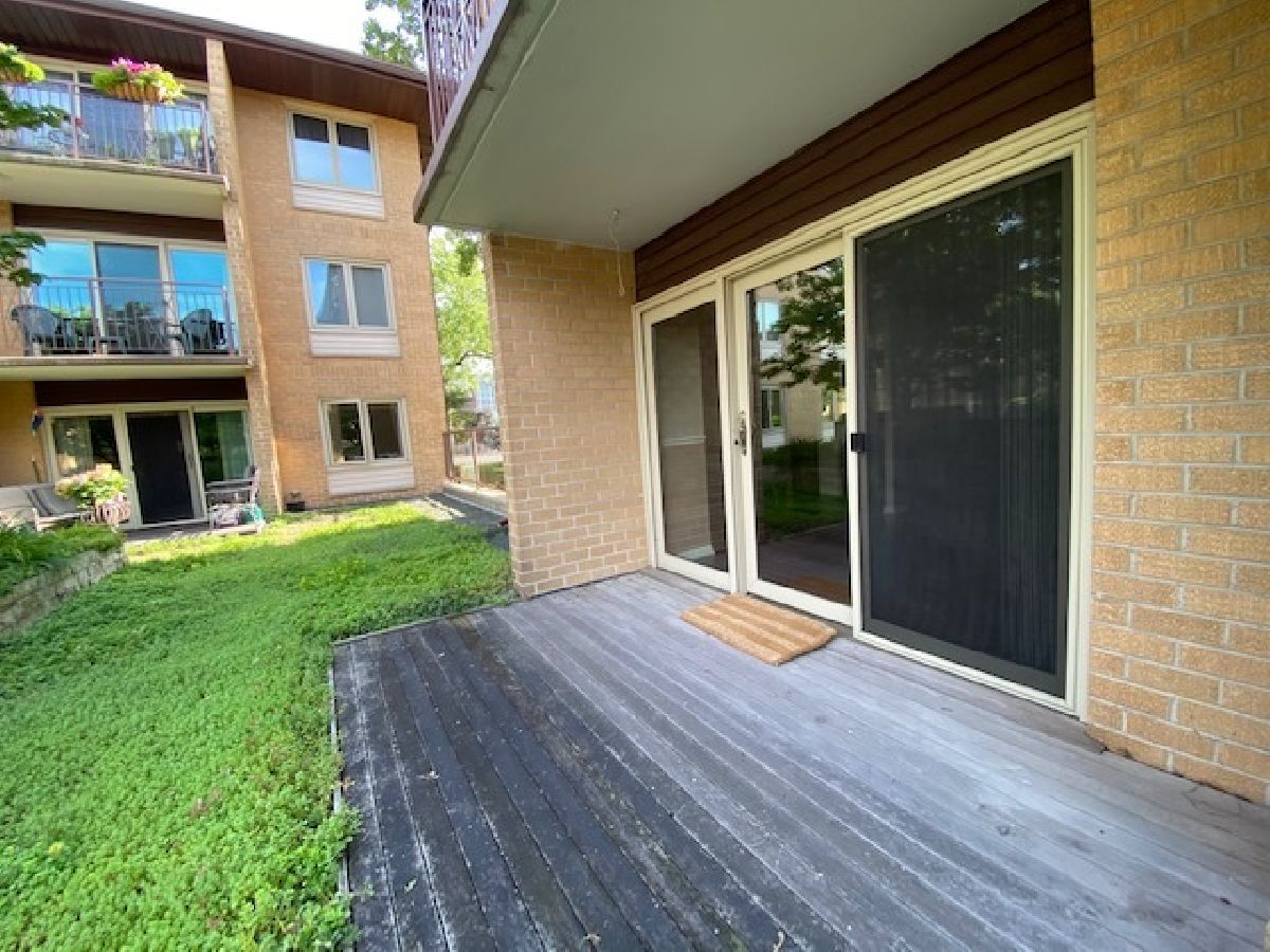Highly sought after location! Move right into this updated end unit first floor condo with 2 bedrooms, and 2 bathrooms. The Unit faces the professionally landscaped courtyard. Relax on the patio either enjoying the sun or admiring the tranquility. Unit features a fully updated kitchen with Corian countertops with a butler's pantry and 42 inch cabinets. Kitchen has newer ceramic tile. Unwind in the huge Master Bedroom offering a fully updated bath with walk-in shower, radiant heat flooring and large walk-in closet. The unit has premium modern casement windows and sliders to the patio. The hallway has newer ceramic tile. Both bedrooms have newer wood laminate flooring. The very large living room and the dining room have new wood laminate flooring. Utility Room is equipped with extra cabinet storage and a full laundry. Parking is included. One car parking space in heated garage (space 119) with two key fobs along with passes for two guest parking places on the perimeter. One storage locker in garage area is also included in purchase price. No rentals. Pets allowed. Pet count limitation. Community includes an outdoor pool plus much more. Maine South High School within walking distance (1/2 block); Complex borders on forest preserves great for walking. Located 1 mile to O'Hare Airport and Rail Transit, 1 block to tollway access. Rivers Casino walking distance. Easy to show. Sellers believe this is the nicest unit in complex aside from other things. Private garden like setting off patio, smallest building in complex with Master Board meeting room same floor where owners have use right next door over for gatherings with kitchen facility. MLS #10797511