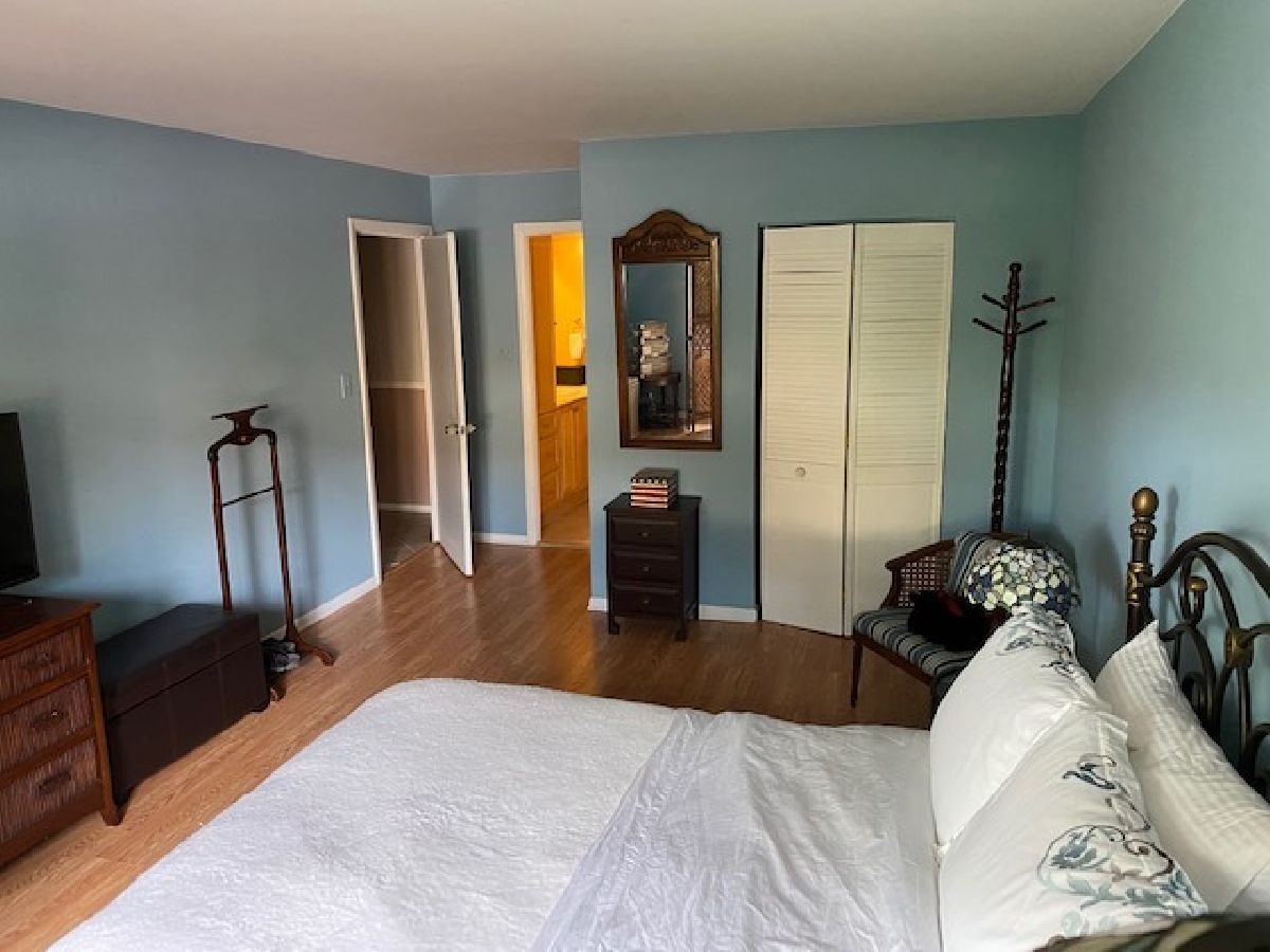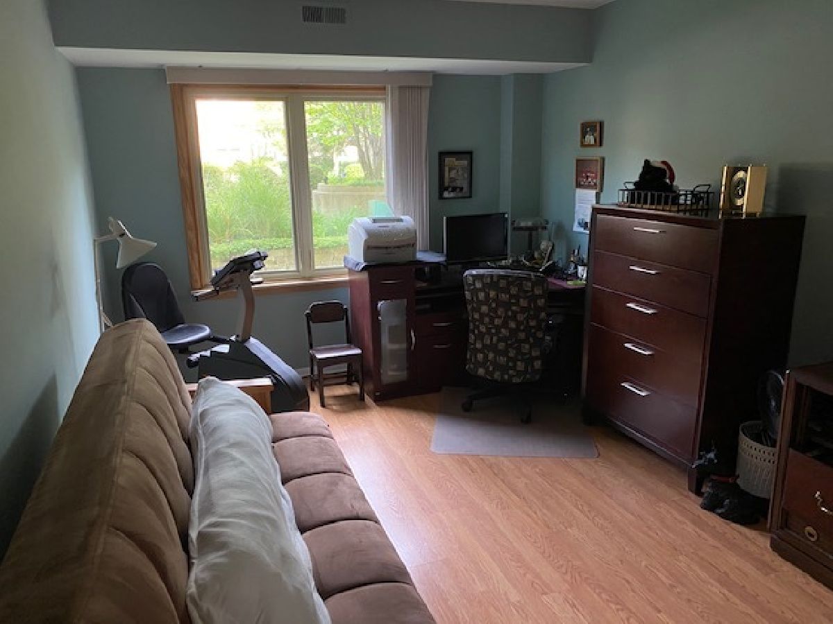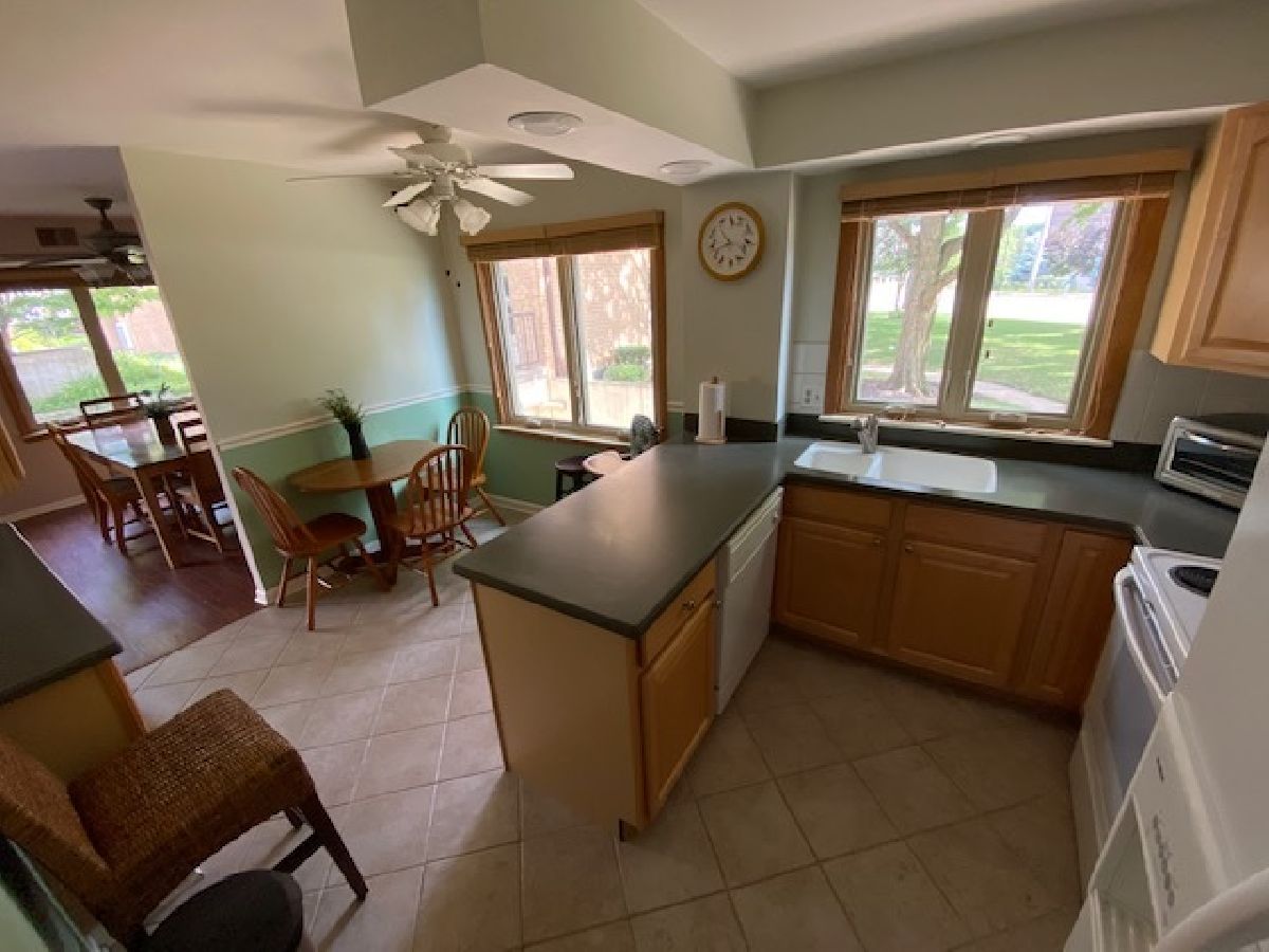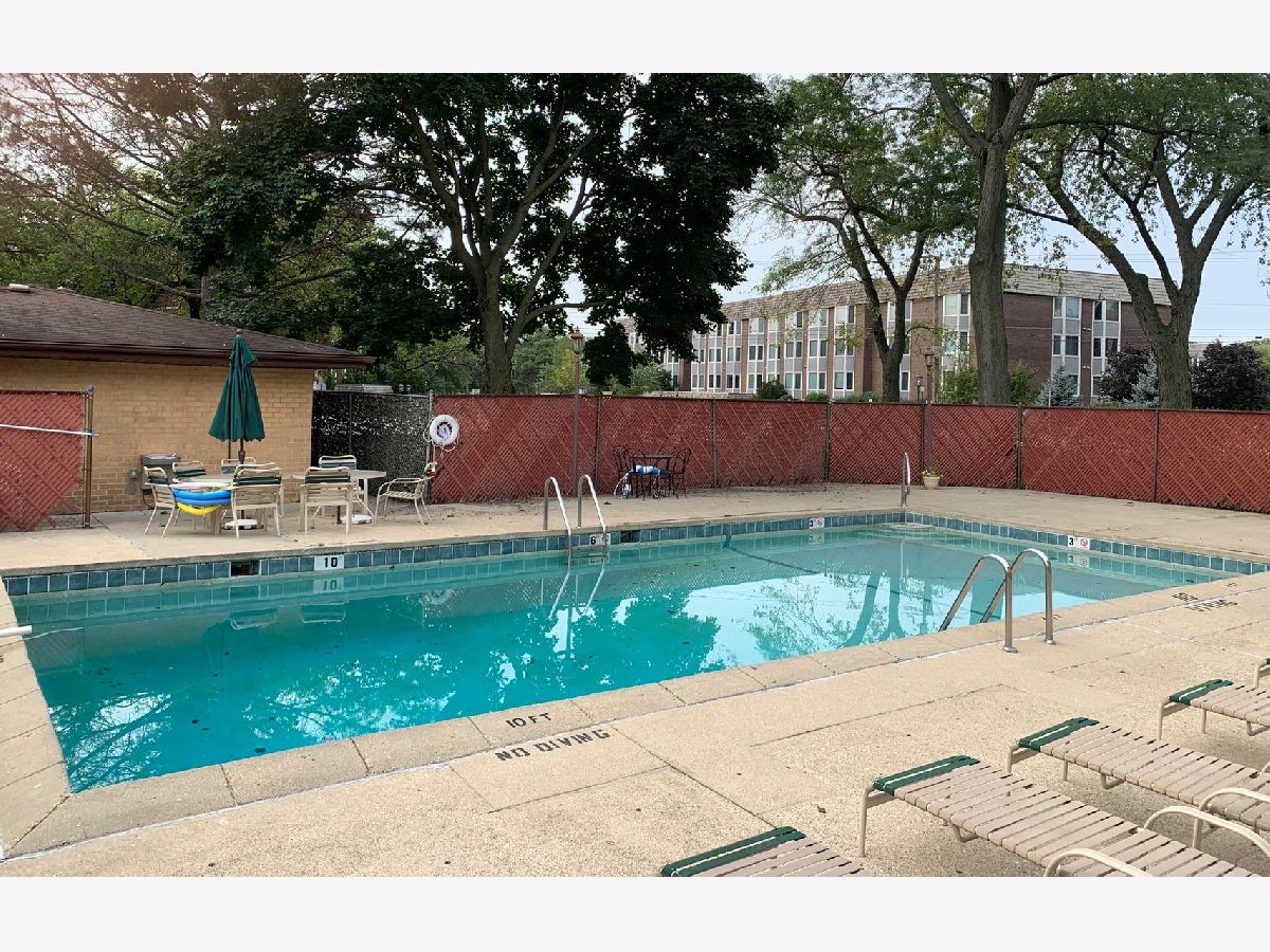 Highly sought after location! Move right into this updated end unit first floor condo with 2 bedrooms, and 2 bathrooms. The Unit faces the professionally landscaped courtyard. Relax on the patio either enjoying the sun or admiring the tranquility. Unit features a fully updated kitchen with Corian countertops with a butler's pantry and 42 inch cabinets. Kitchen has newer ceramic tile. Unwind in the huge Master Bedroom offering a fully updated bath with walk-in shower, radiant heat flooring and large walk-in closet. The unit has premium modern casement windows and sliders to the patio. The hallway has newer ceramic tile. Both bedrooms have newer wood laminate flooring. The very large living room and the dining room have new wood laminate flooring. Utility Room is equipped with extra cabinet storage and a full laundry. Parking is included. One car parking space in heated garage (space 119) with two key fobs along with passes for two guest parking places on the perimeter. One storage locker in garage area is also included in purchase price. No rentals. Pets allowed. Pet count limitation. Community includes an outdoor pool plus much more. Maine South High School within walking distance (1/2 block); Complex borders on forest preserves great for walking. Located 1 mile to O'Hare Airport and Rail Transit, 1 block to tollway access. Rivers Casino walking distance. Easy to show. Sellers believe this is the nicest unit in complex aside from other things. Private garden like setting off patio, smallest building in complex with Master Board meeting room same floor where owners have use right next door over for gatherings with kitchen facility. MLS #10797511