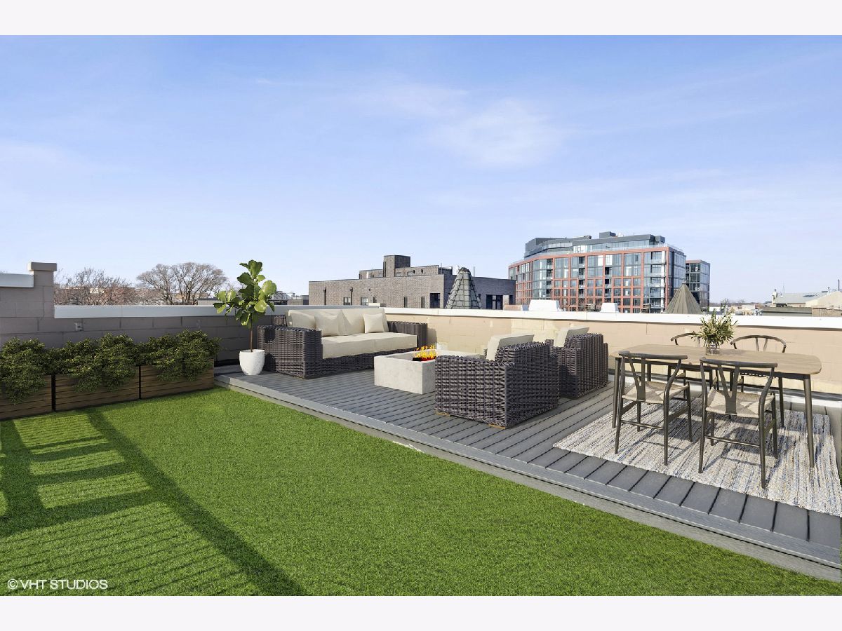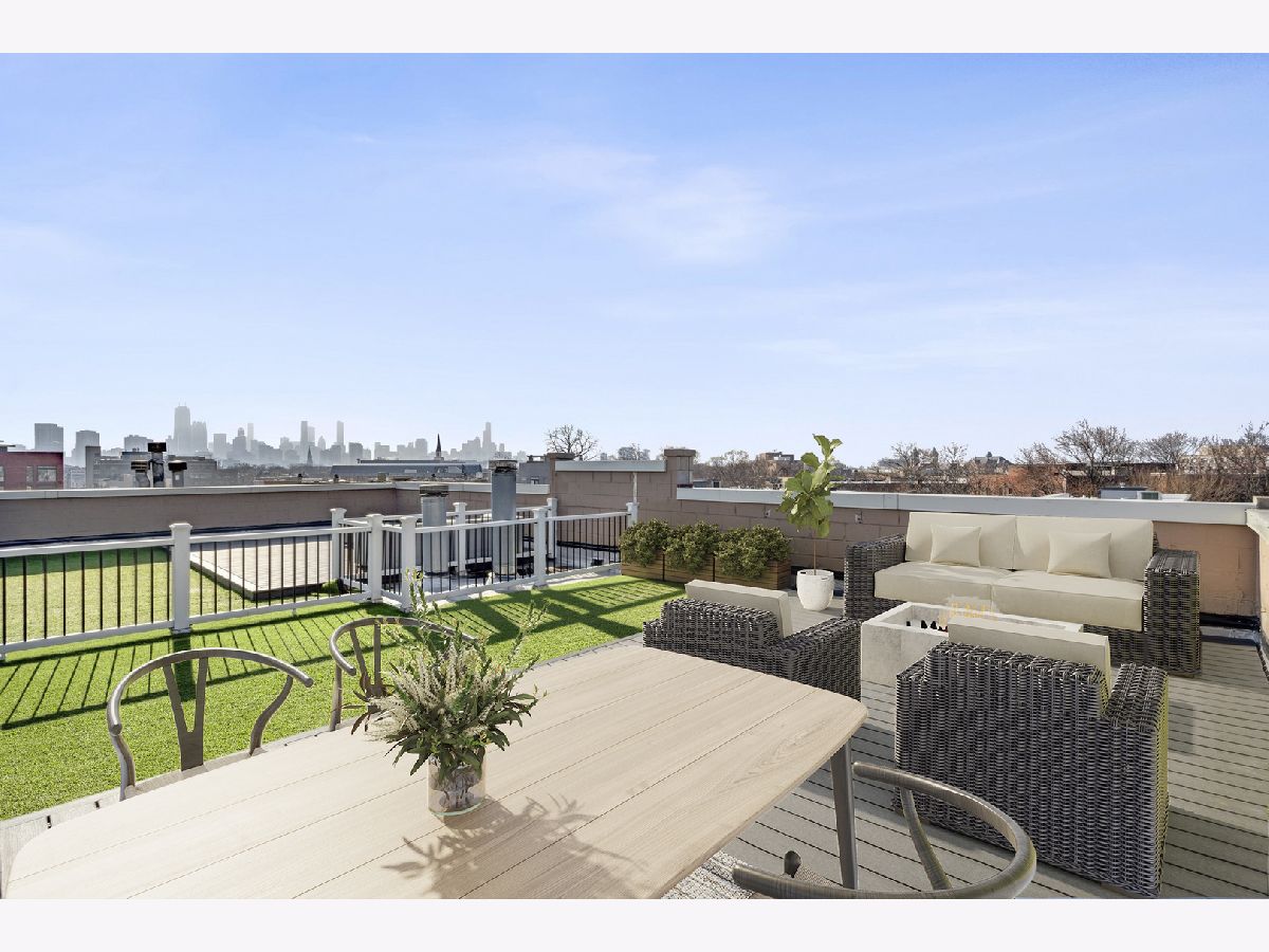 Extra Wide Penthouse in boutique elevator building with interior access to massive private roof deck with panoramic skyline views. Modern, open layout with gorgeous white kitchen that opens to living & dining area flooded with natural light floor to ceiling windows and 14 foot ceilings. Second outdoor space off of living area perfect for grill. Wide hallway with walk-in pantry and designated coat closet. Spacious primary suite with fully organized walk-in closet and bathroom complete with double sink, walk-in shower and jacuzzi tub. Interior staircase leads to bonus landing space perfect for bar and peloton that leads to rooftop with combination of no maintenance decking and turf. Garage parking space included.
