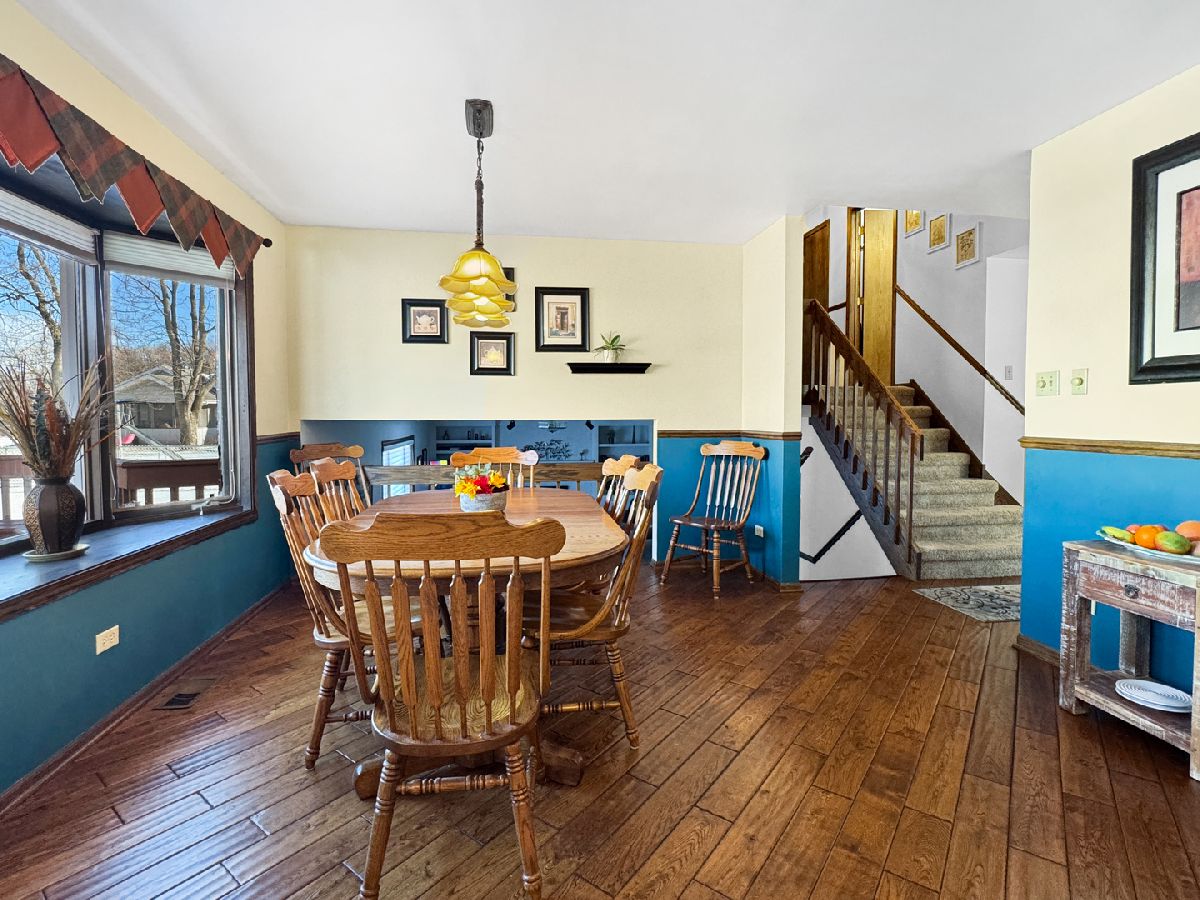 New on the market! Forester Tri-Level features custom cabinets and finishes, and many extras. A formal living room, as you walk in, could also be a nice office. Spacious kitchen with an abundance of cabinets and countertops, large island, skylight, and bay window looking over the recently stained deck that can seat over 20 people. 3 oversized bedrooms with large closets; the main bedroom features a walk-in closet-updated full bath on the 2nd level. On the lower level, you have a beautiful family room with a fireplace and custom built-ins-newly updated bath with a walk-in closet attached and an entrance to the crawl space for more storage, Plus a 4TH Bedroom/ Office with plenty of closet. Now let's talk about the fantastic 3 1/2 car attached garage. The garage is drywalled and finished, plus heated. The garage features a sink for cleanup, with room for a rec room to hang out in. Plus, it's extra deep for your boat or camper, and you have pull-down stairs to the attic for even more storage. Circle driveway for easy access can fit 7 cars. The forest preserve is at the corner, with walking paths. Walking distance to bus stops and shopping, approx 2 1/2 miles from the new South Shore Train Station in Munster, Indiana. Other home features include: Furnace 15 years, central air 5 years, roof 15 years. Custom window treatments, an in-ground sprinkler system for the front and back, and a central vac in the home. Newer windows, fenced-in yard with huge deck, plus a fully screened gazebo with electricity, seats approx 10-12 people. This is a fantastic home in a great location. The seller has owned the house since 2004 and has maintained the home perfectly. The average Nicor bill is 64 dollars a month, with the garage heater on at 55 degrees. Com Ed 80 dollars a month/ Home Appraised and clean inspection, buyer was rejected for their loan days before closing/
