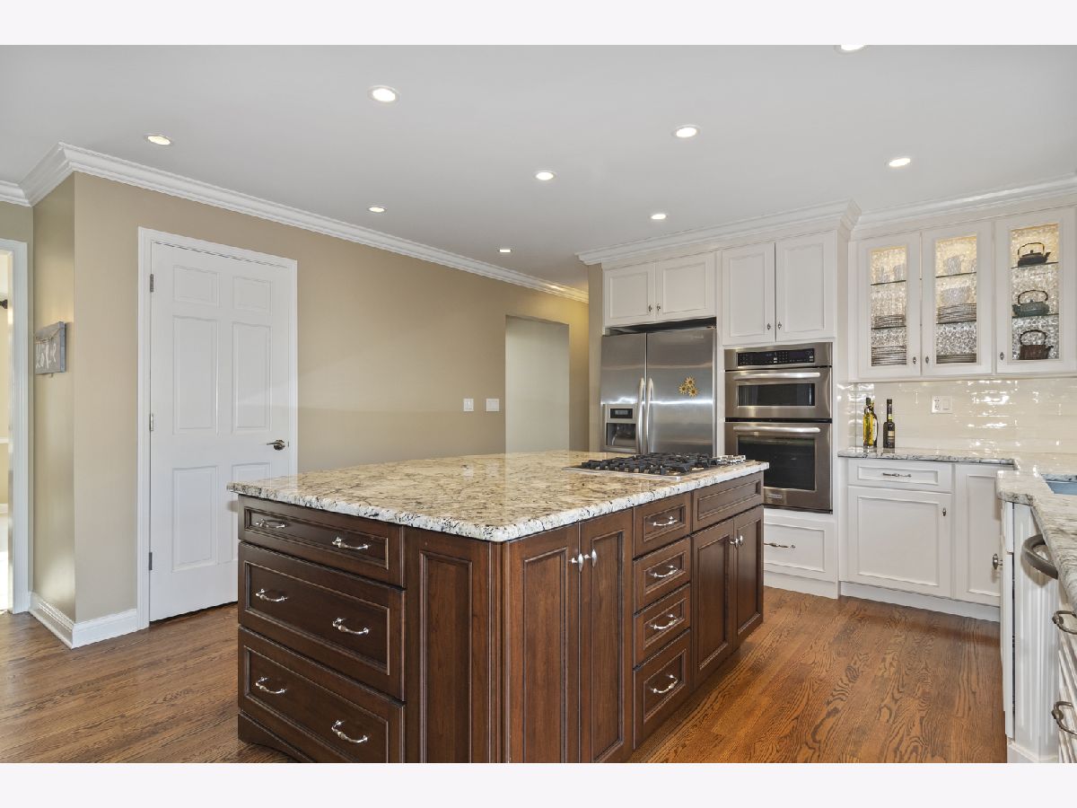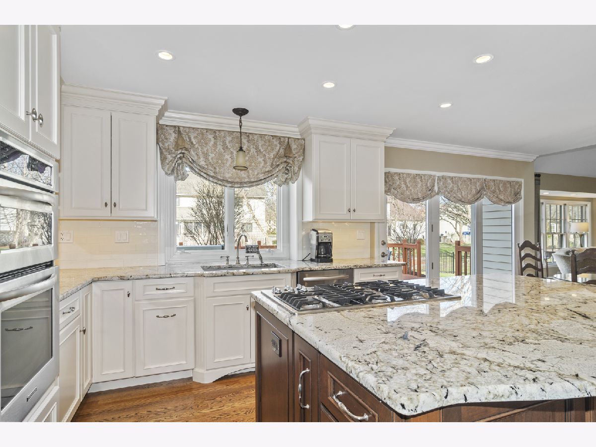 Spectacular updated brick front Georgian with welcoming two-story foyer located in sought after River Woods subdivision. Sellers have kept this beautiful home in pristine condition. White trim throughout most of the home and solid six-panel doors. Gleaming hardwood floors in foyer, kitchen, family room, first-floor bath, and laundry room. The updated gourmet kitchen has a large center island, custom furniture quality soft close white cabinets and drawers, granite countertop, stainless steel appliances, butler pantry with upper cabinet glass doors, and recessed lighting. The kitchen opens to a large family room with a vaulted ceiling, floor-to-ceiling brick fireplace, skylights, and a wall of windows. First-floor 5th bedroom/inlaw suite/nanny quarters/office adjacent to the full bath. Entertainment size living room and dining room. The luxury master suite has a vaulted ceiling, His/Her walk-in closets, a sitting room which is being used as an office, a luxury updated bath with vaulted ceiling, dual vanity, granite countertop, upgraded tile floor, whirlpool tub, and separate shower. Three spacious secondary bedrooms. The finished basement has a recreation room, office/playroom/bedroom 6, etc. Large first-floor laundry room has a built-in cabinet with a granite countertop, sink, and exterior door to the side yard. Fenced rear yard. New roof 2014. Close to schools, parks, Whalon Lake, and shopping.