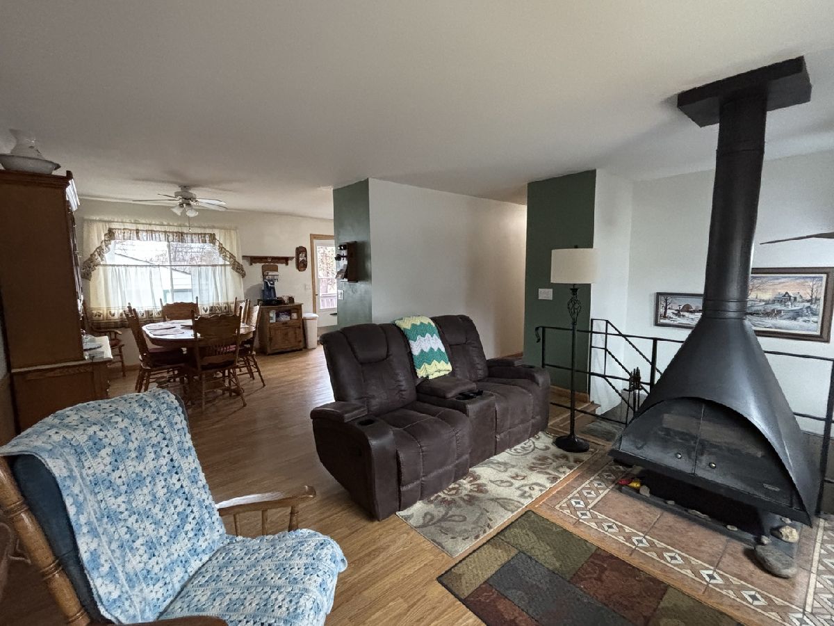 Drive up to this amazing home with great curb appeal because the whole exterior is newer, including the windows. 27x50 heated garage with 240 amp breaker and it's own electric meter (previously used as a shop). New roof and insulation; it's car buff's dream!! Home is clean and ready to go with 3 bedrooms on the main level with an eat-in updated kitchen. Living room has an awesome woodburning stove. Lower level has 3 rooms; listed as 4th bedroom, family room, and recroom or den. The family room has a built-in aquarium which could be used for fish or pets (or removed). Won't last long.